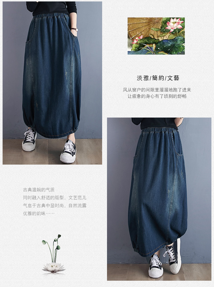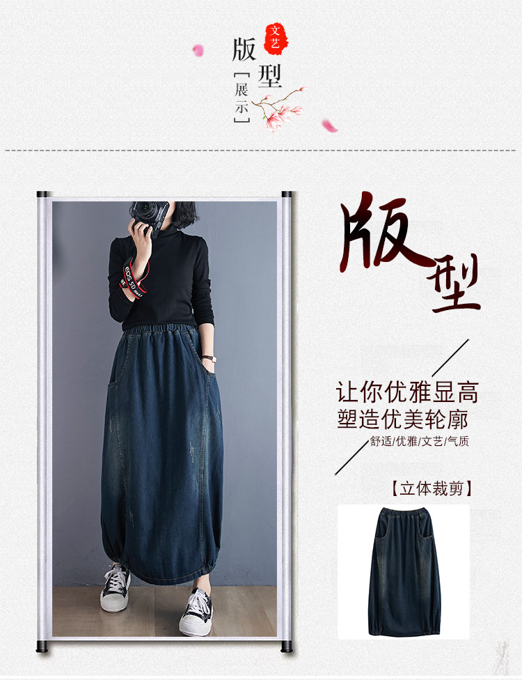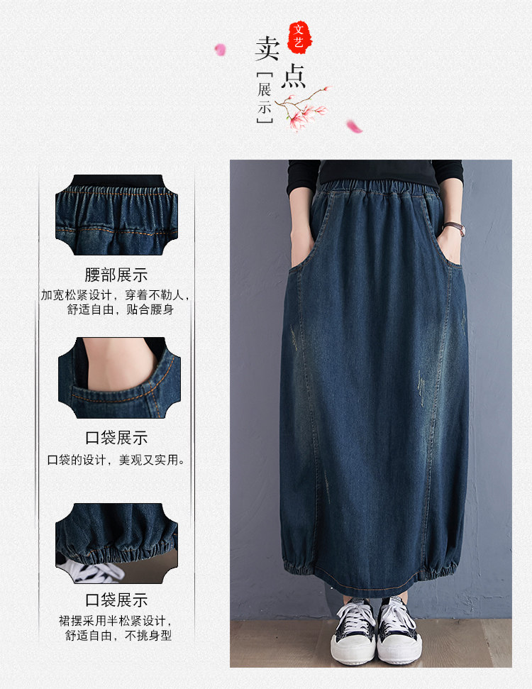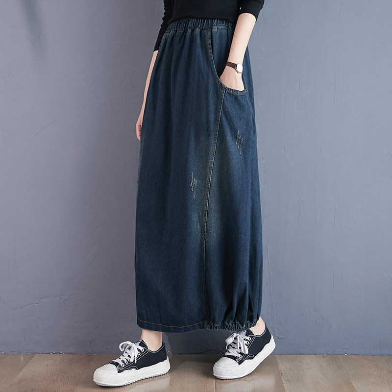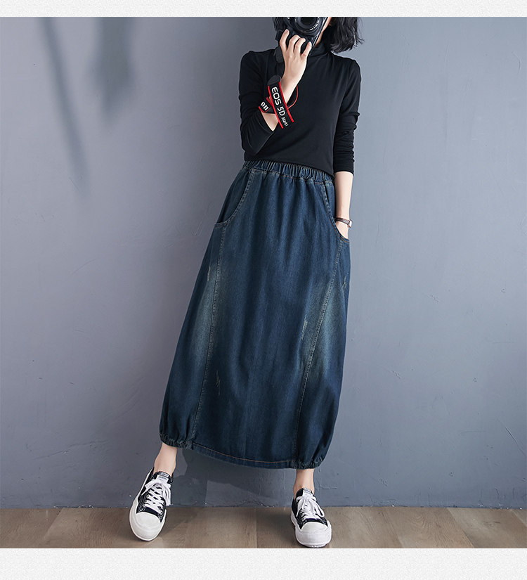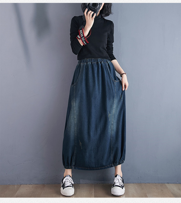 Осенняя ретро приталенная джинсовая юбка, высокая талия