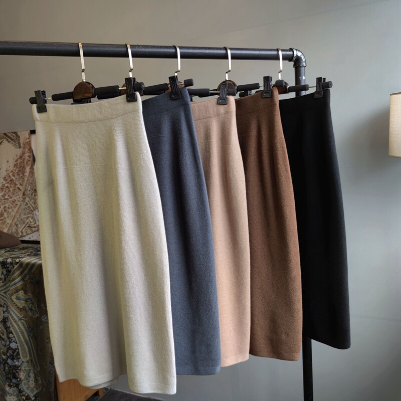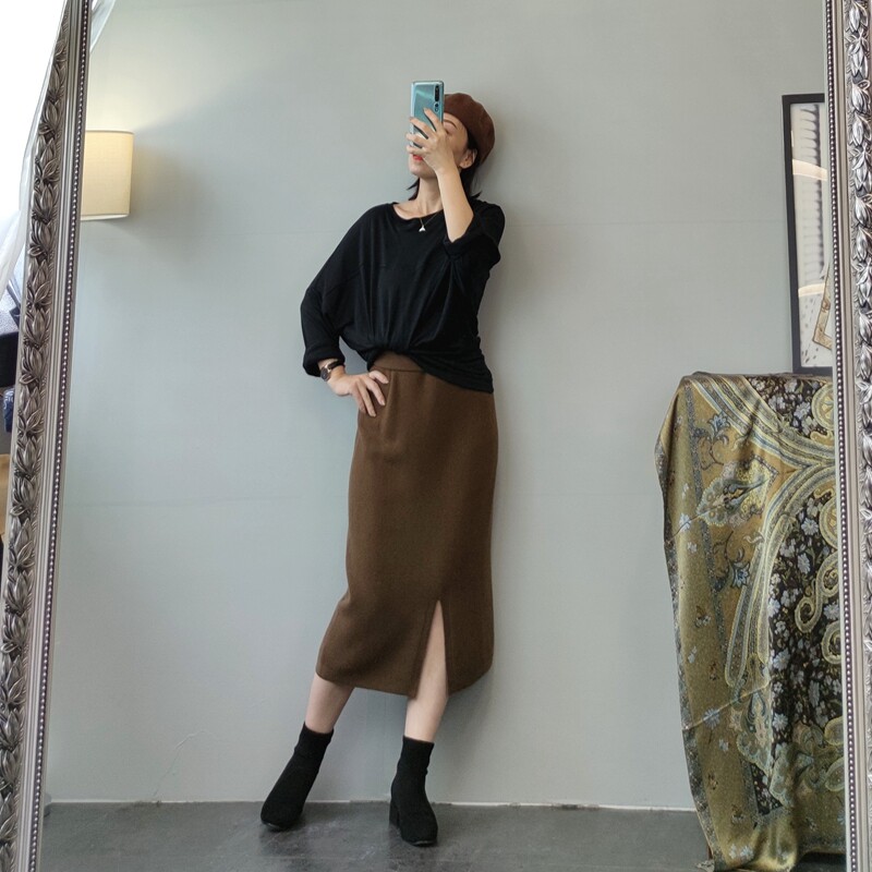 Действительно удобная и бесшовная классическая черная эластичная трикотажная юбка с разрезом, пять цветов, приятная для кожи, практичная в ношении и стройняющая.