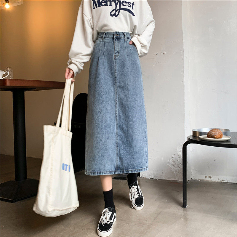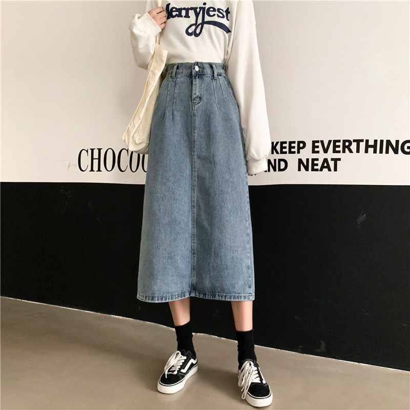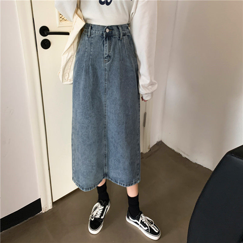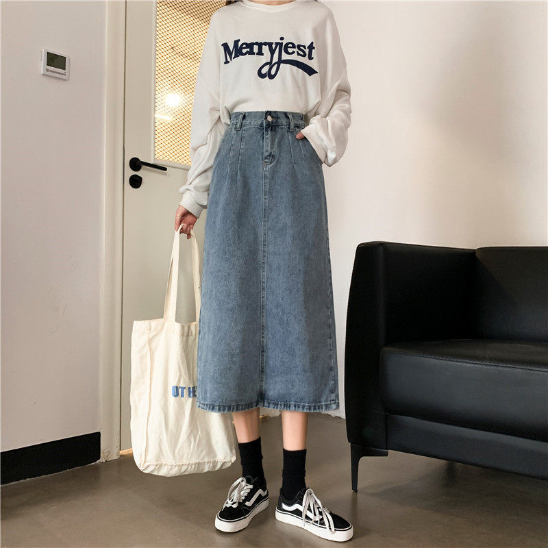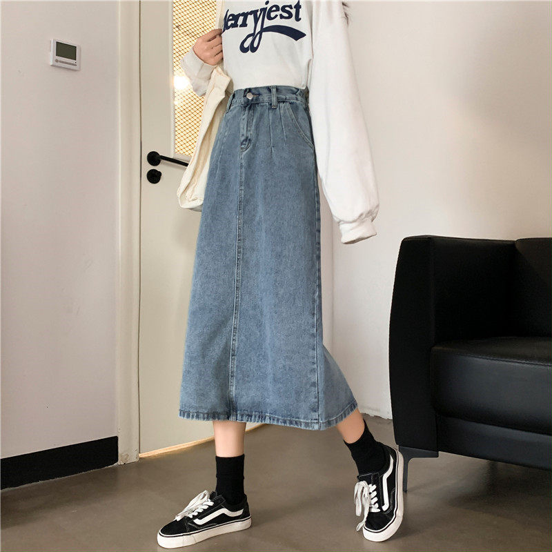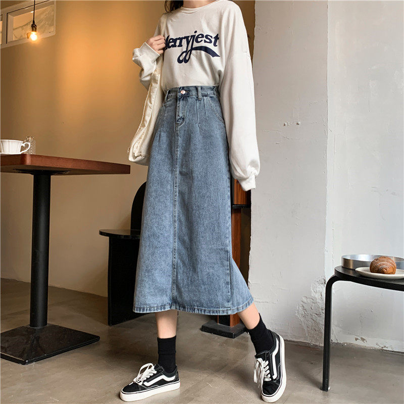 Осенняя джинсовая длинная джинсовая юбка, коллекция 2023, средней длины, высокая талия, большой размер, А-силуэт