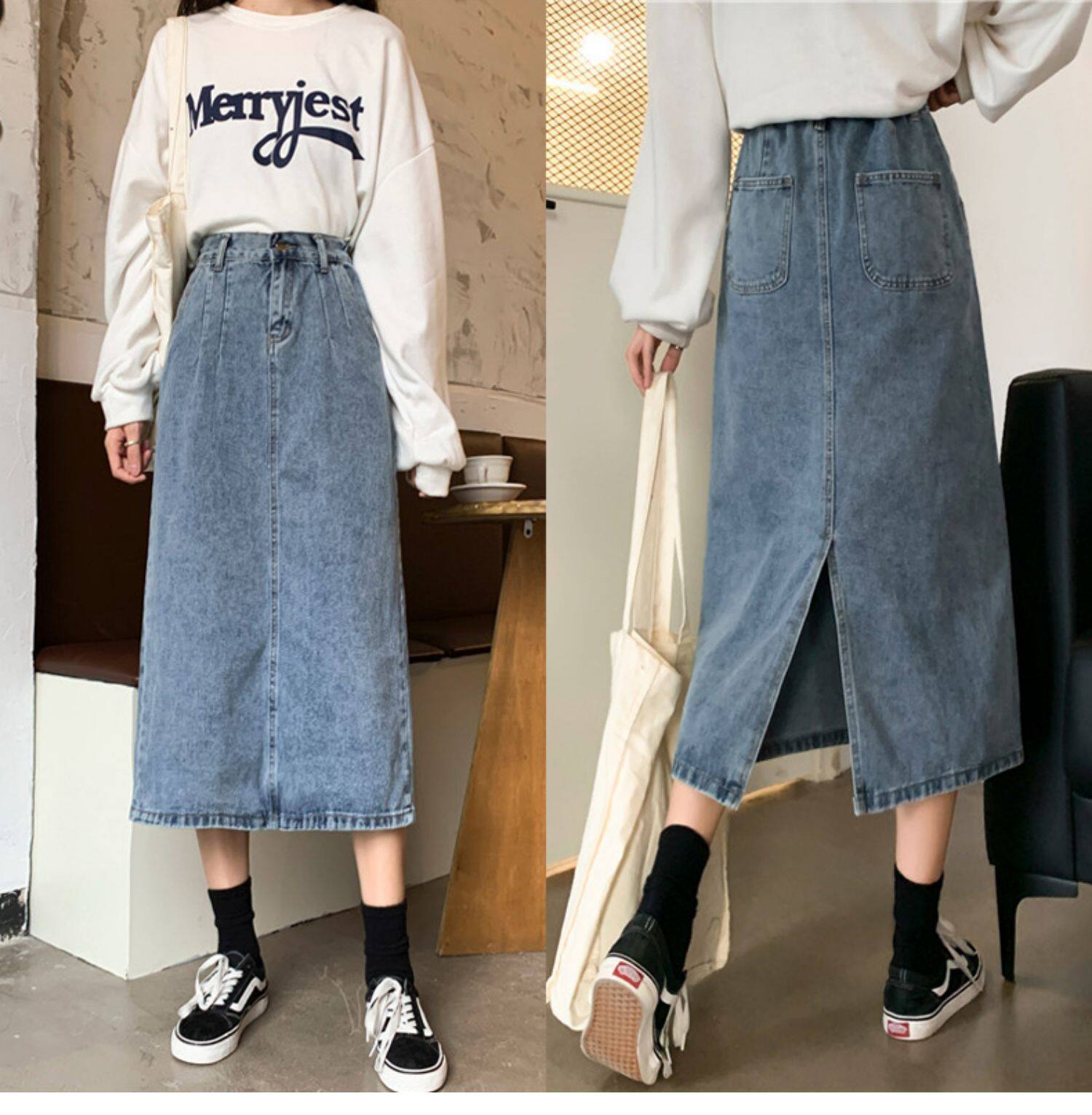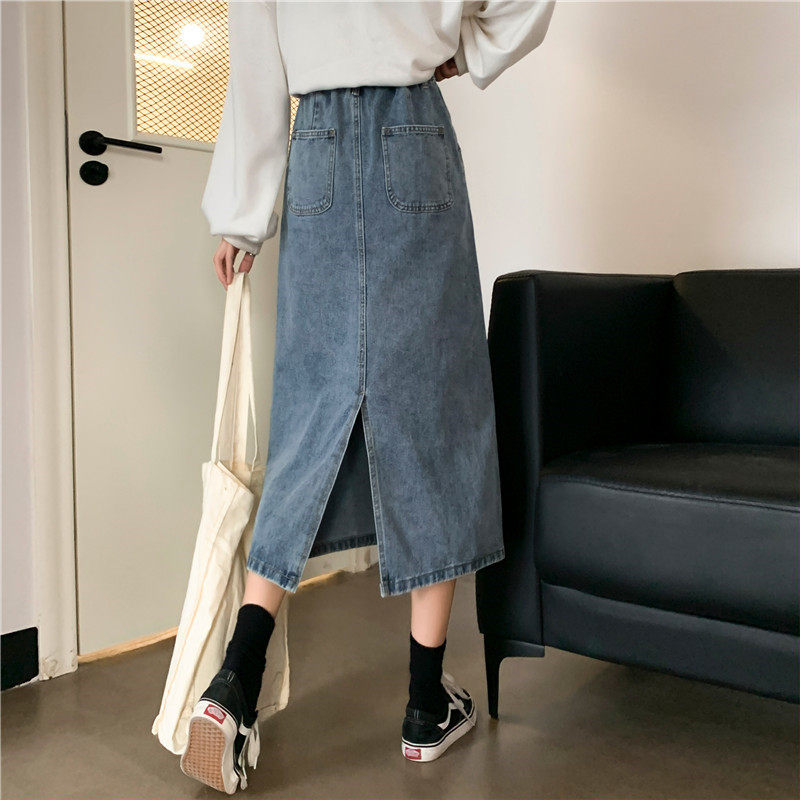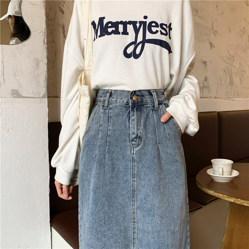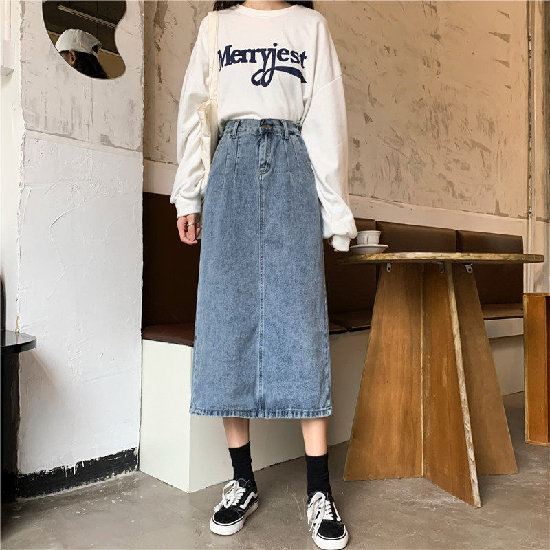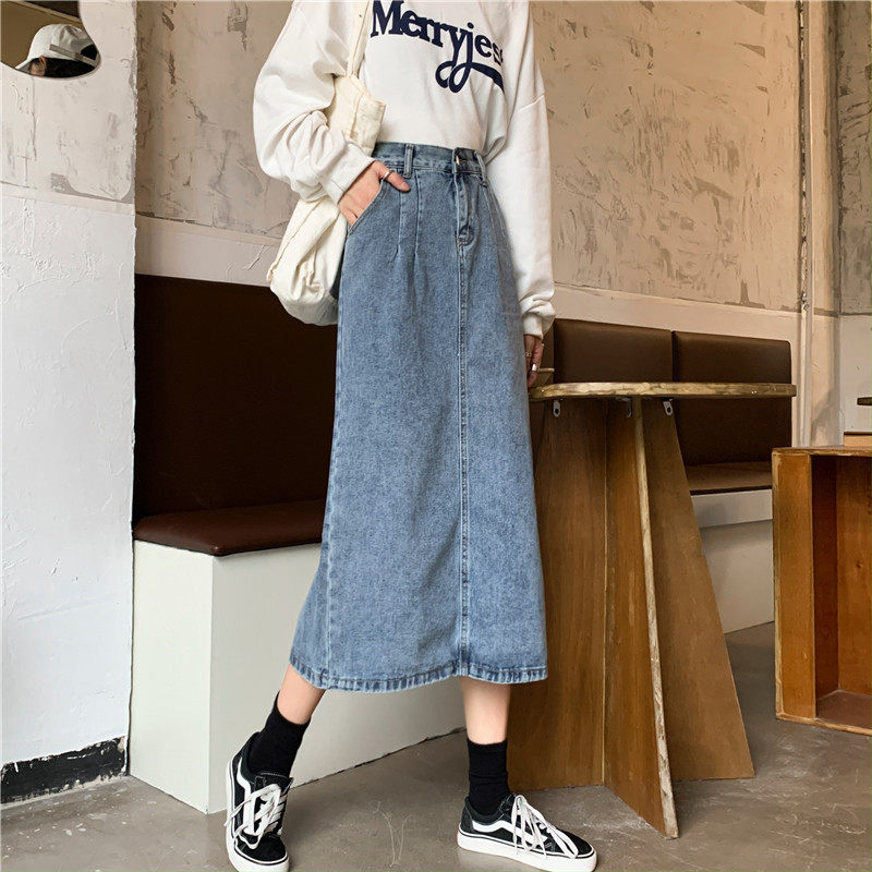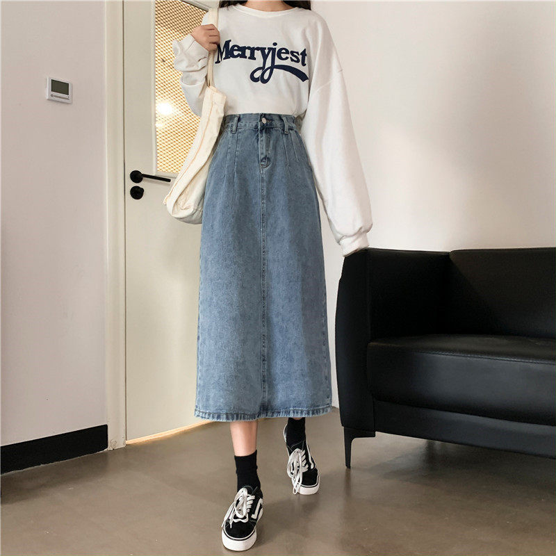 Осенняя джинсовая длинная джинсовая юбка, коллекция 2023, средней длины, высокая талия, большой размер, А-силуэт
