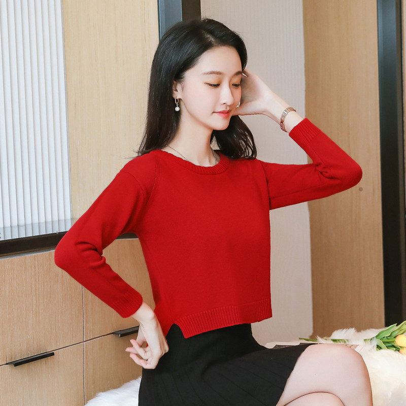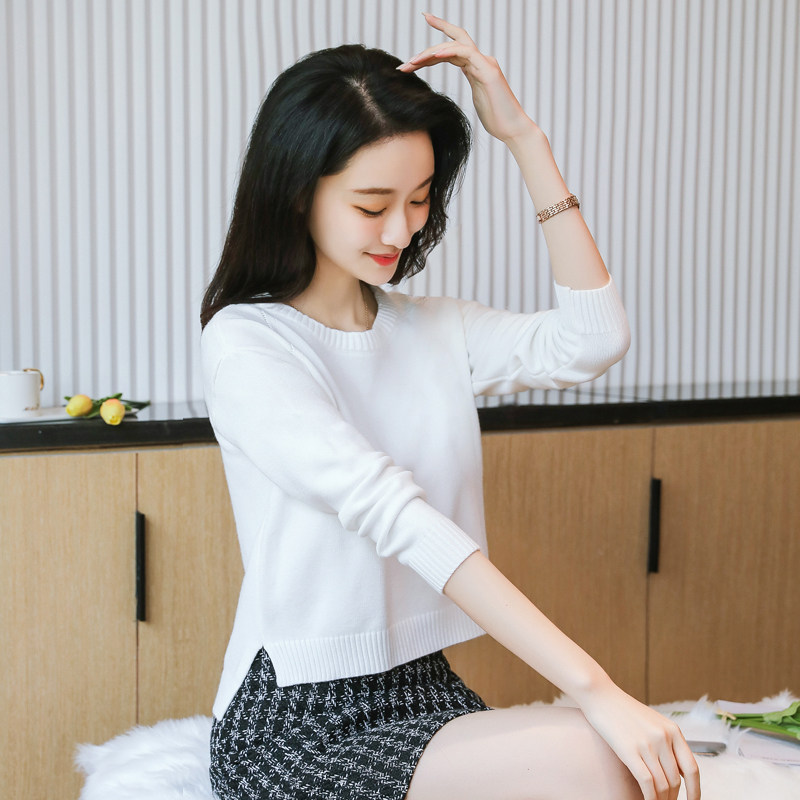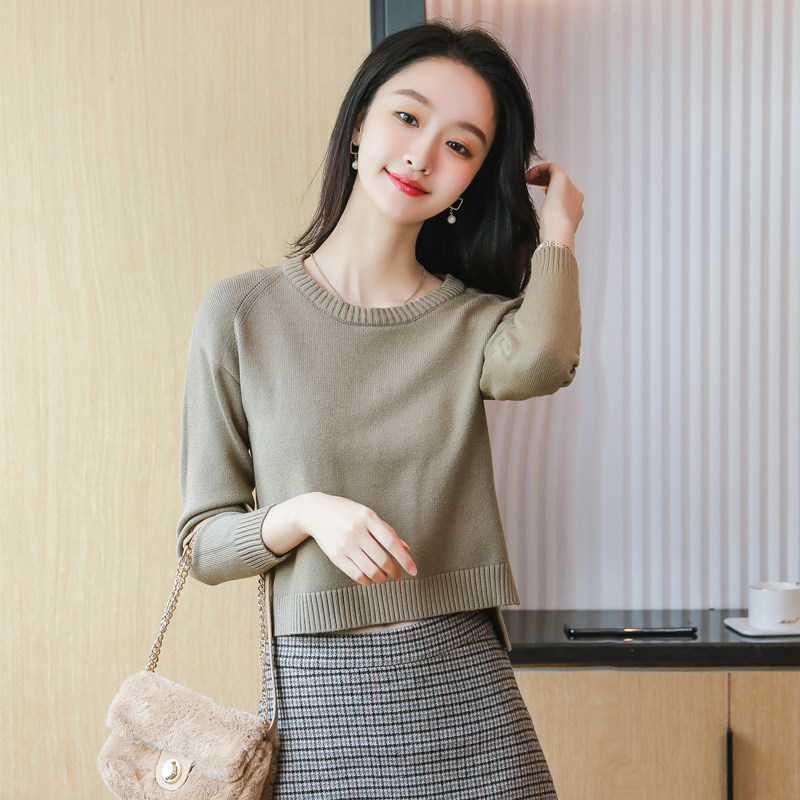 Короткий демисезонный свитер с круглым воротником, трикотажный лонгслив, подходит для подростков, свободный крой