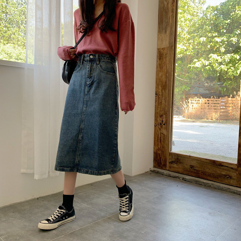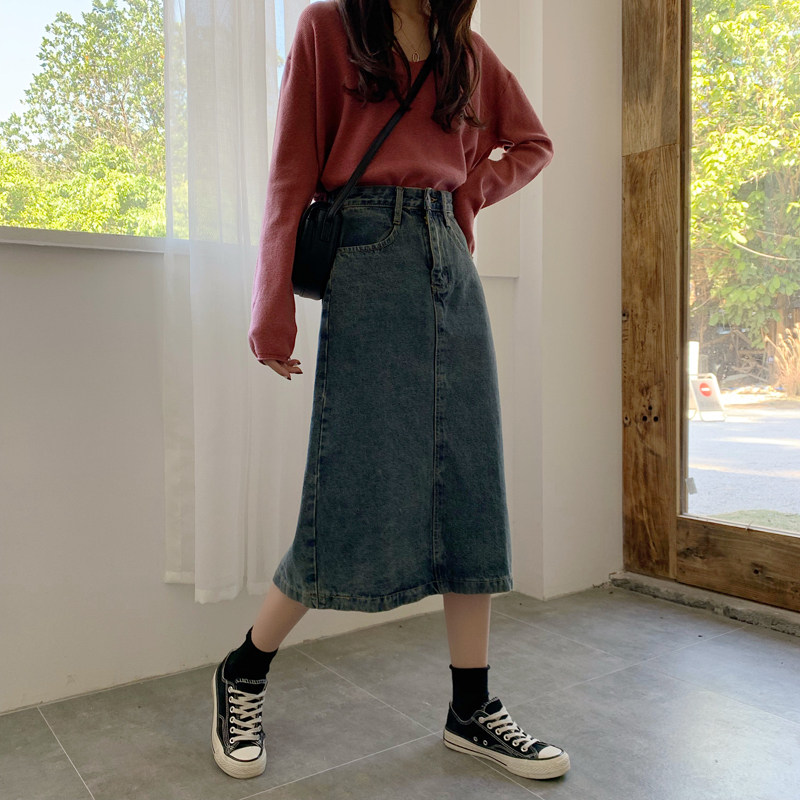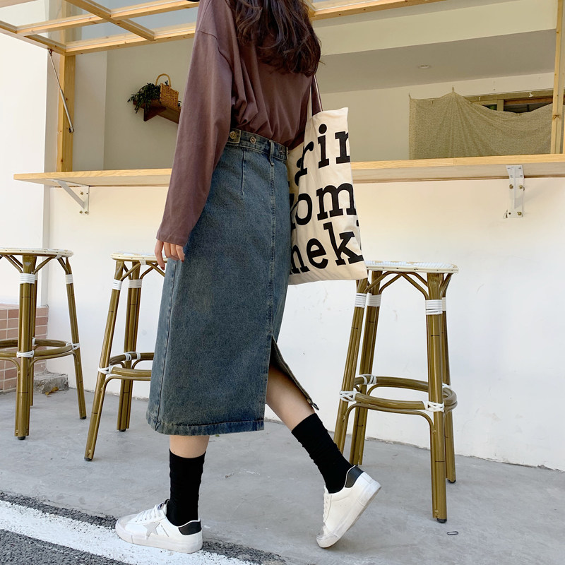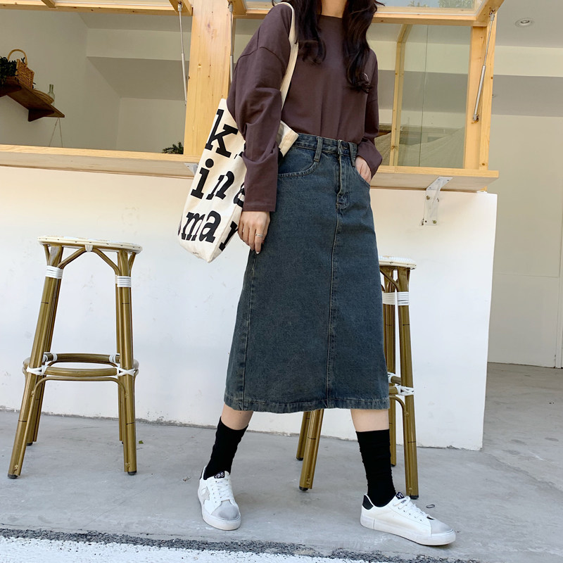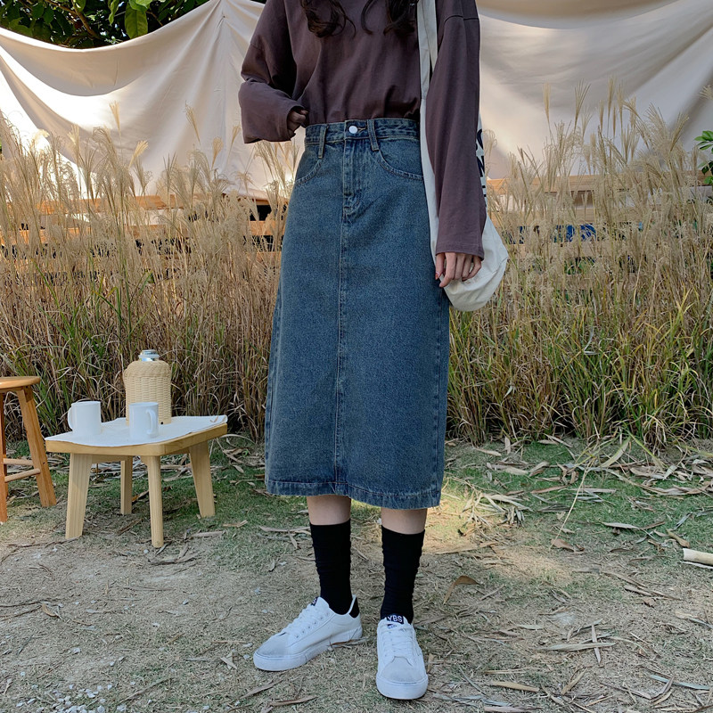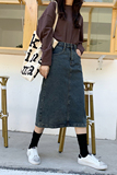 Ретро приталенная длинная джинсовая юбка, высокая талия, свободный прямой крой, средней длины
