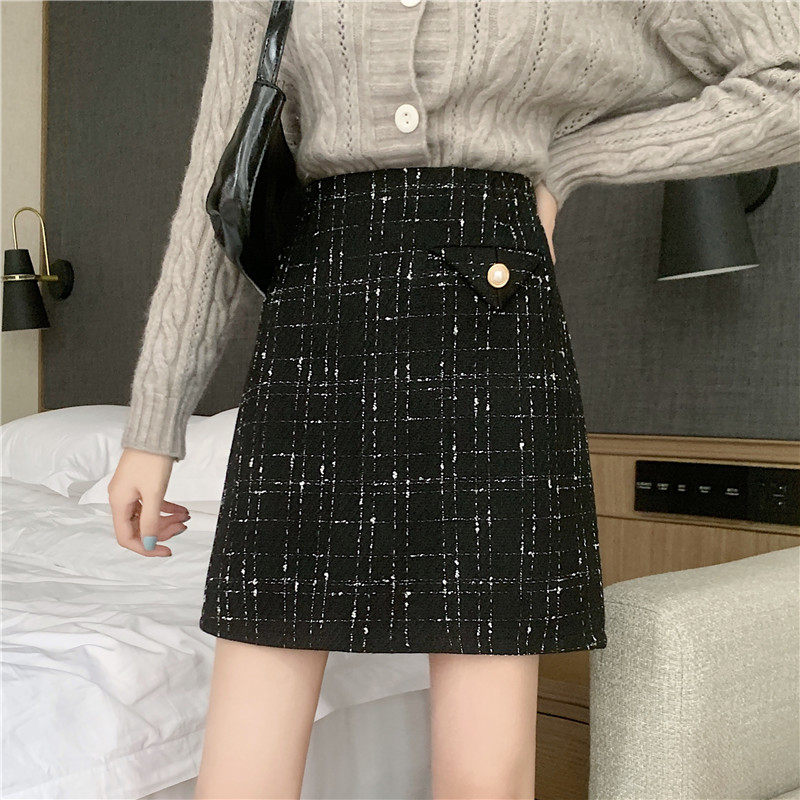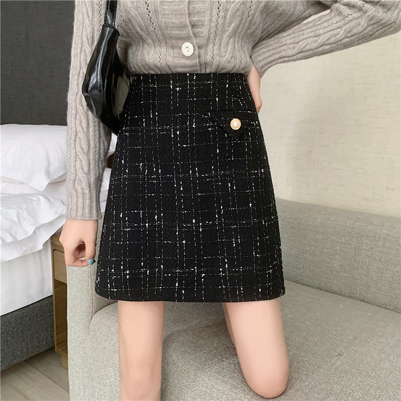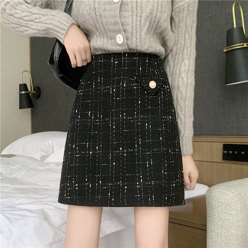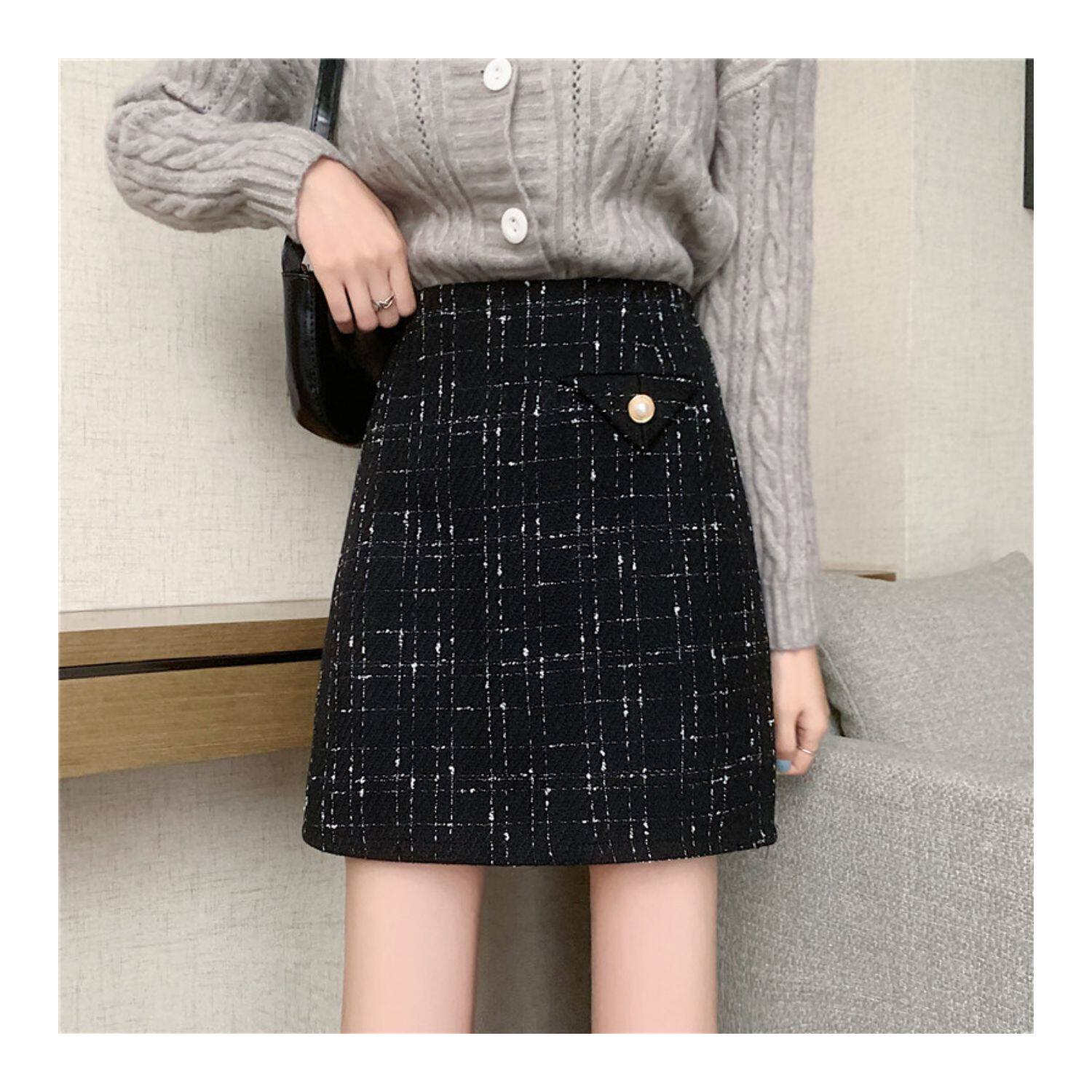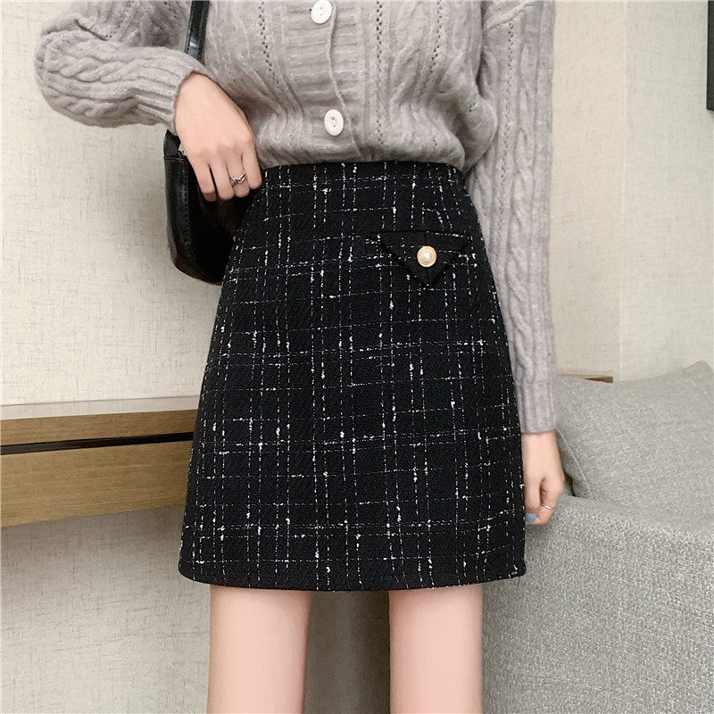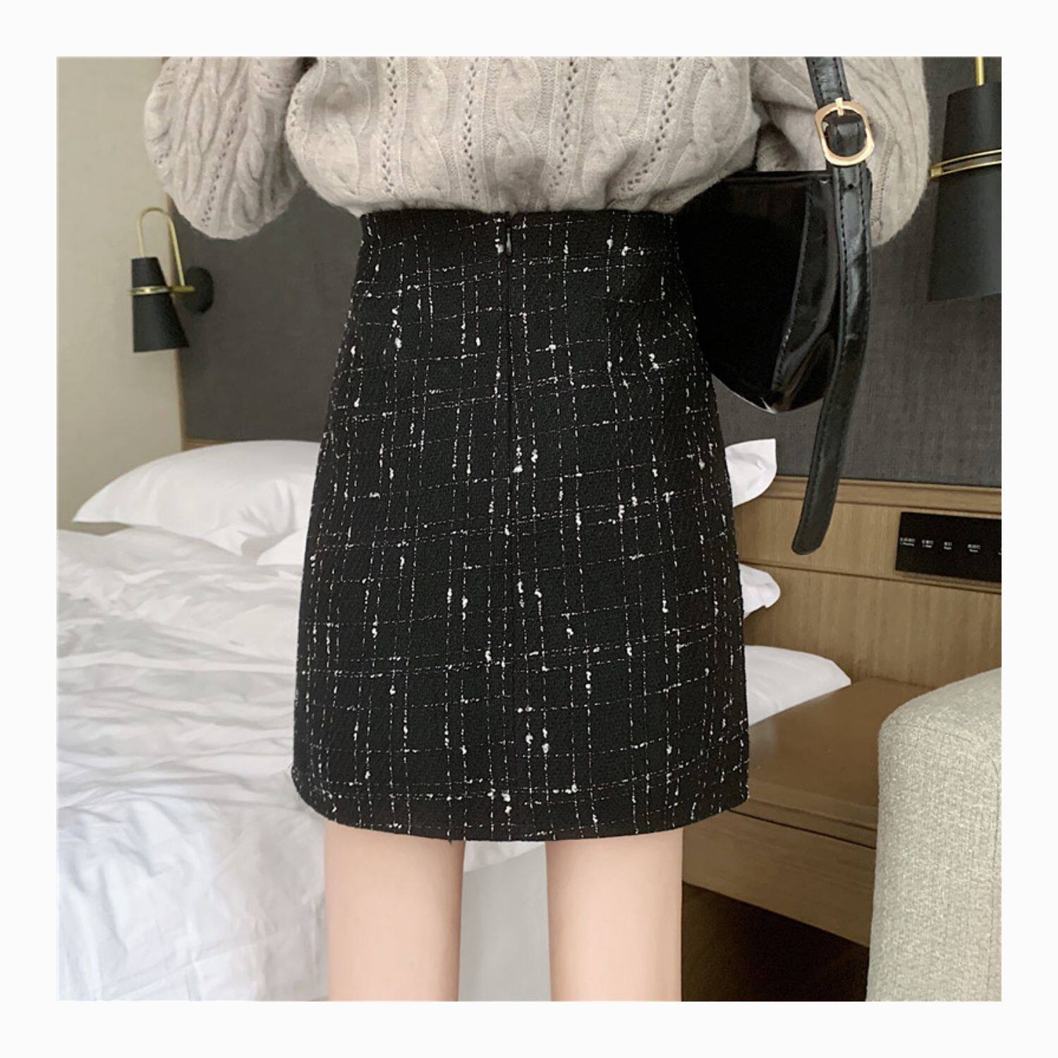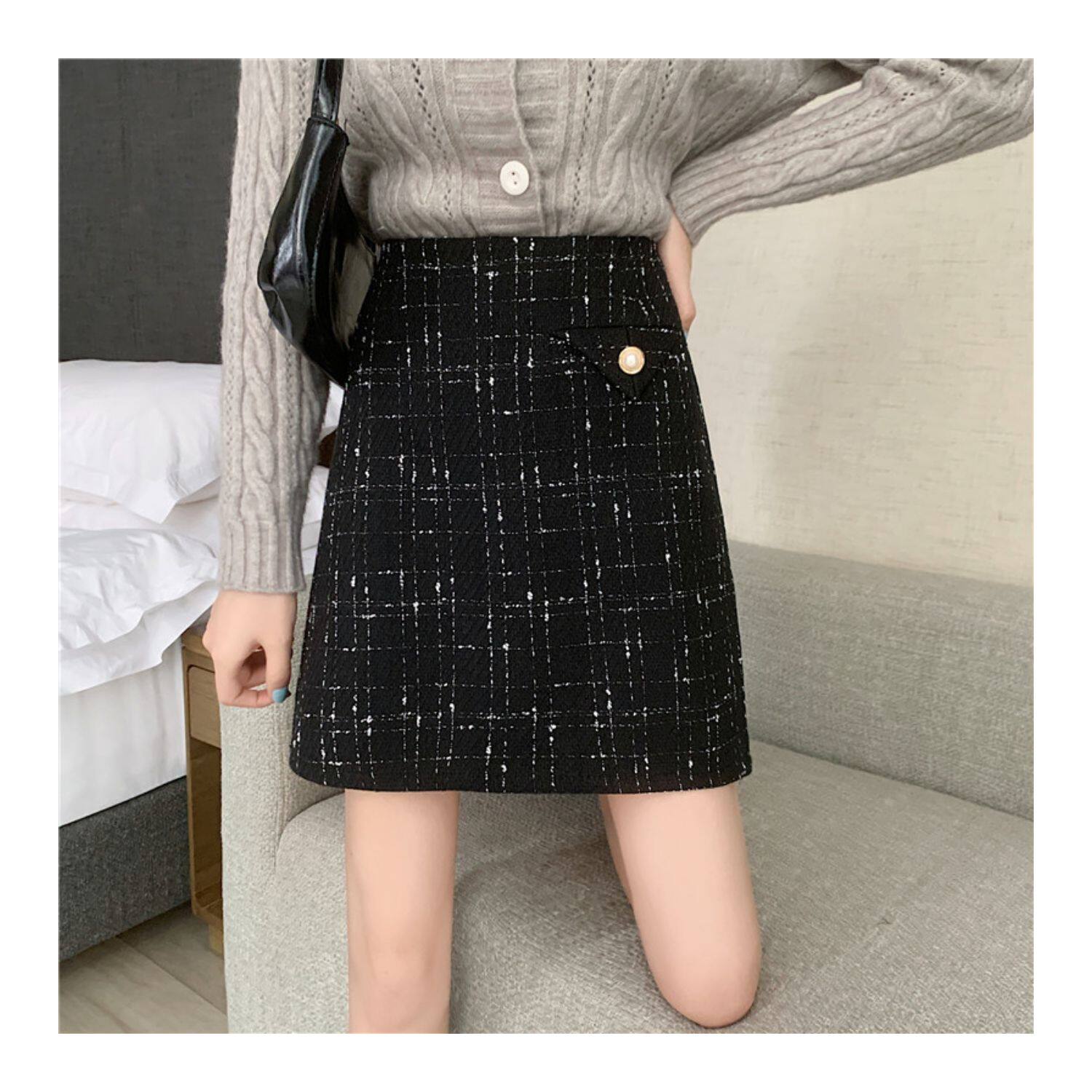 Демисезонная мини-юбка, клетчатая брендовая шерстяная юбка, большой размер, в стиле Шанель, высокая талия, А-силуэт