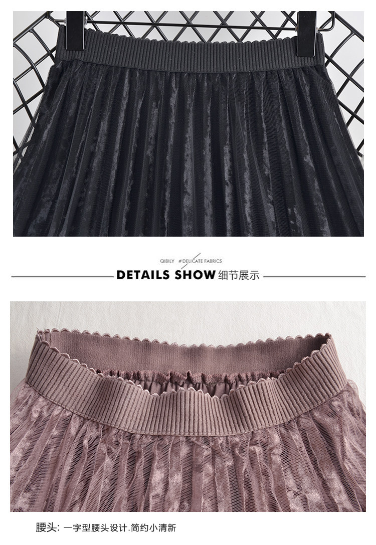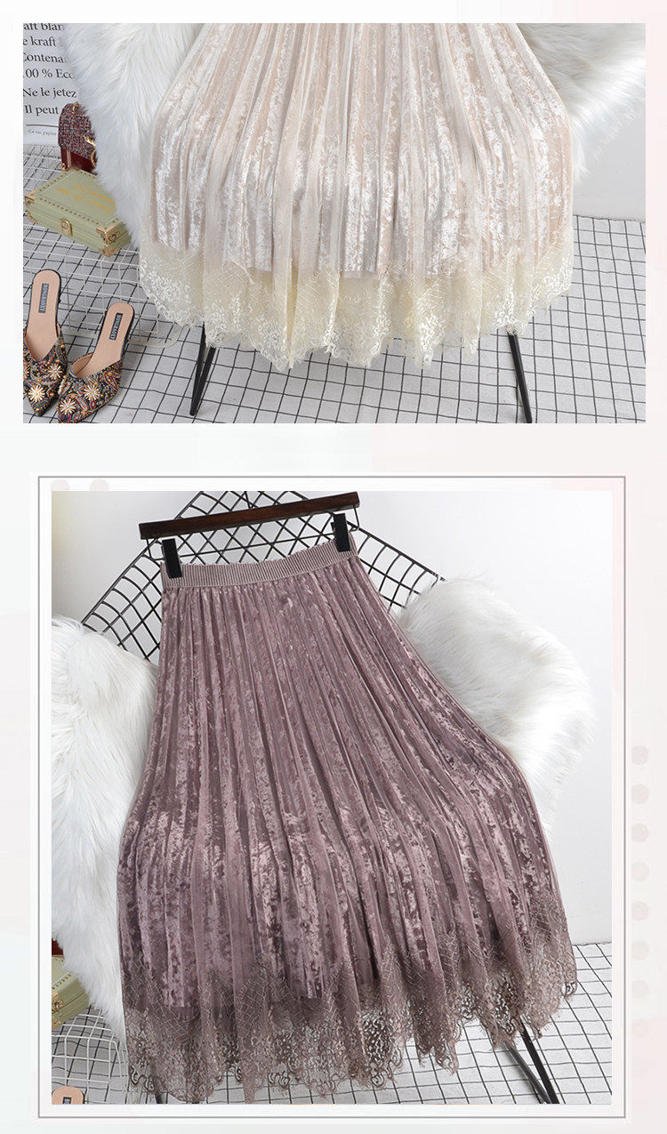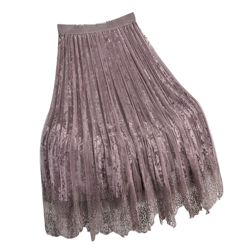 Демисезонная приталенная длинная кружевная бархатная юбка, средней длины, юбка из сетки
