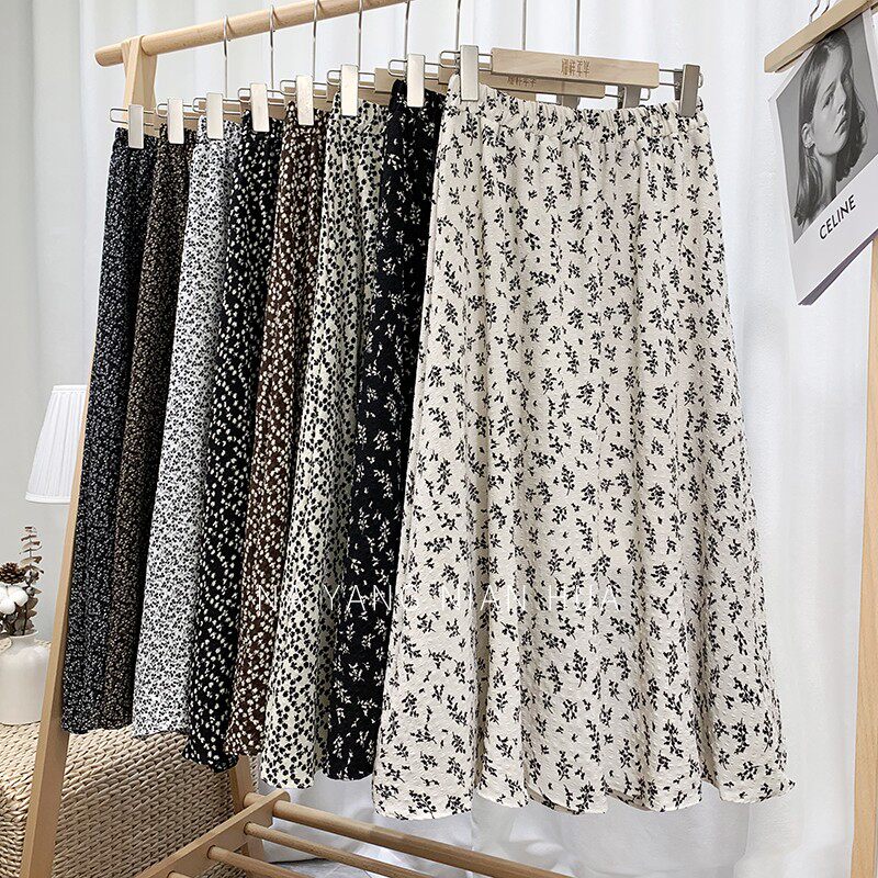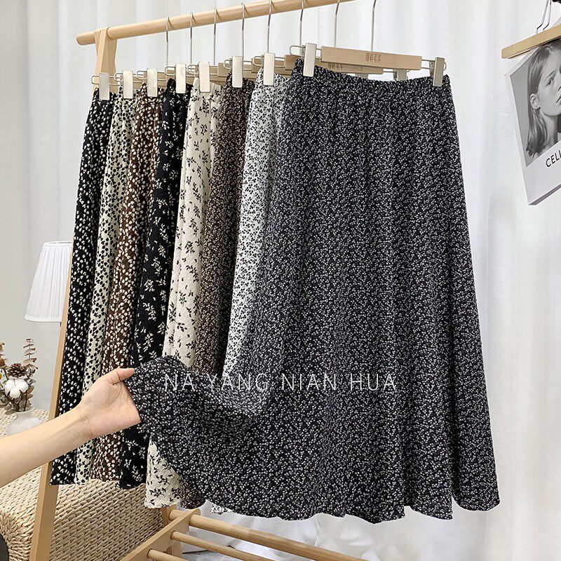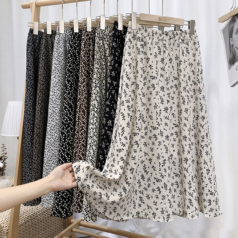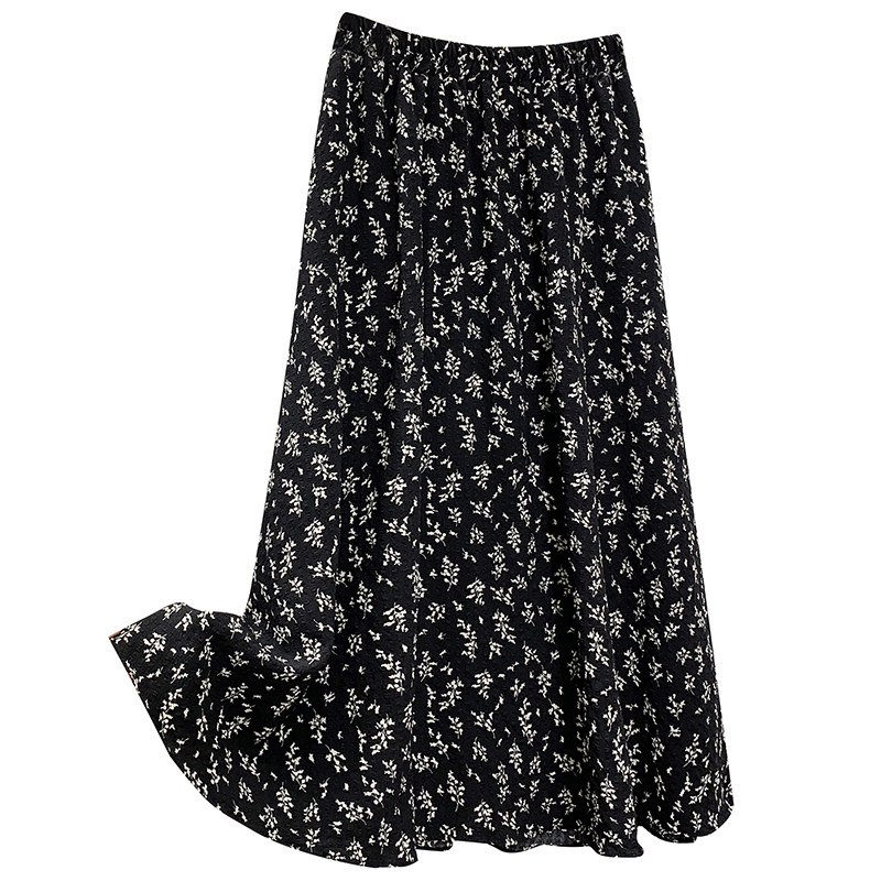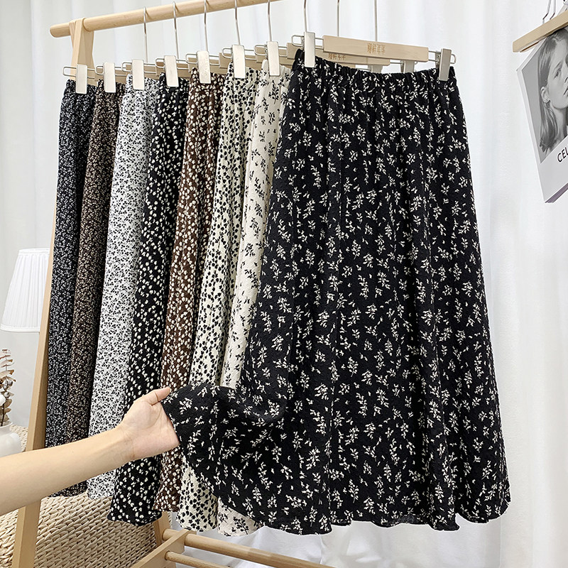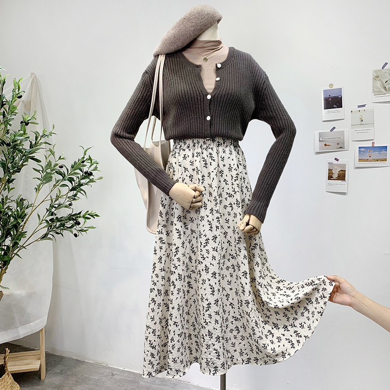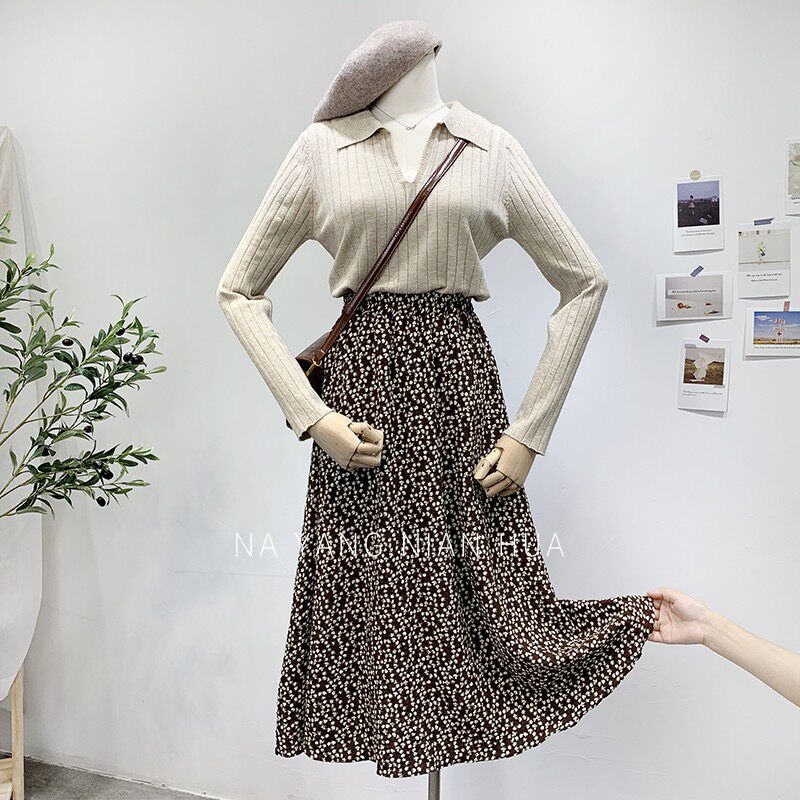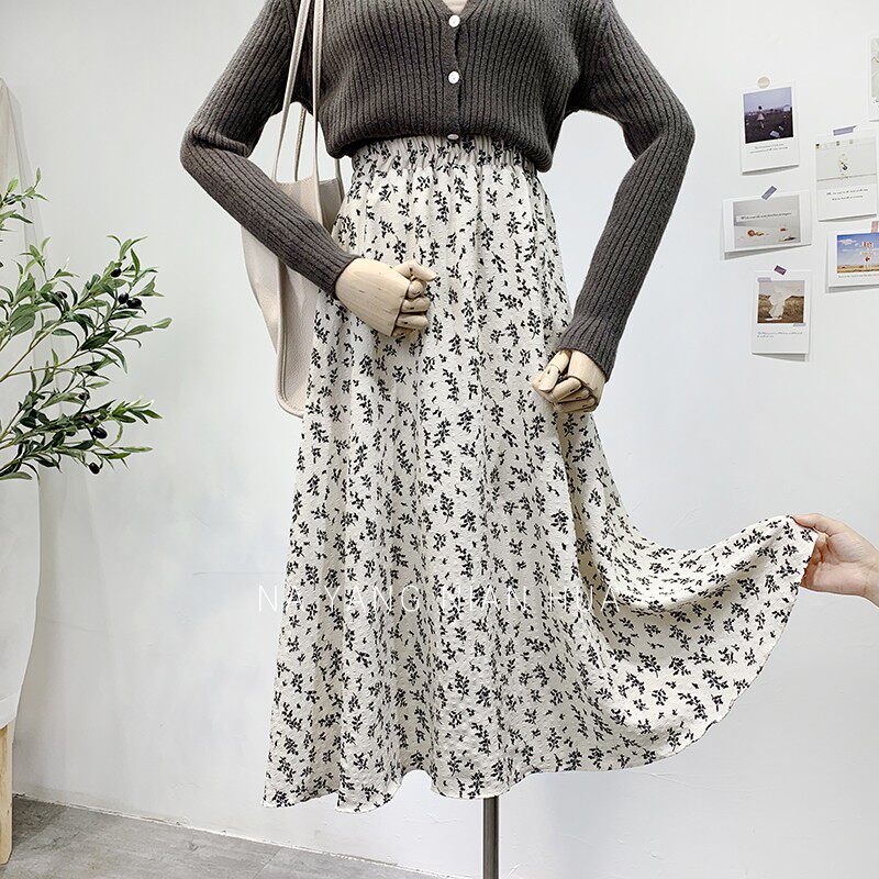 Ретро демисезонная юбка, длинный свитер, высокая талия, цветочный принт, А-силуэт, средней длины
