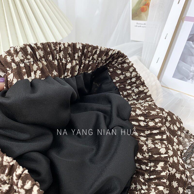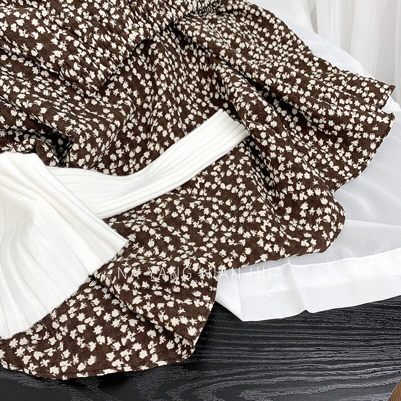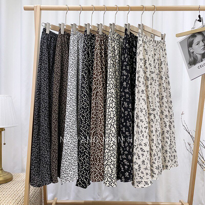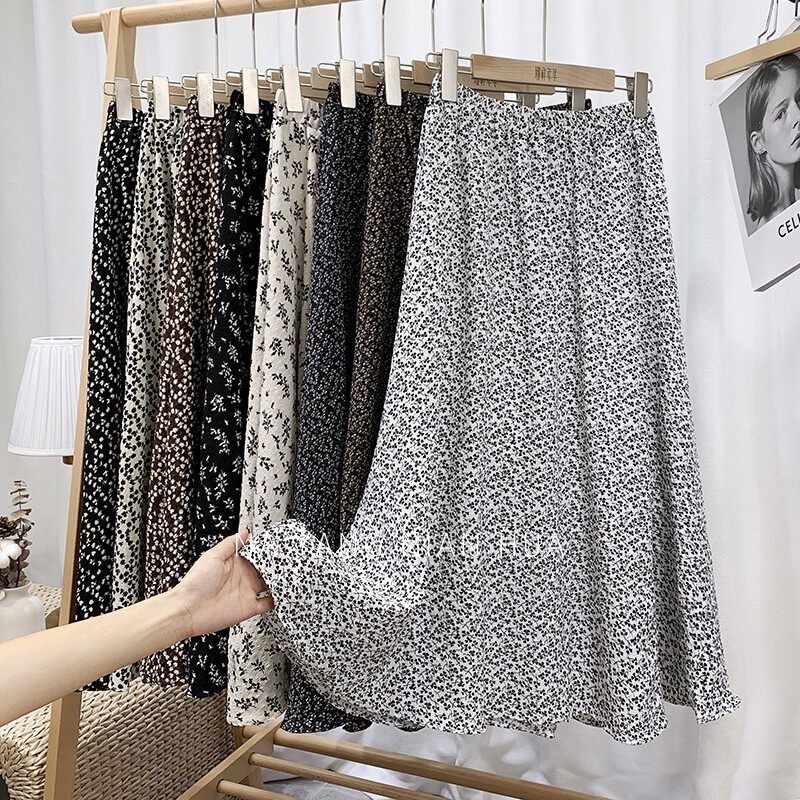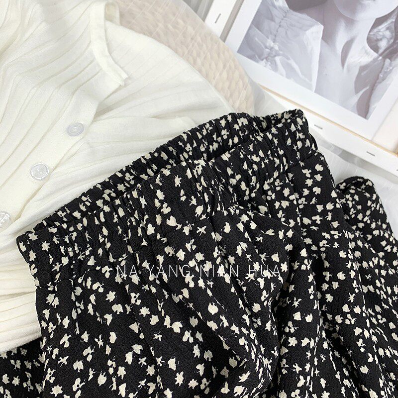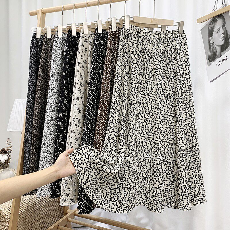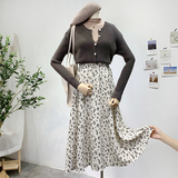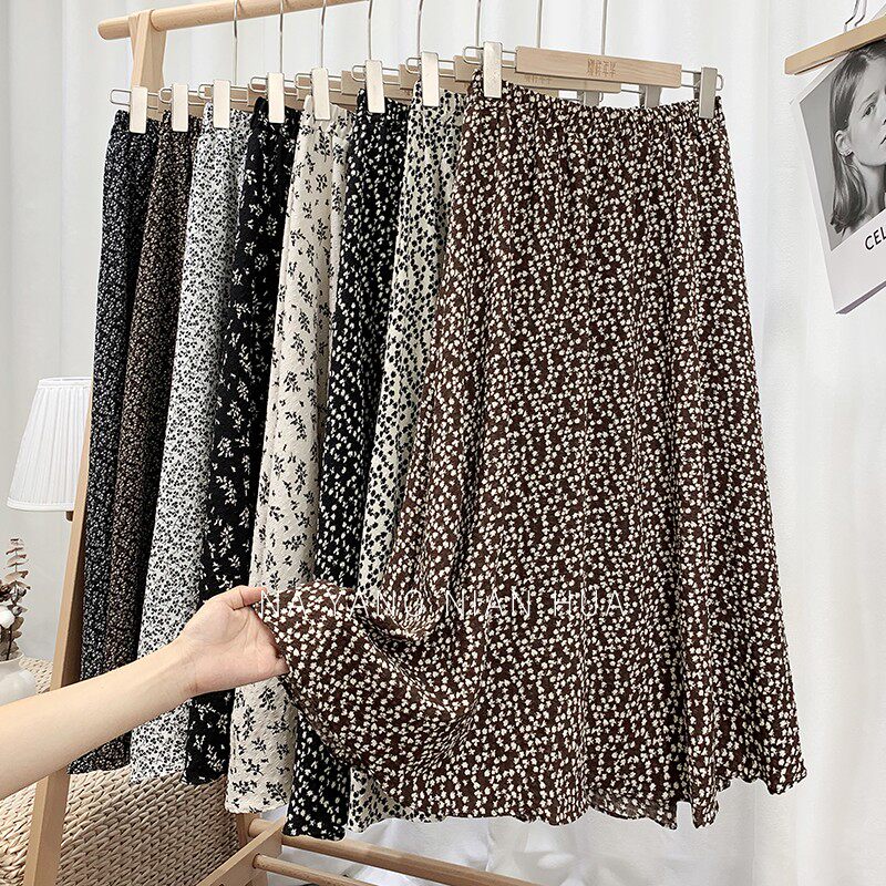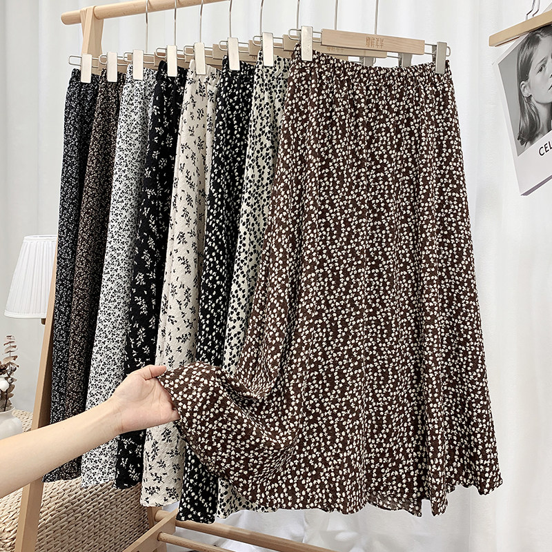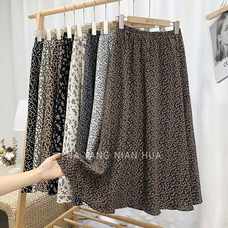 Ретро демисезонная юбка, длинный свитер, высокая талия, цветочный принт, А-силуэт, средней длины