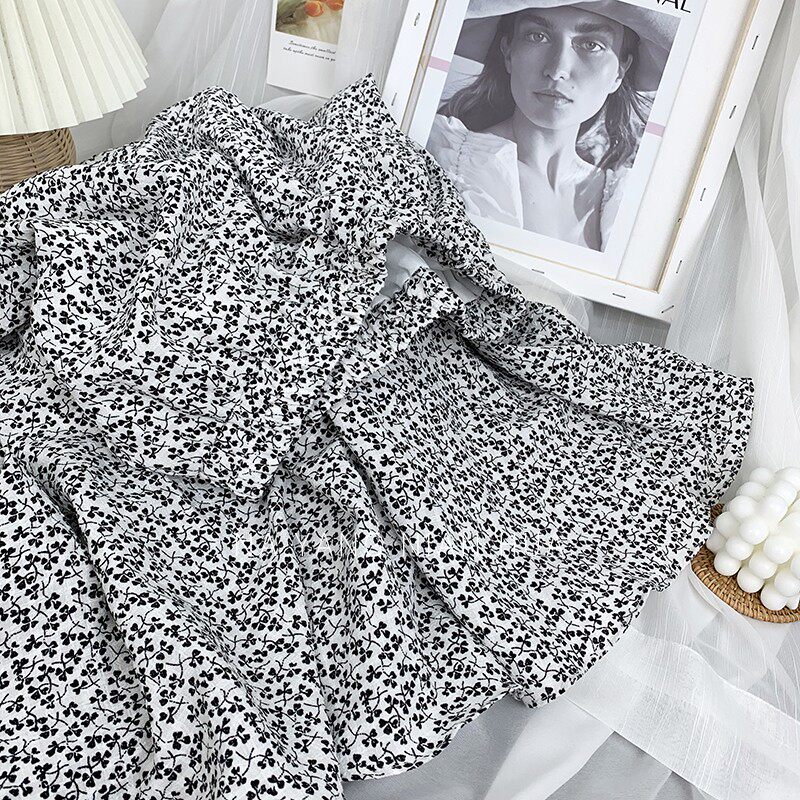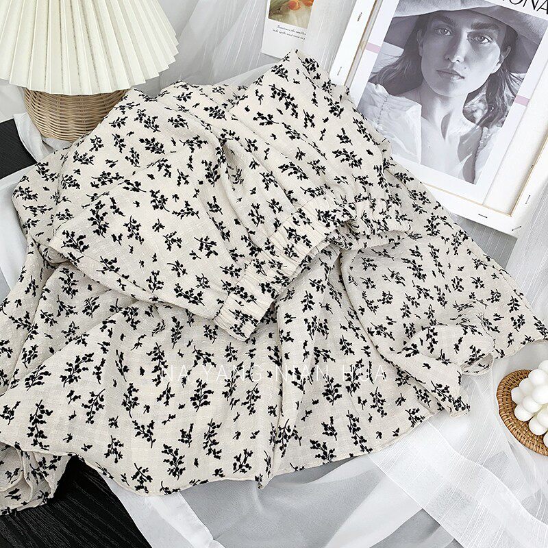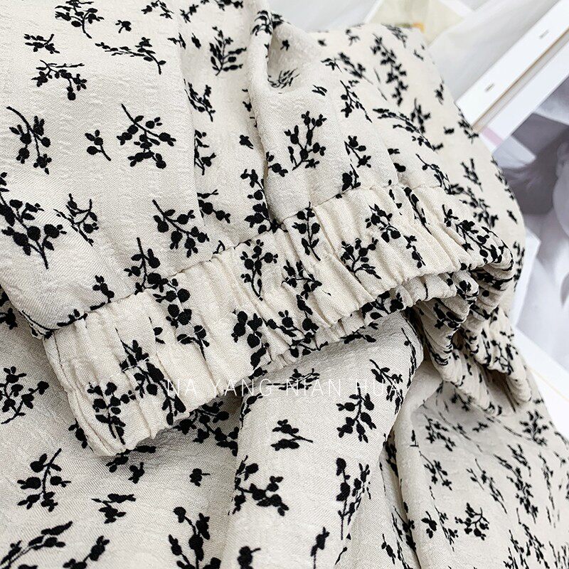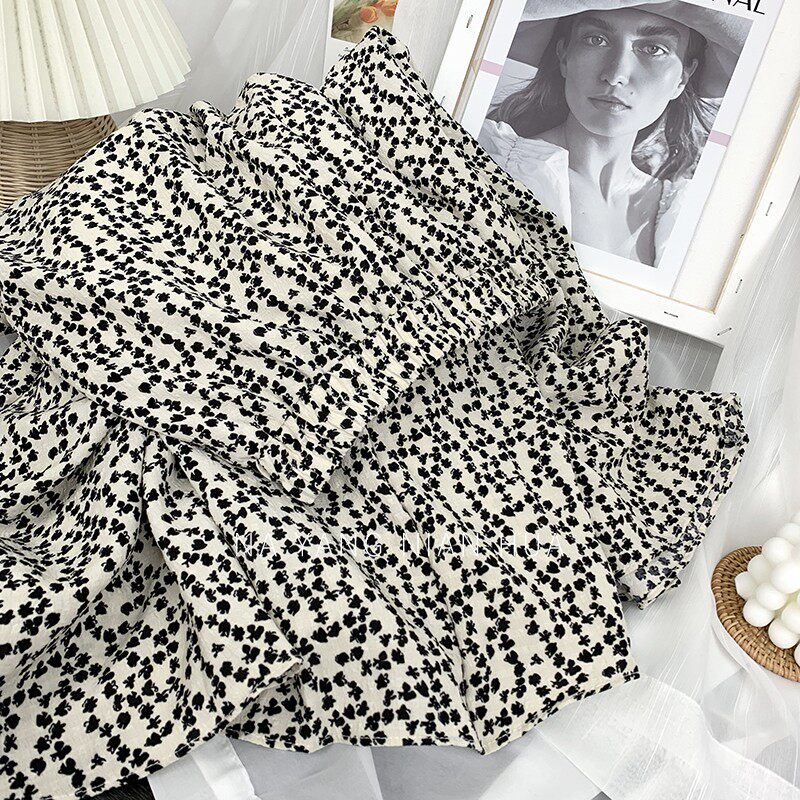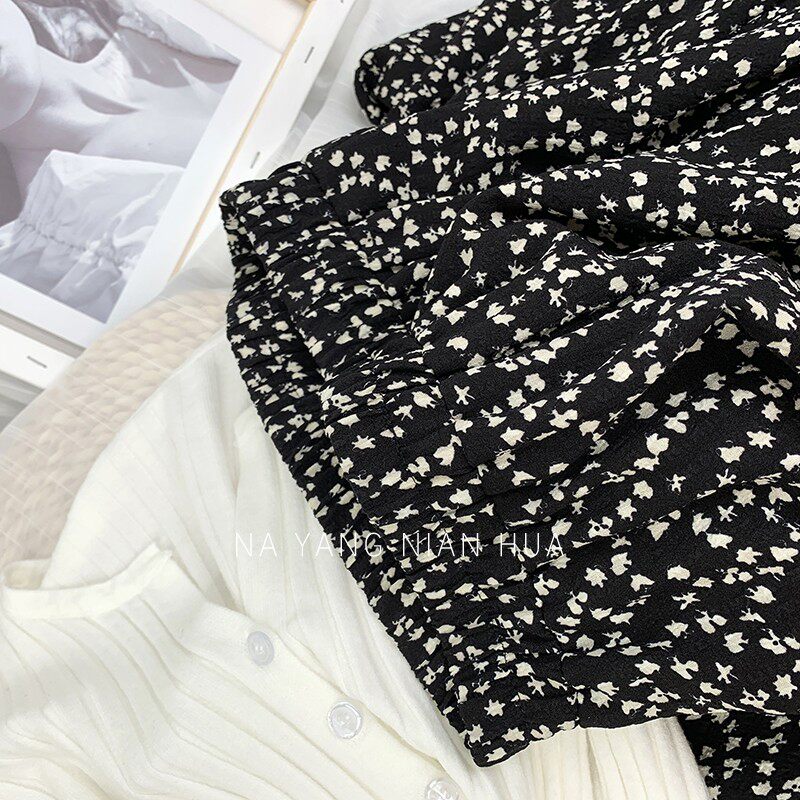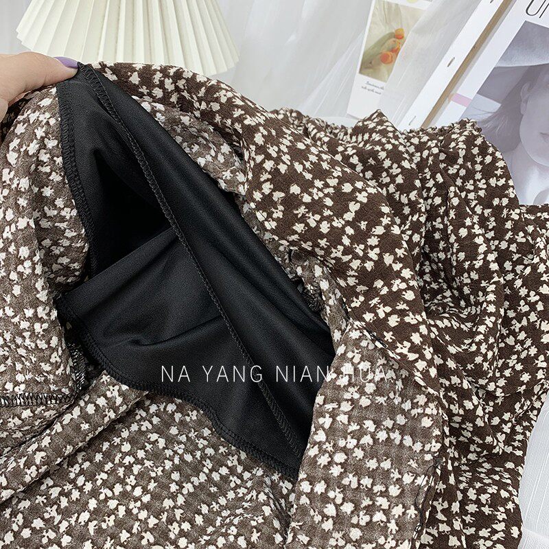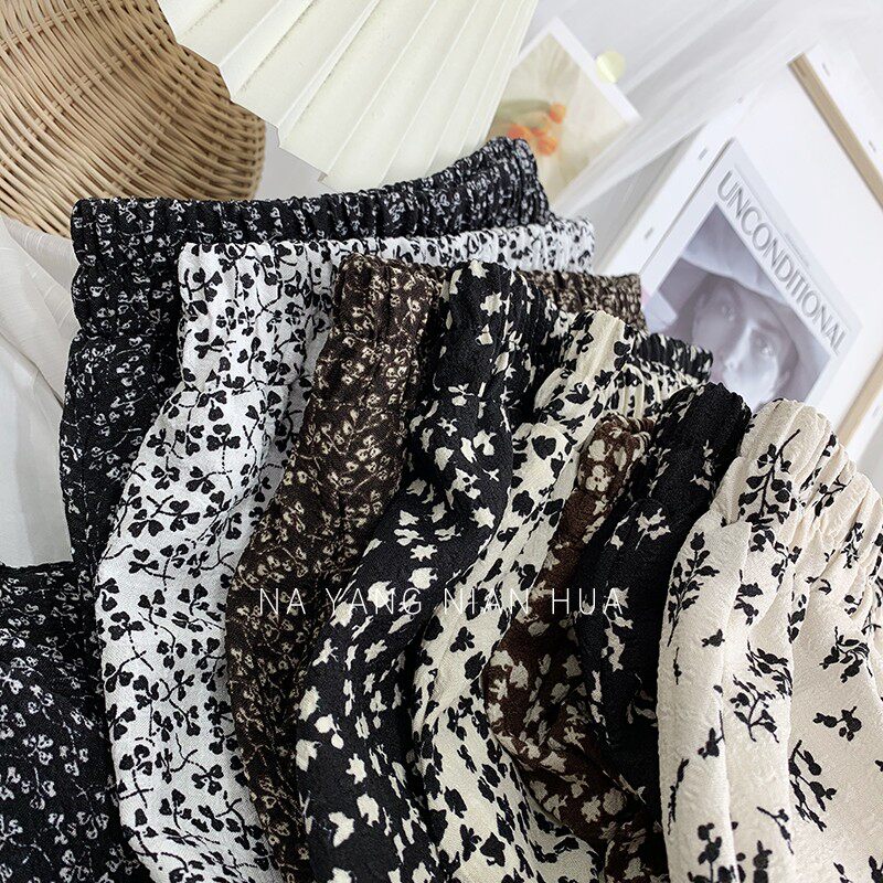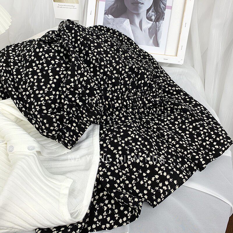 Ретро демисезонная юбка, длинный свитер, высокая талия, цветочный принт, А-силуэт, средней длины
