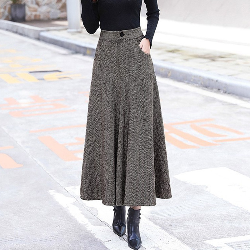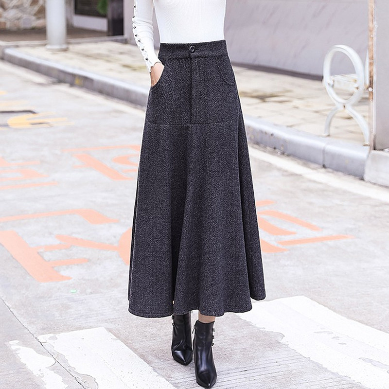 Шерстяной длинный осенний зимний свитер, длинная юбка, средней длины, коллекция 2021, высокая талия