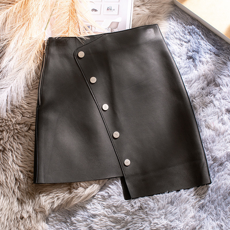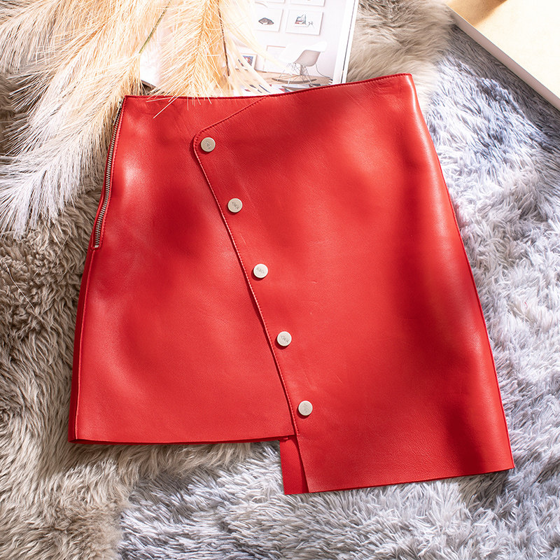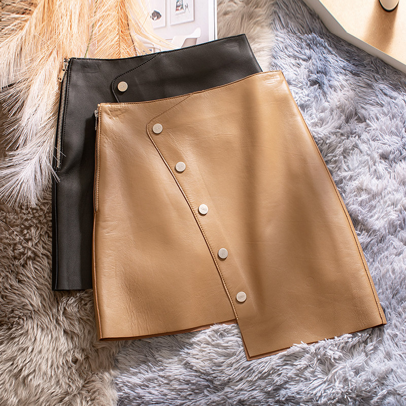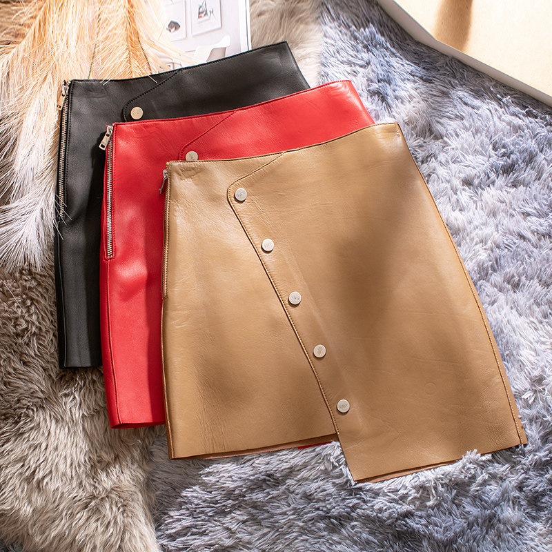 Весенняя юбка, в западном стиле, коллекция 2021, высокая талия, из натуральной кожи, А-силуэт