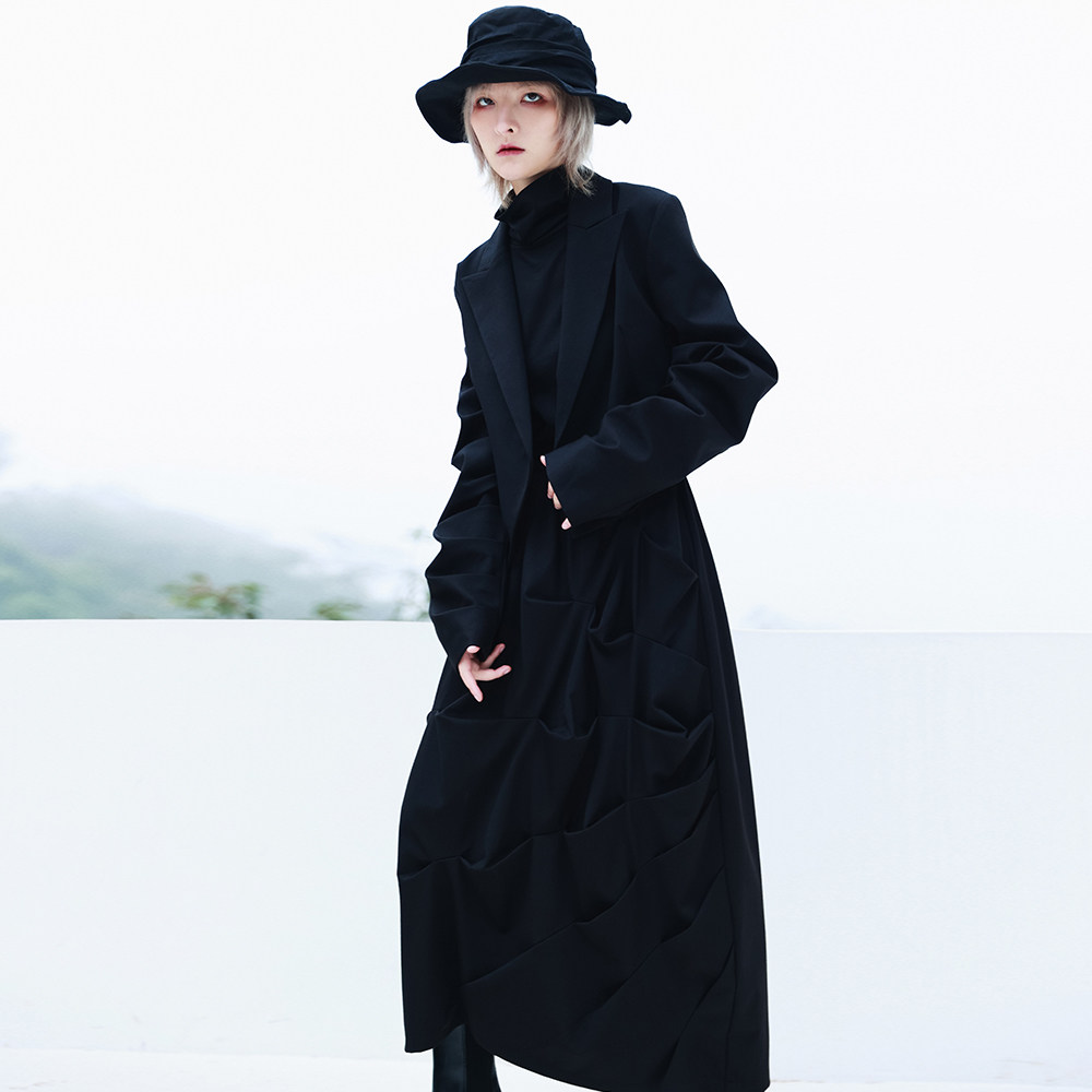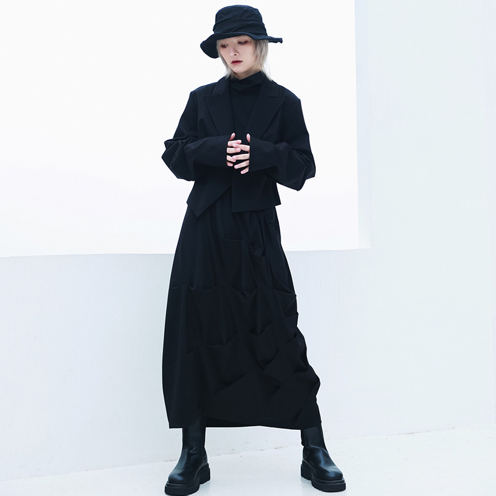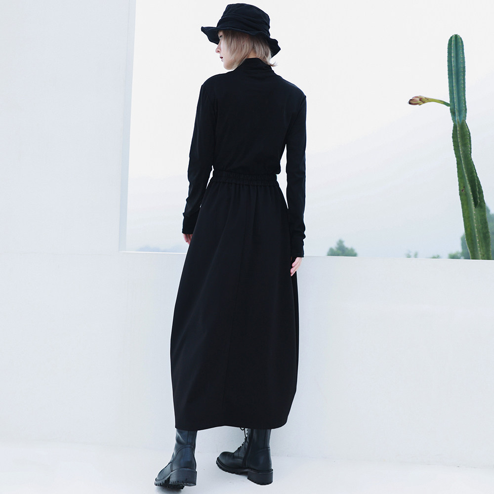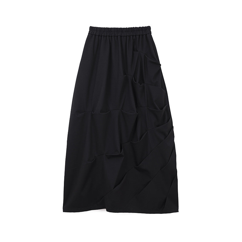 Небольшая дизайнерская осенняя длинная черная юбка, А-силуэт, средней длины
