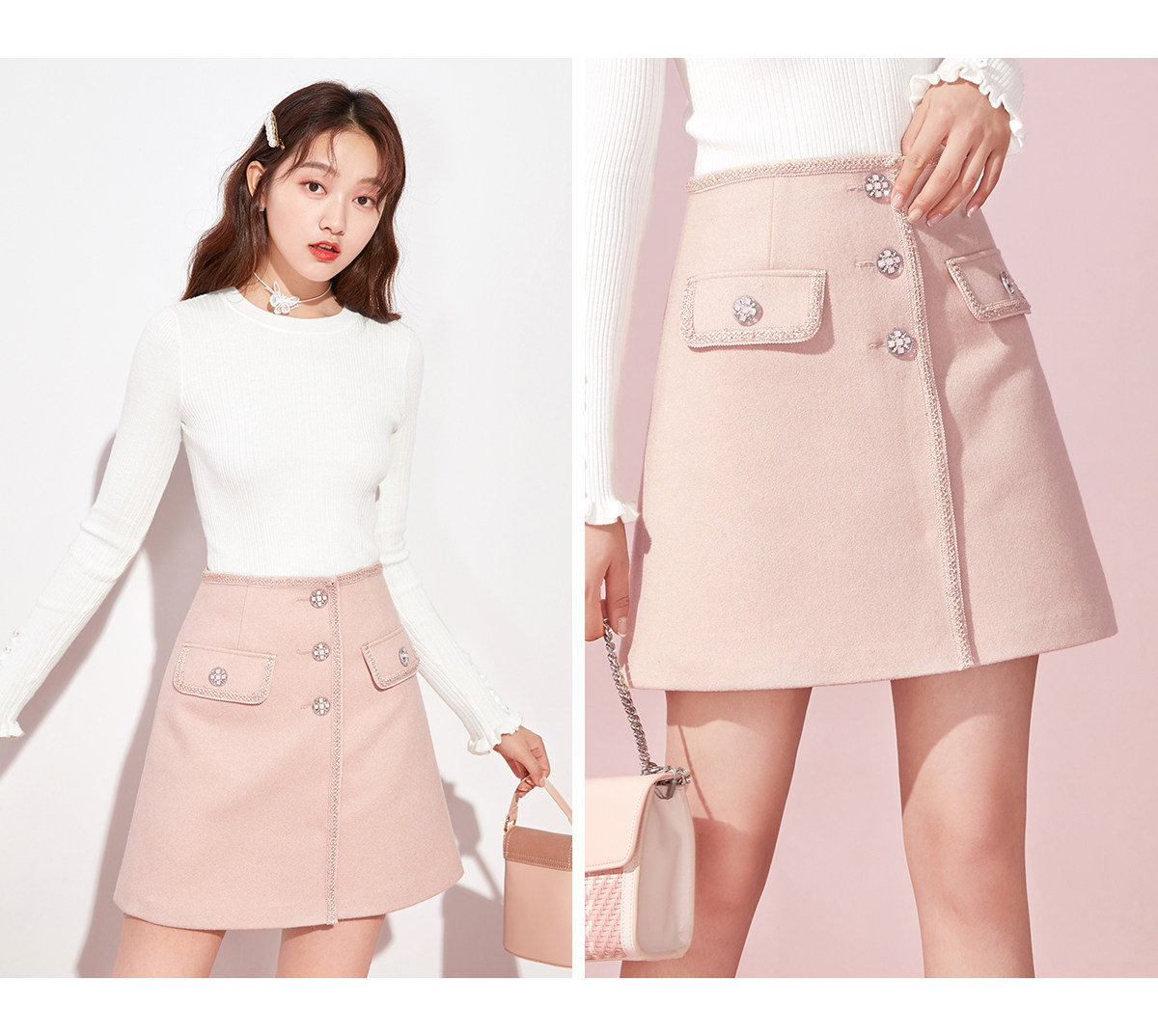 Весенняя зимняя шерстяная ретро юбка, мини-юбка, 2021 года, французский стиль, А-силуэт, яркий броский стиль