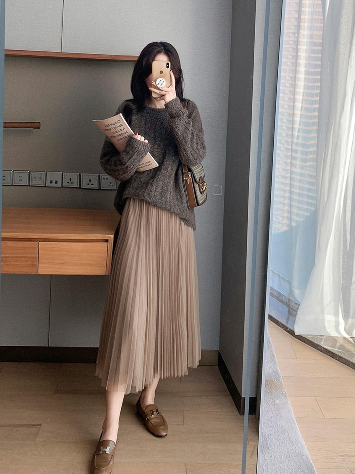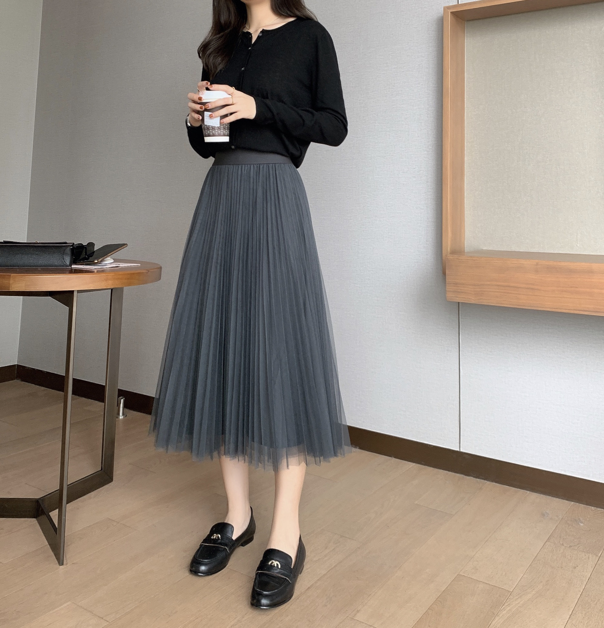 Длинная юбка в складку, средней длины, длина макси