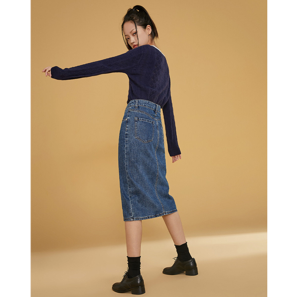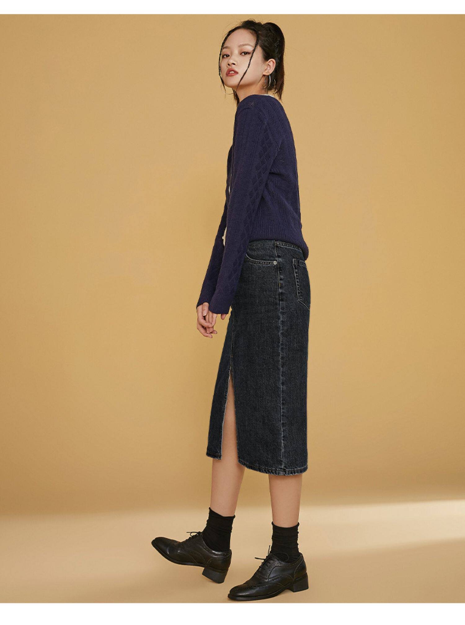 Длинная ретро весенняя осенняя джинсовая юбка, средней длины, 2021 года, с акцентом на бедрах