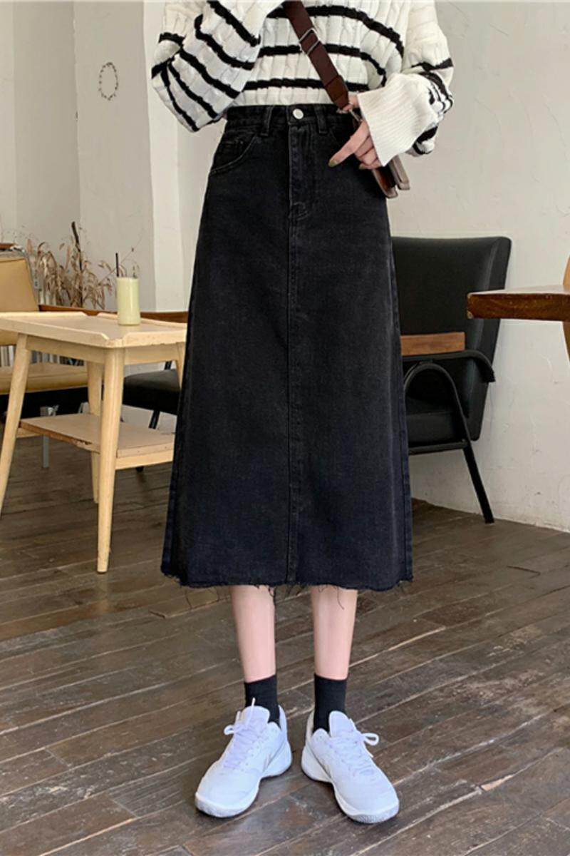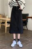 Демисезонная длинная черная цветная джинсовая юбка, большой размер, прикрывает попу, по фигуре, в западном стиле, средней длины, высокая талия