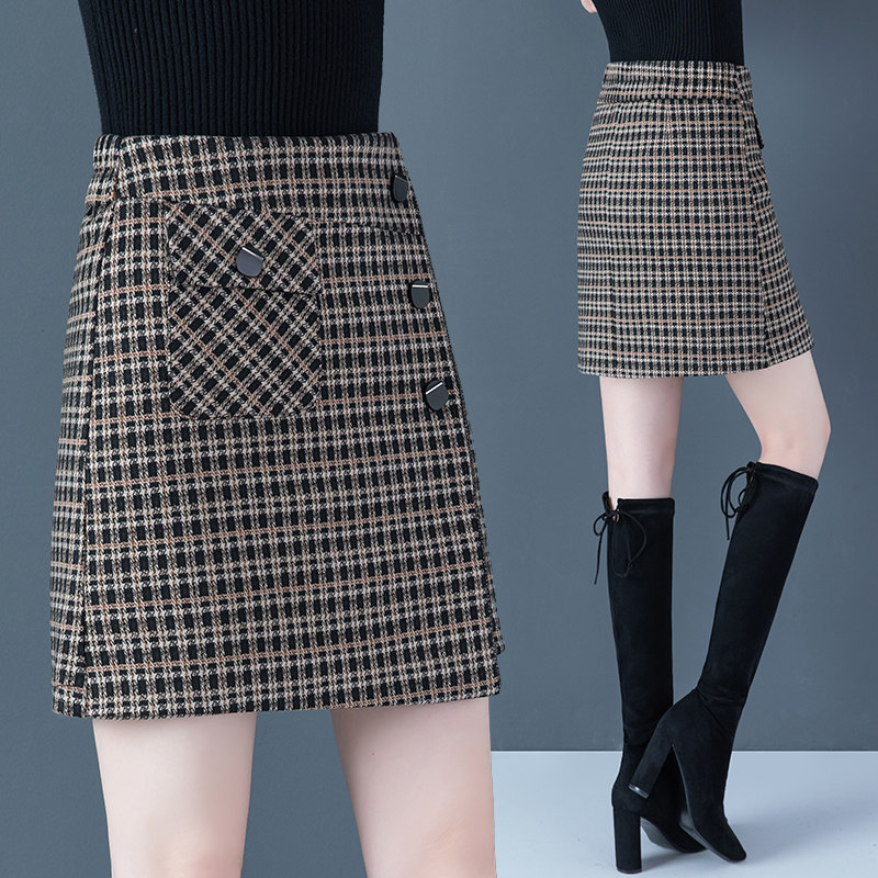 Шерстяная демисезонная юбка, мини-юбка, 2021 года, А-силуэт, высокая талия, с акцентом на бедрах