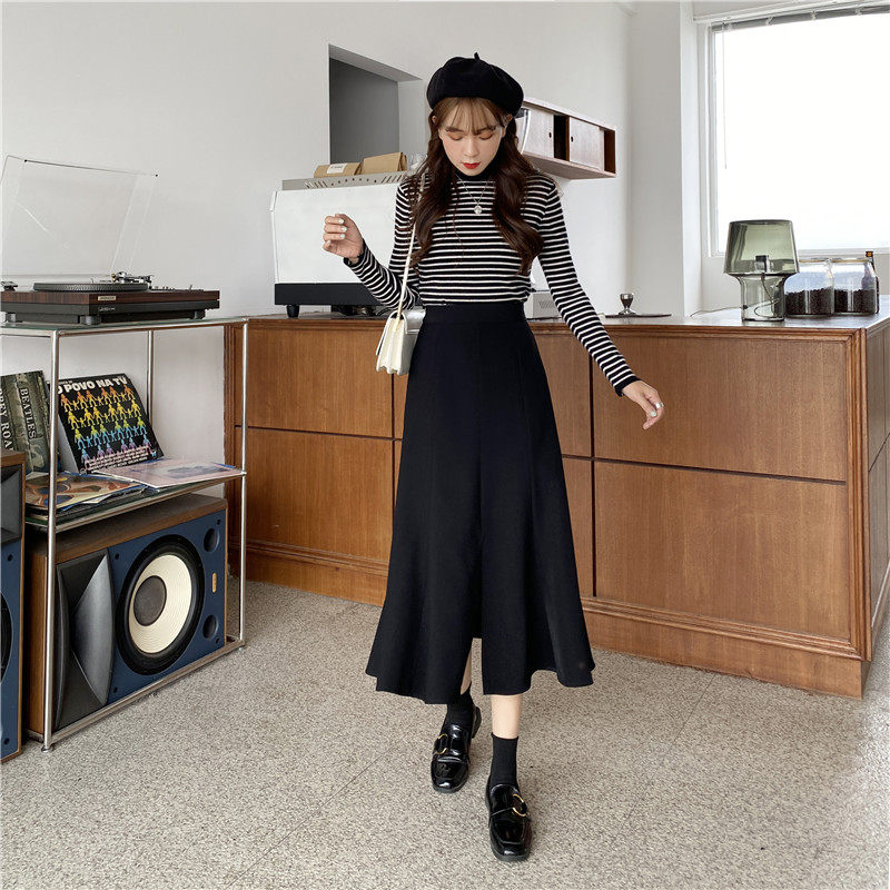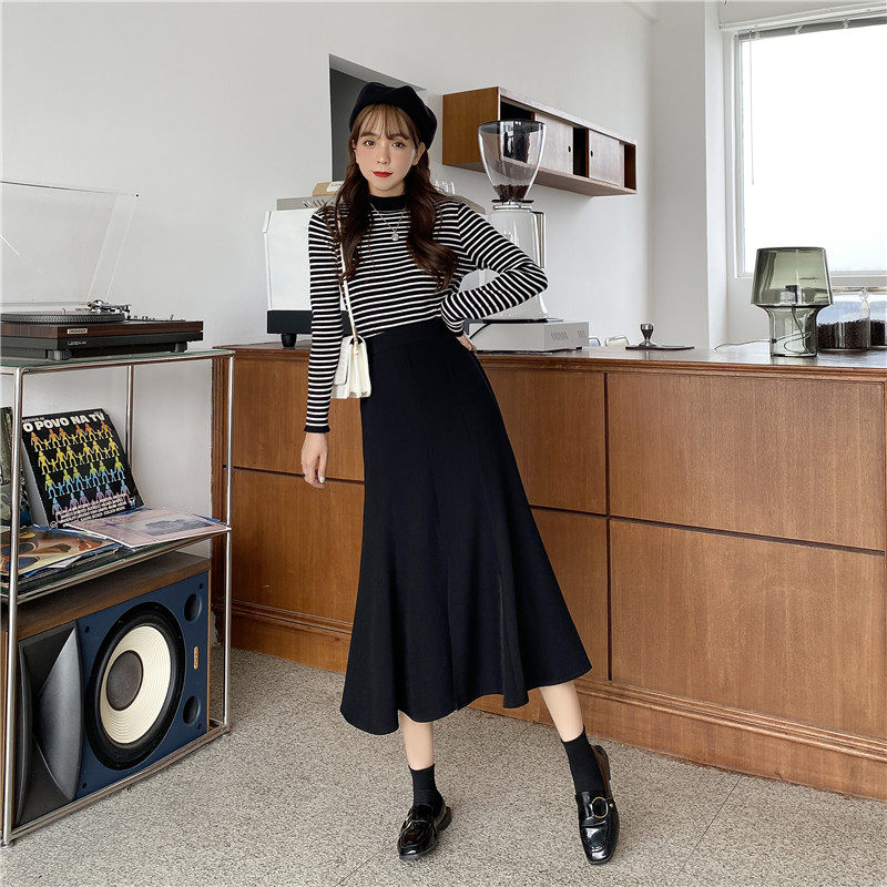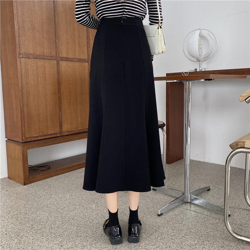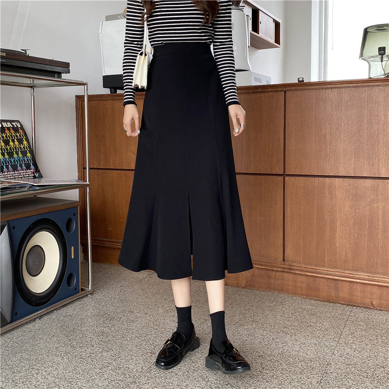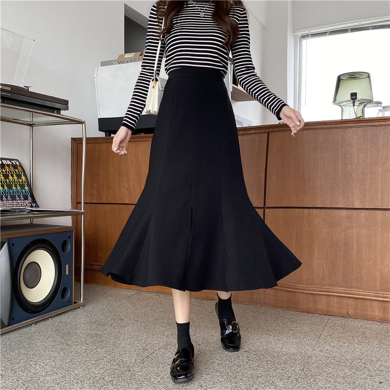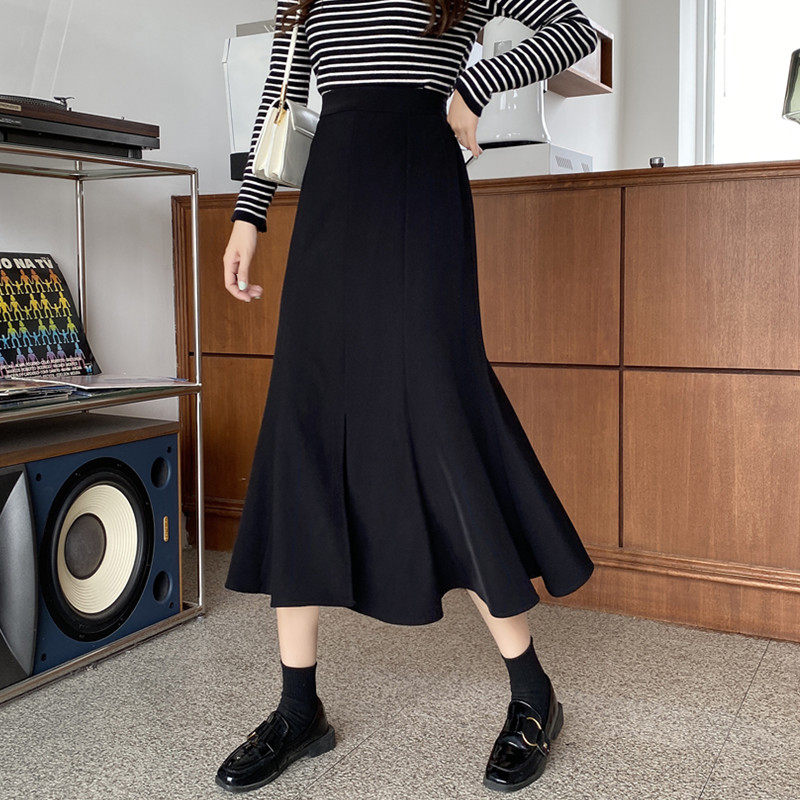Осенняя длинная юбка, большой размер, А-силуэт, средней длины, высокая талия, рыбий хвост