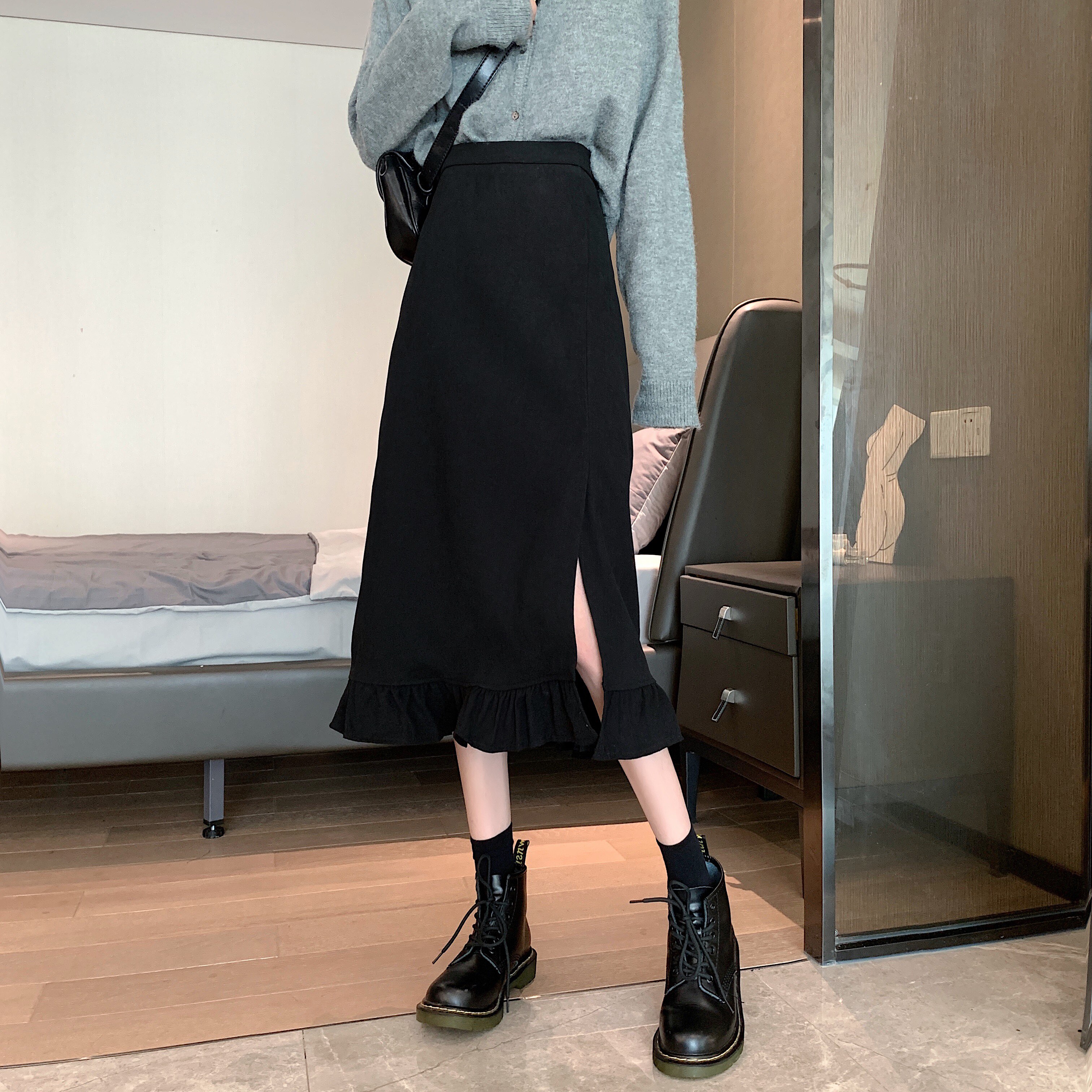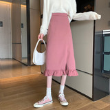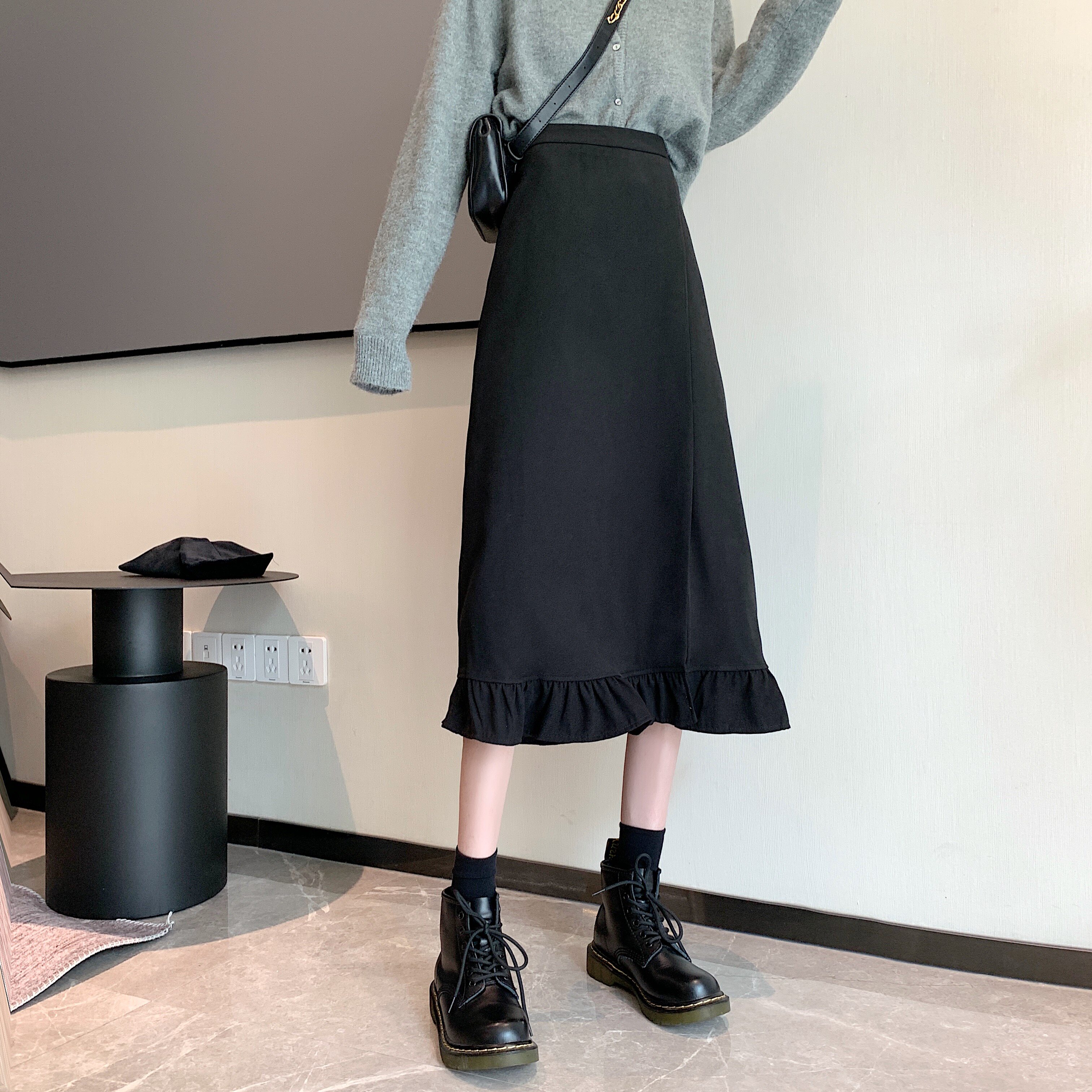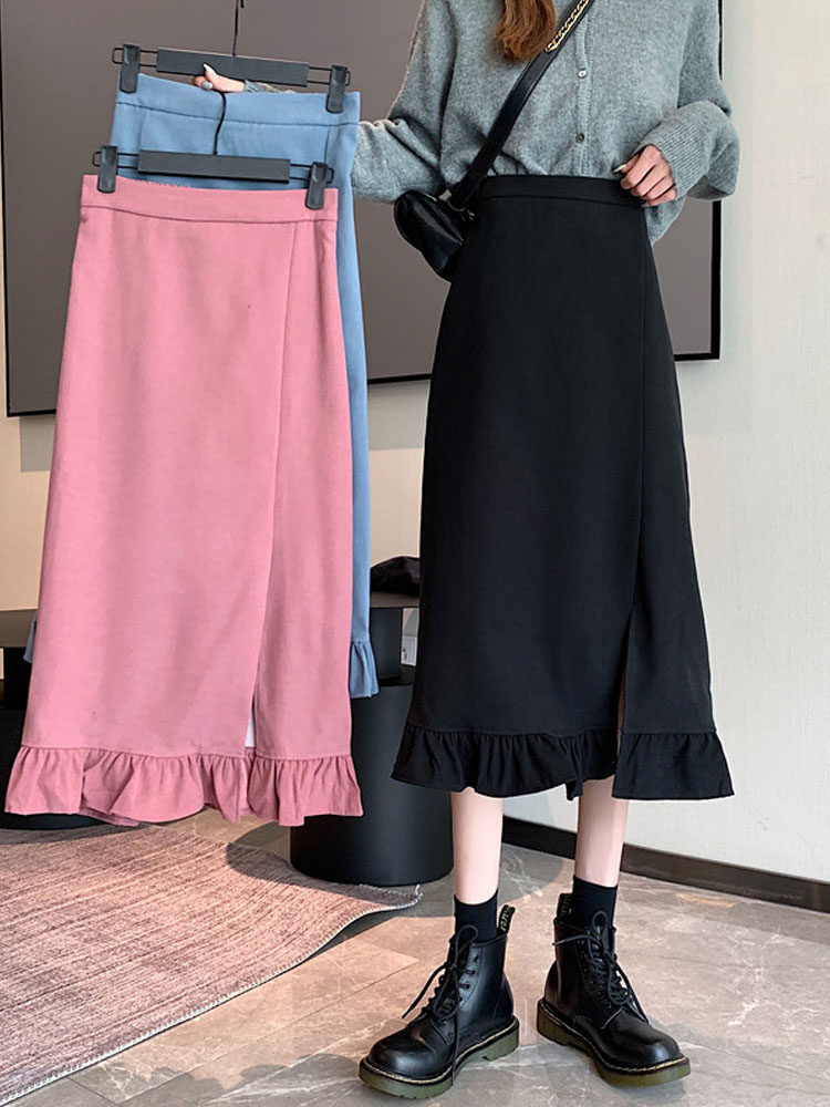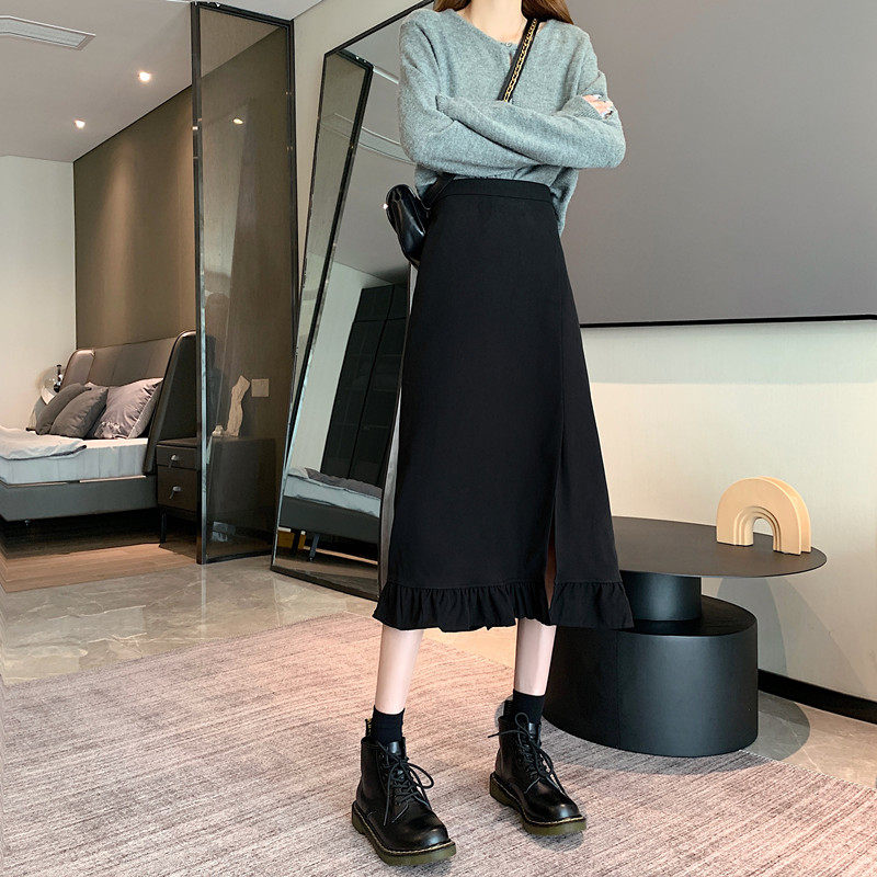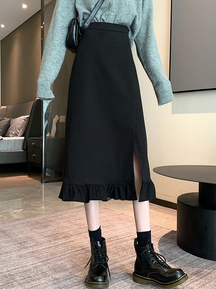 Черная весенняя зимняя длинная юбка, цветная юбка, высокая талия, средней длины, городской стиль
