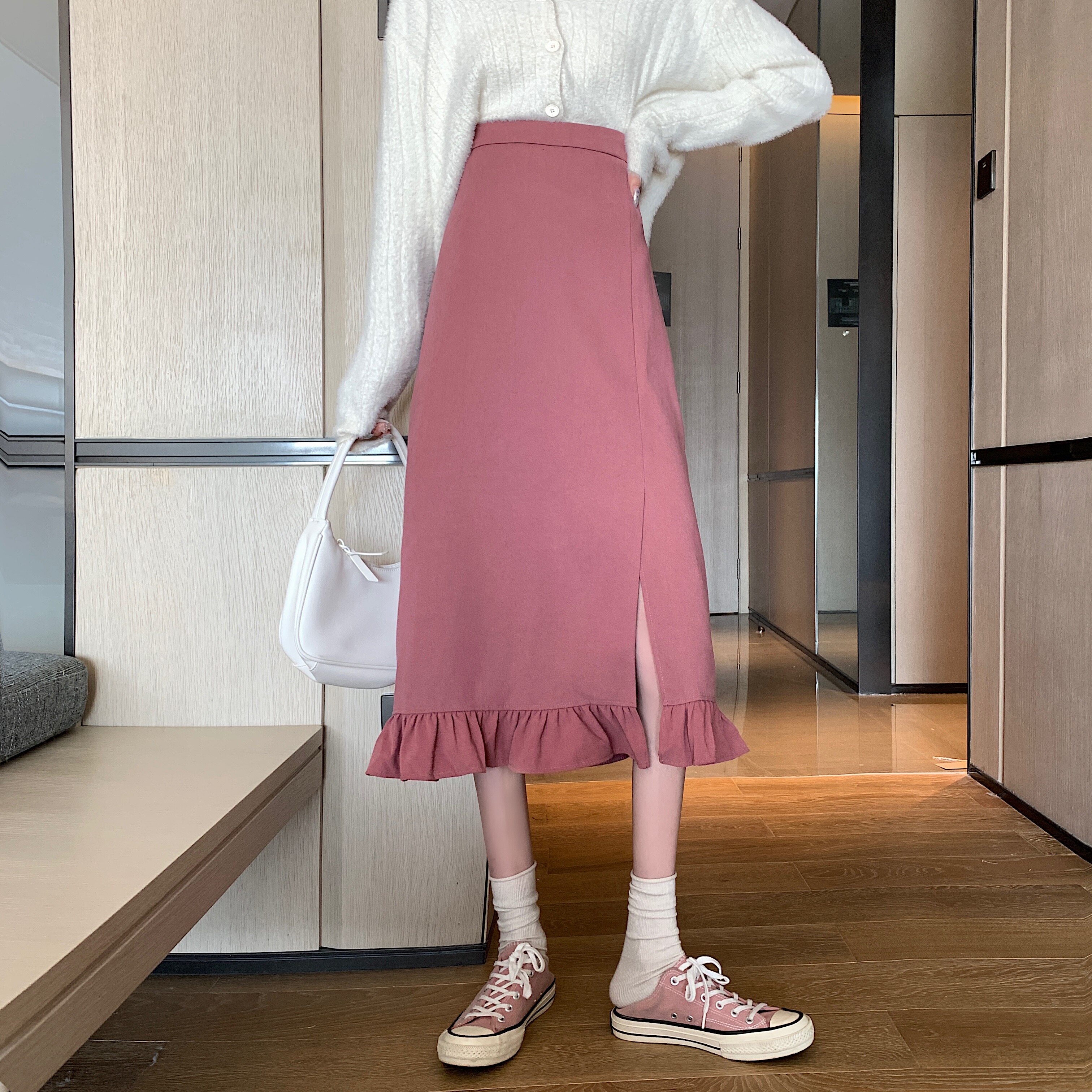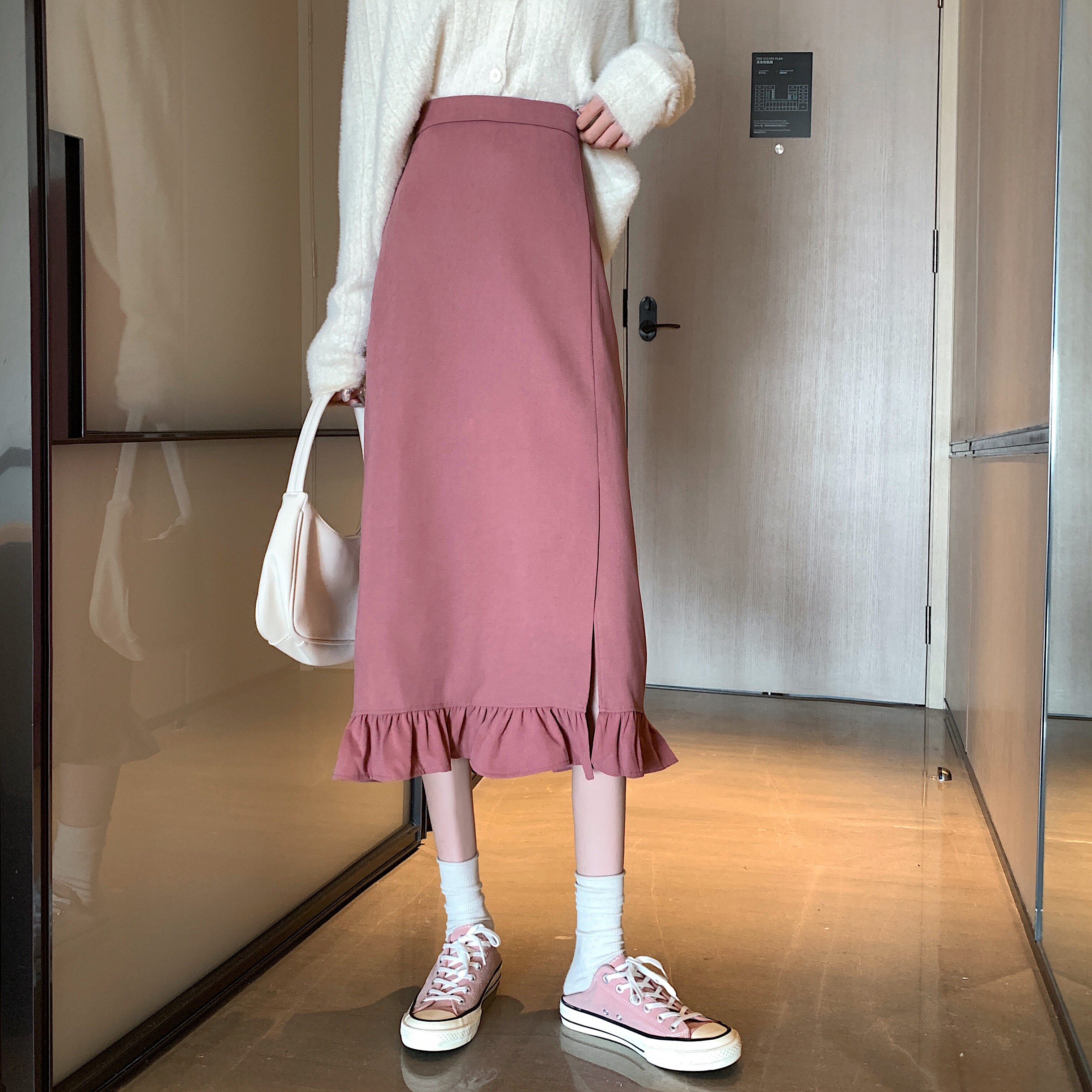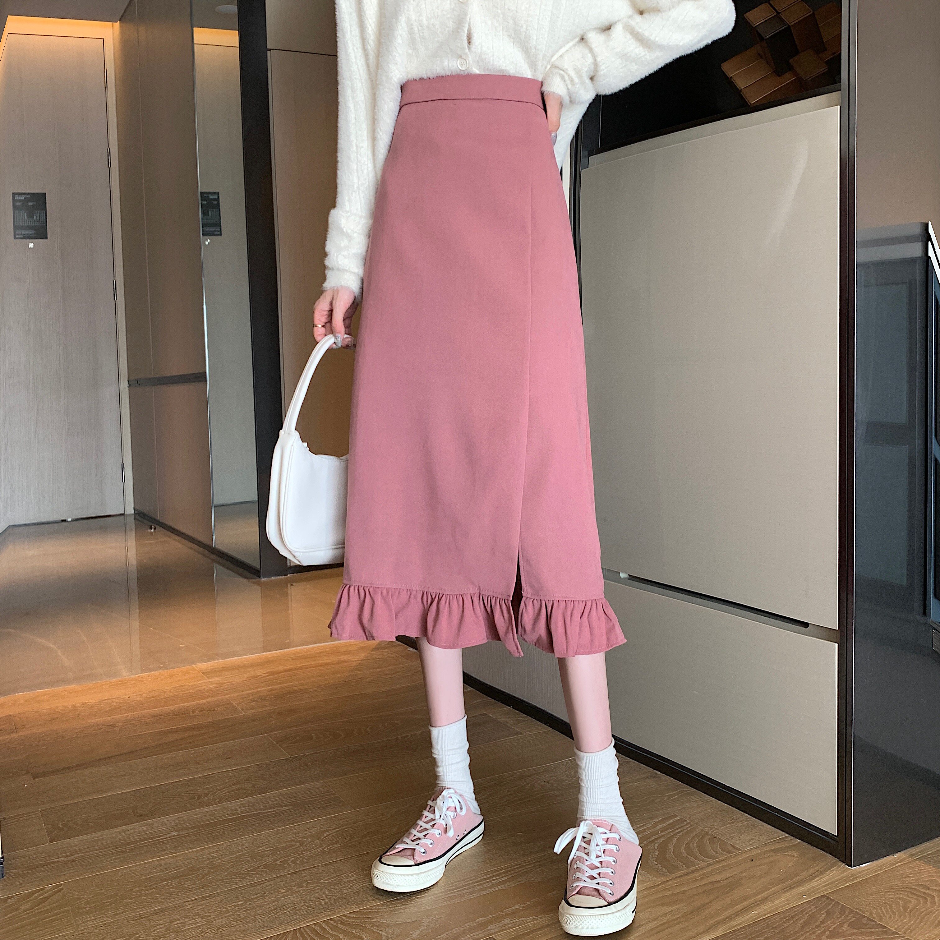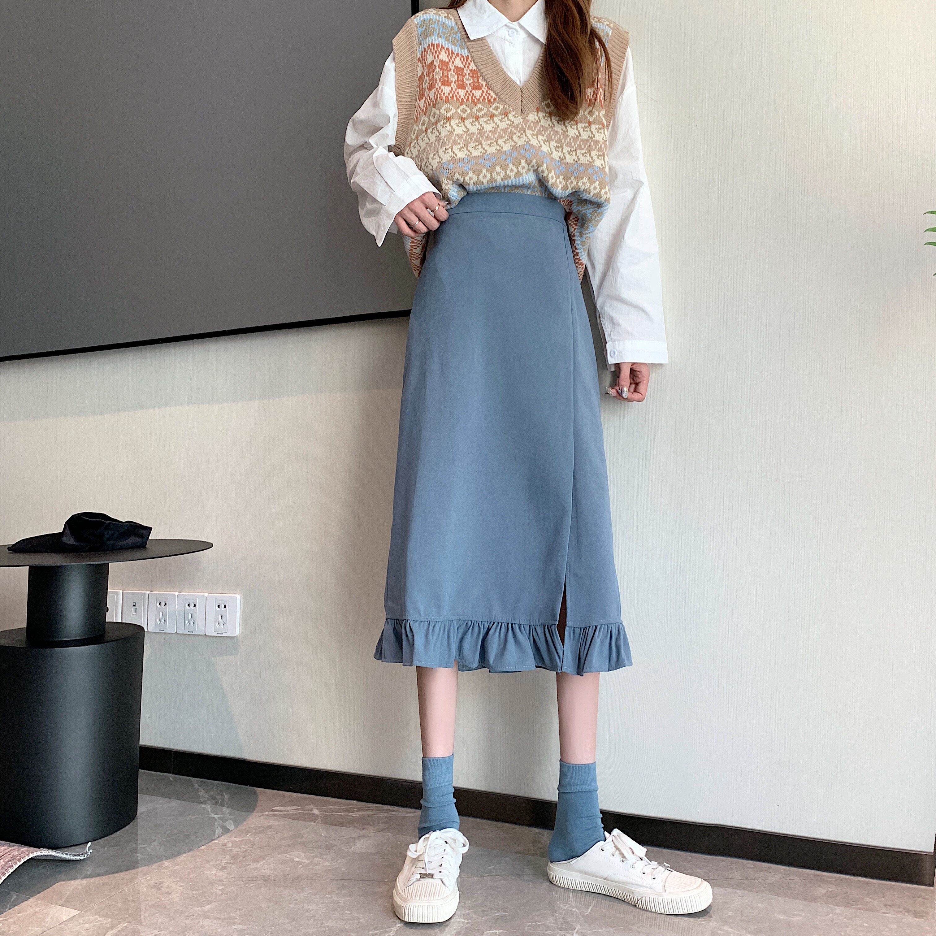Черная весенняя зимняя длинная юбка, цветная юбка, высокая талия, средней длины, городской стиль