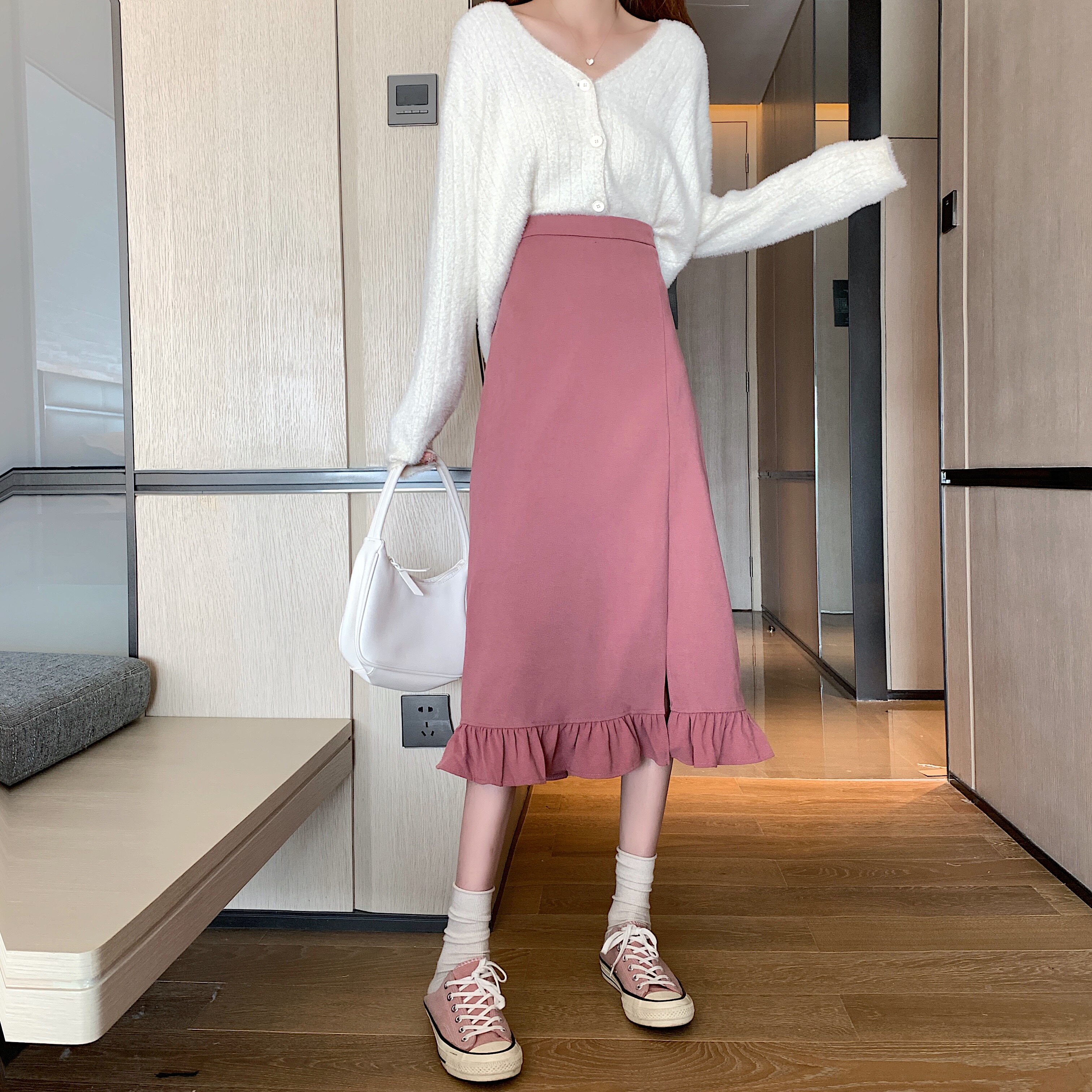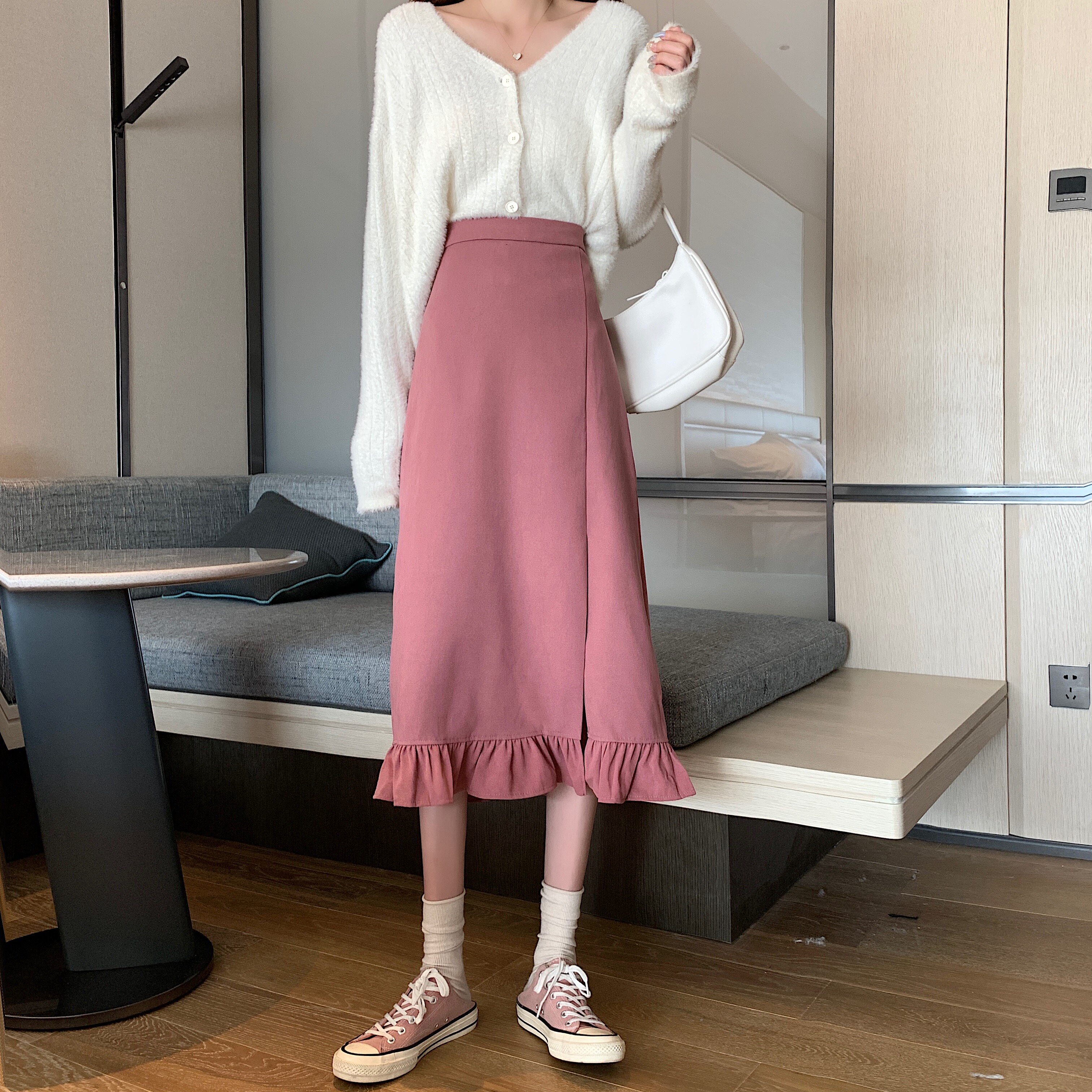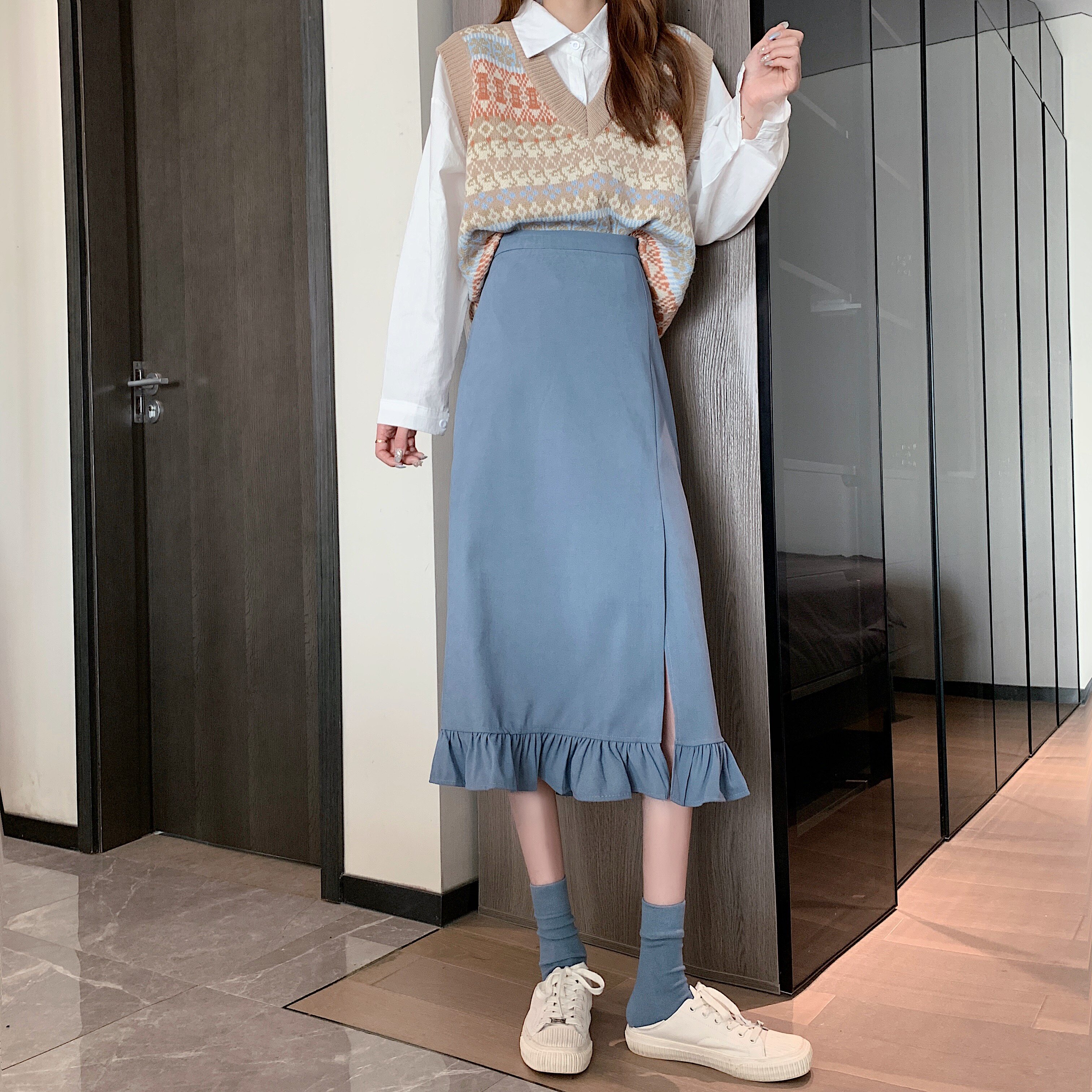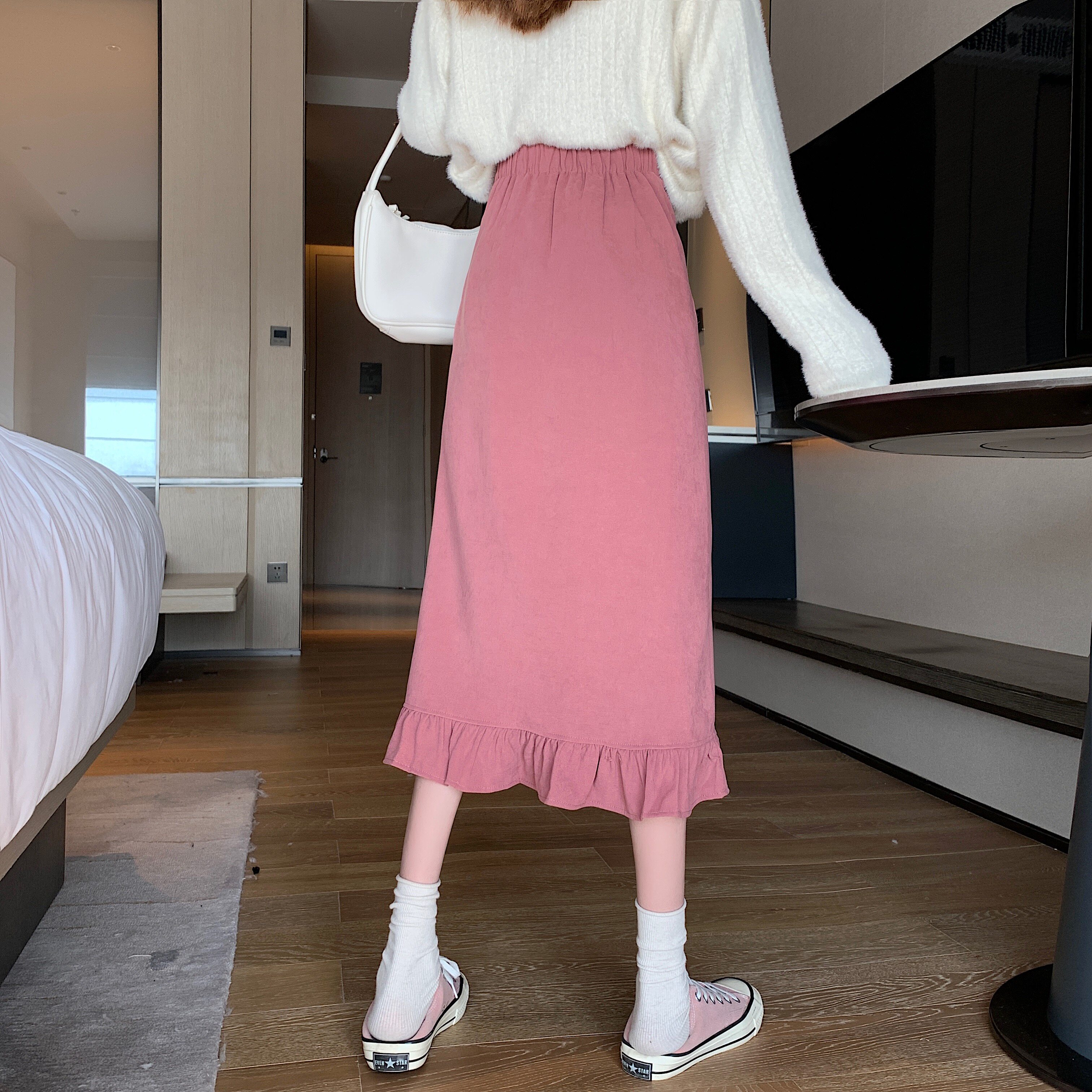 Черная весенняя зимняя длинная юбка, цветная юбка, высокая талия, средней длины, городской стиль