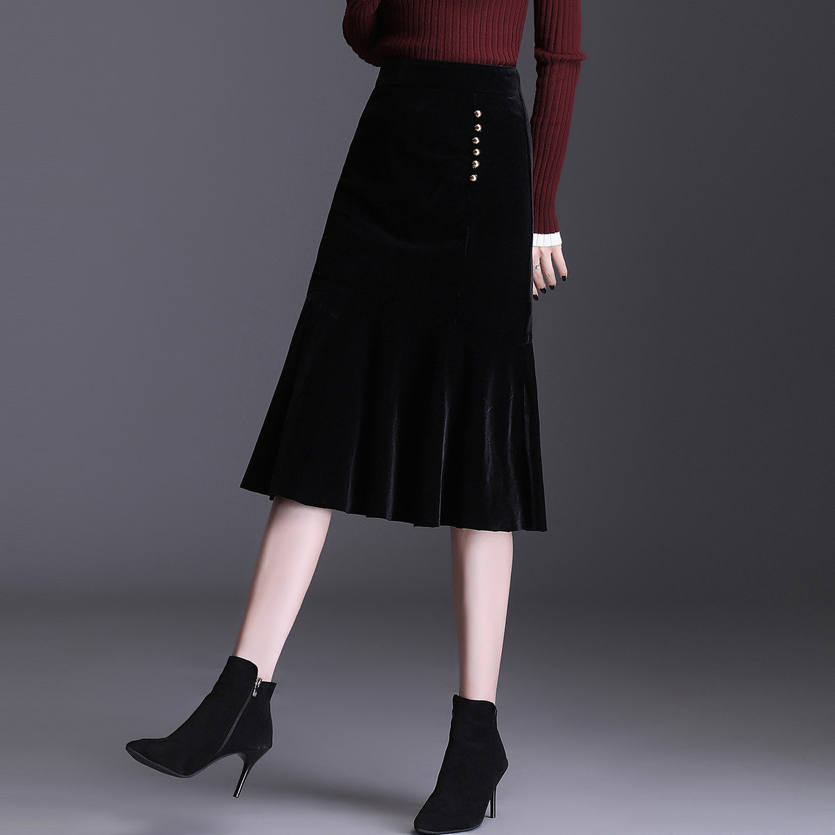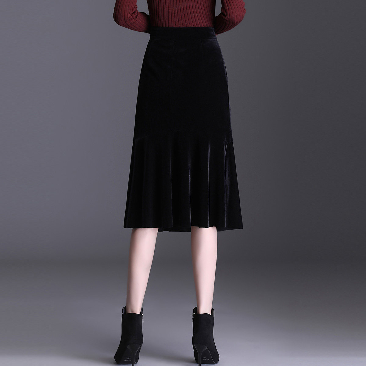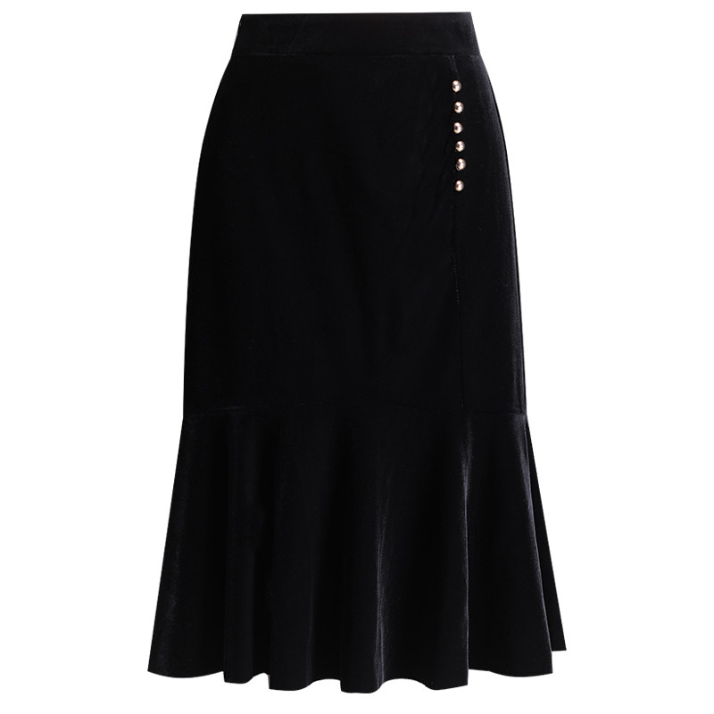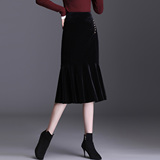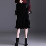 Бархатная демисезонная сексуальная длинная юбка, рыбий хвост, с акцентом на бедрах, длина миди