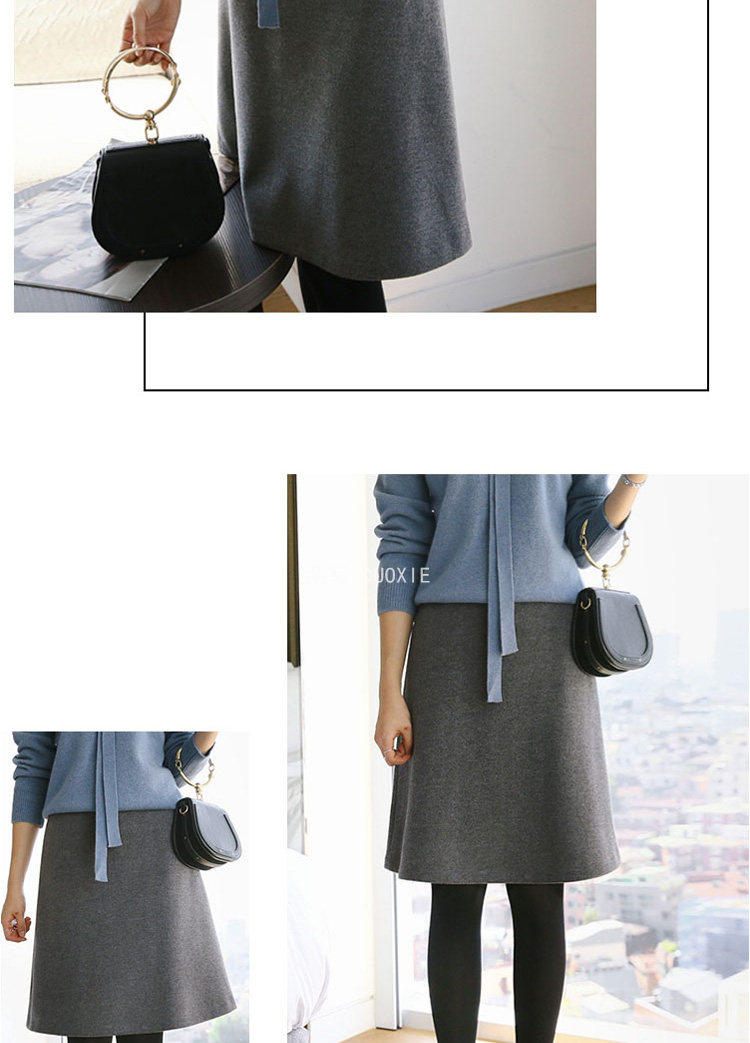 Шерстяная демисезонная юбка, поясная сумка, высокая талия