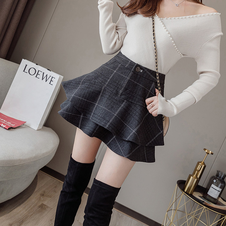 Шерстяная мини-юбка, демисезонная юбка, свитер, А-силуэт, подходит для подростков, с акцентом на бедрах