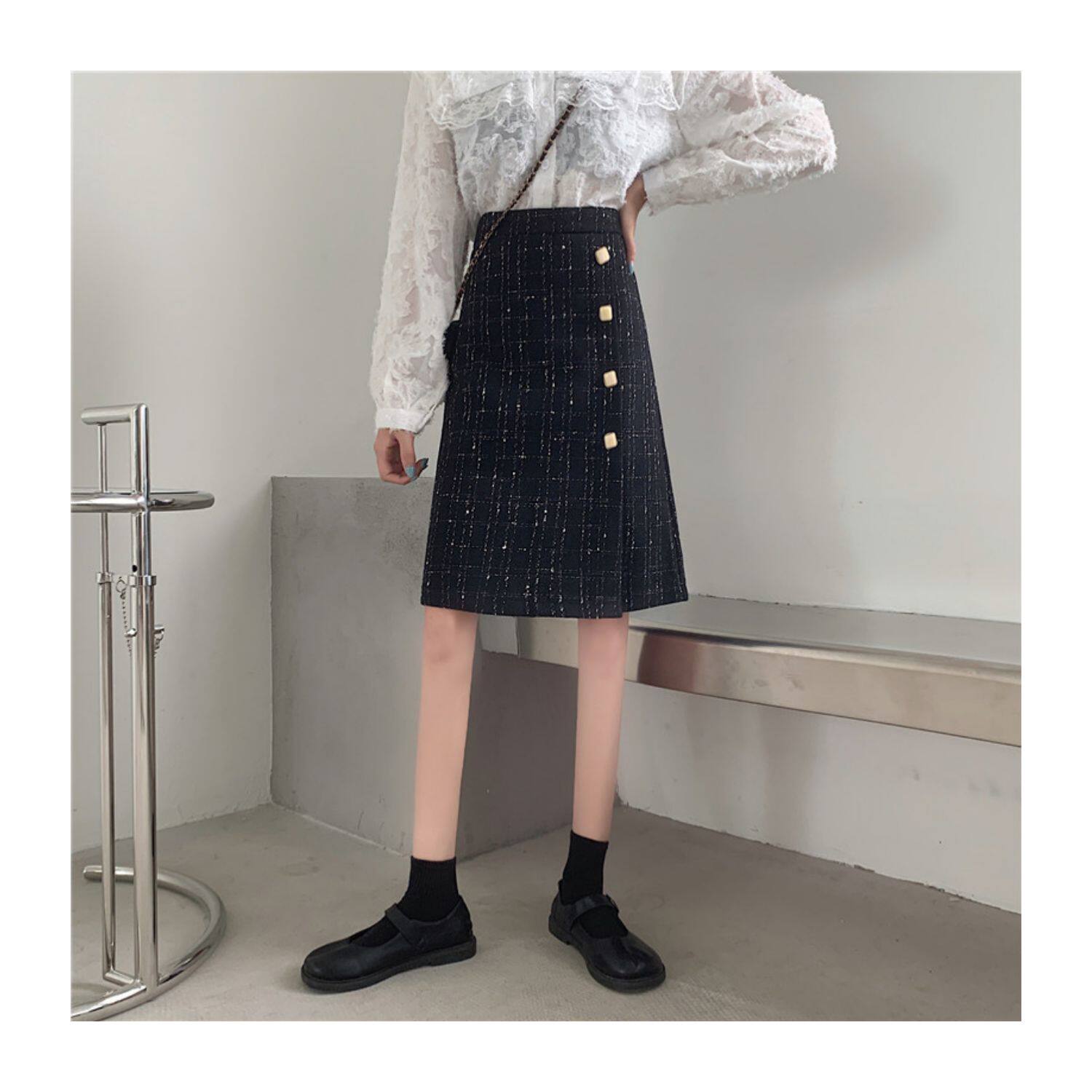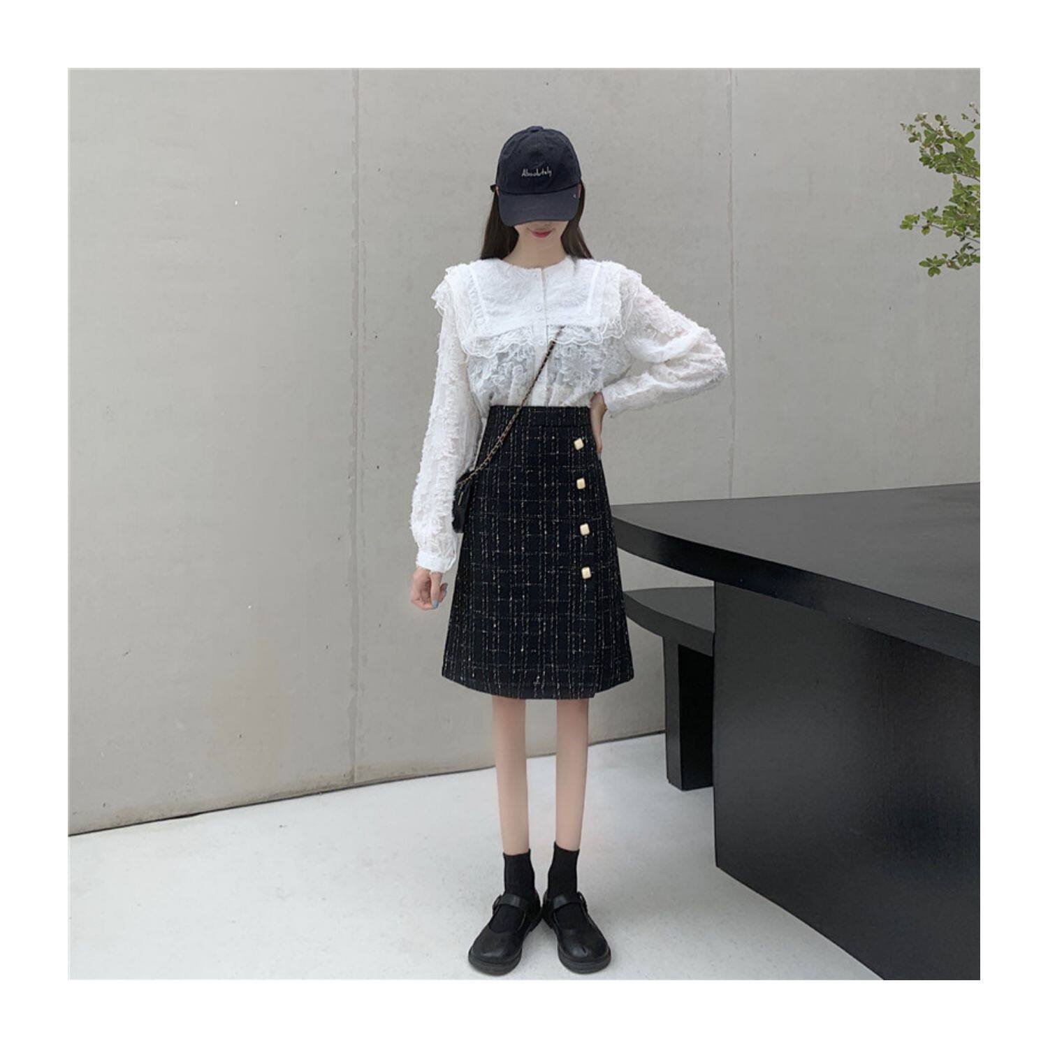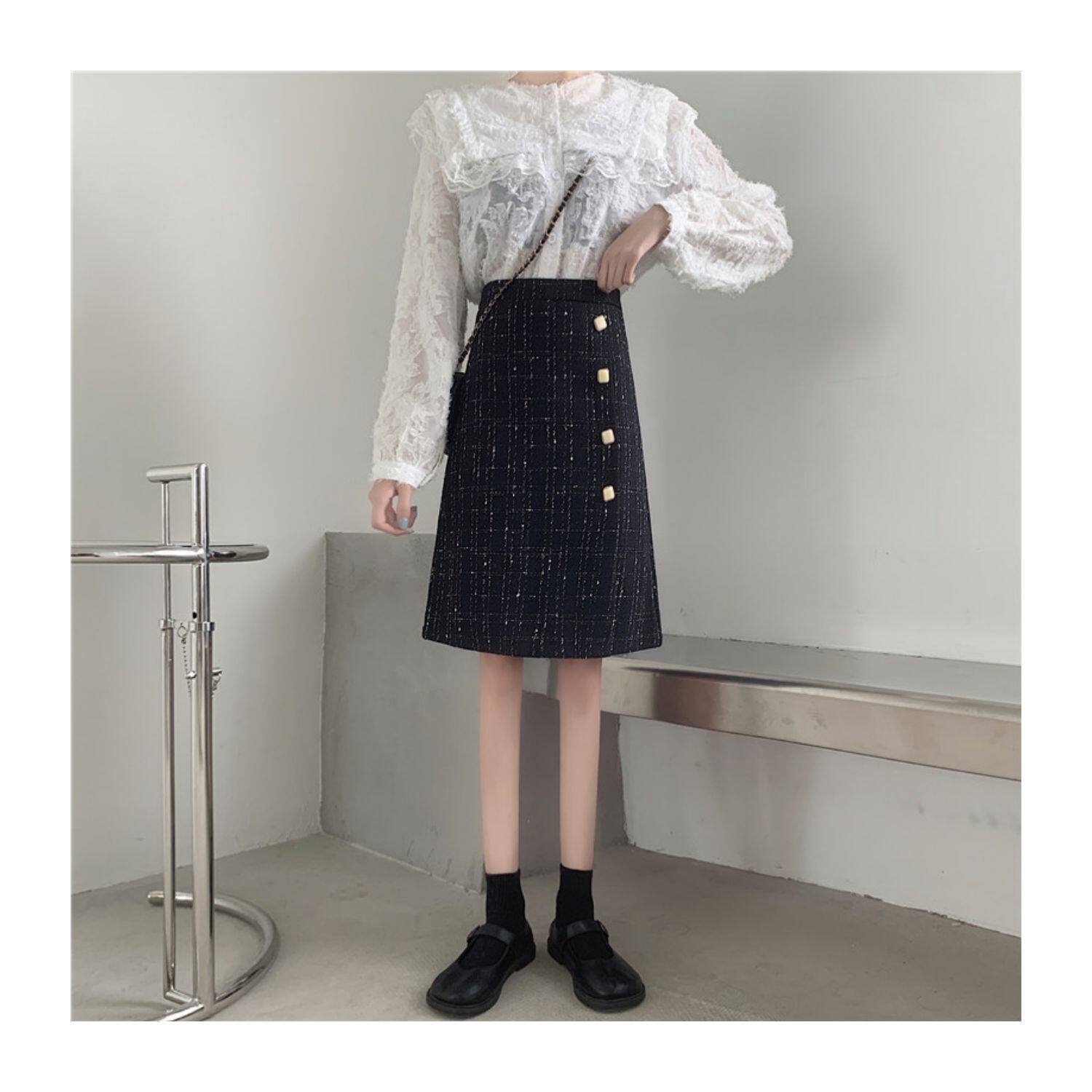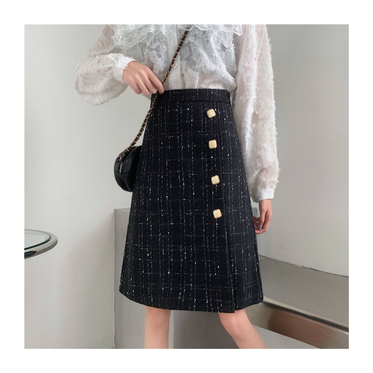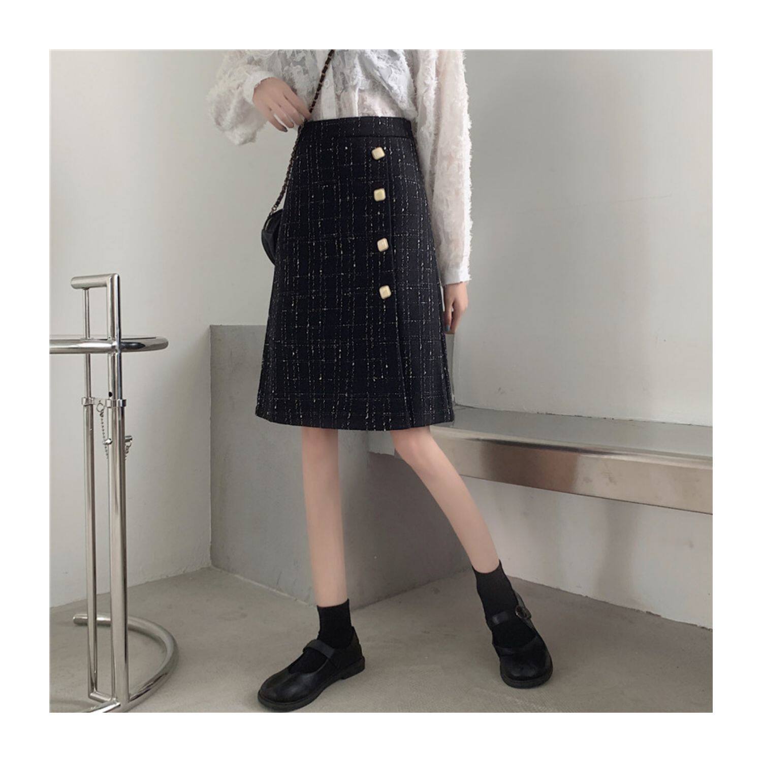 Шерстяная брендовая мини-юбка, длинная юбка, большой размер, высокая талия, А-силуэт, средней длины
