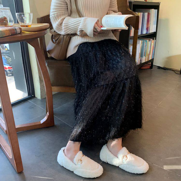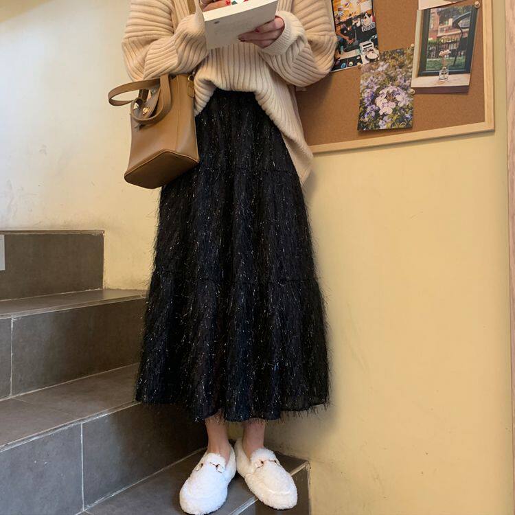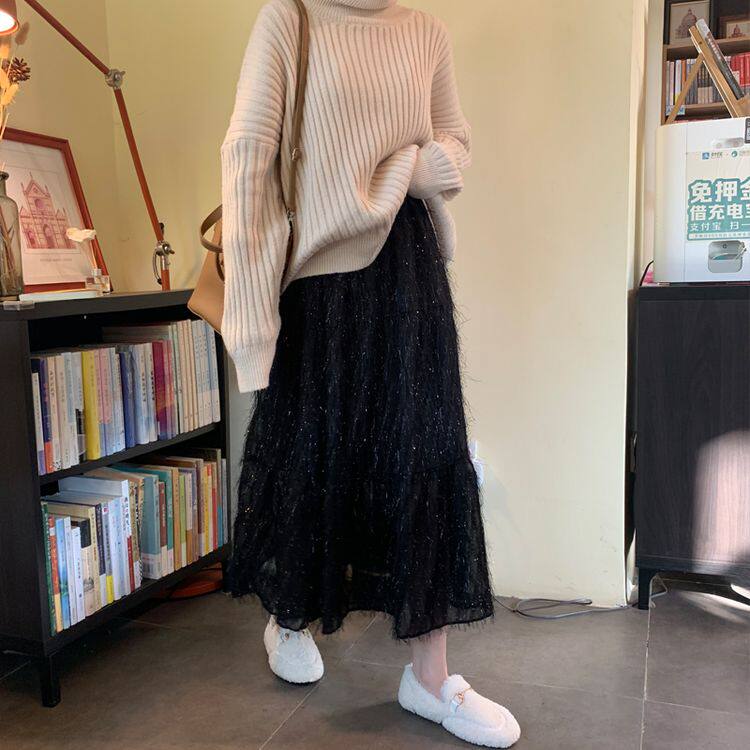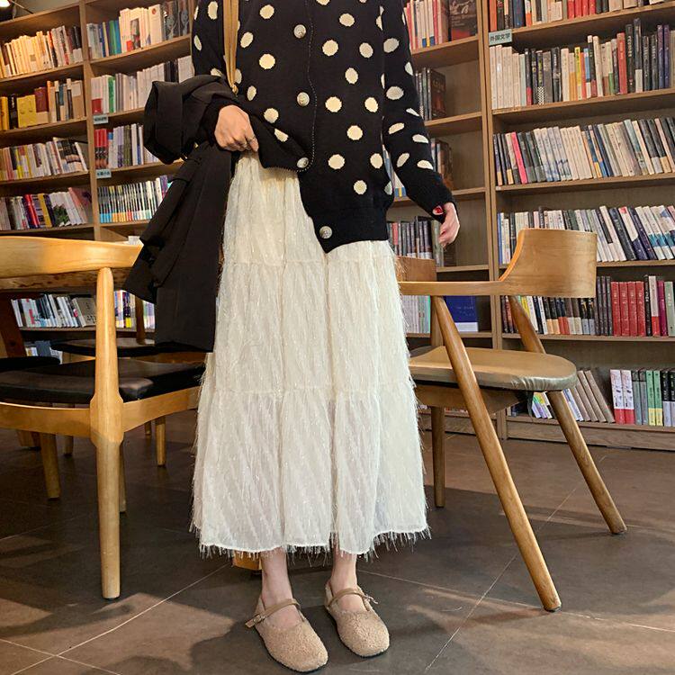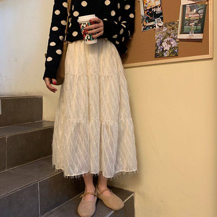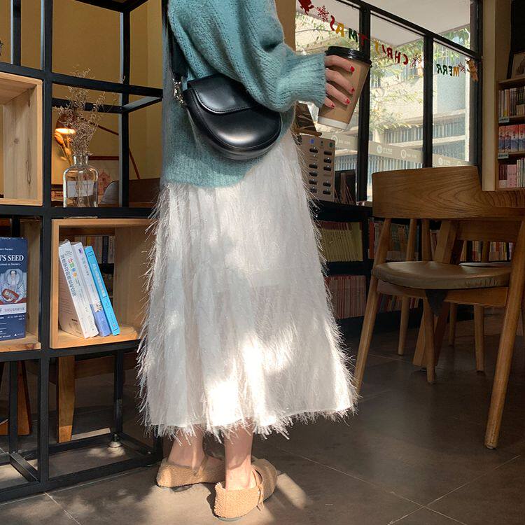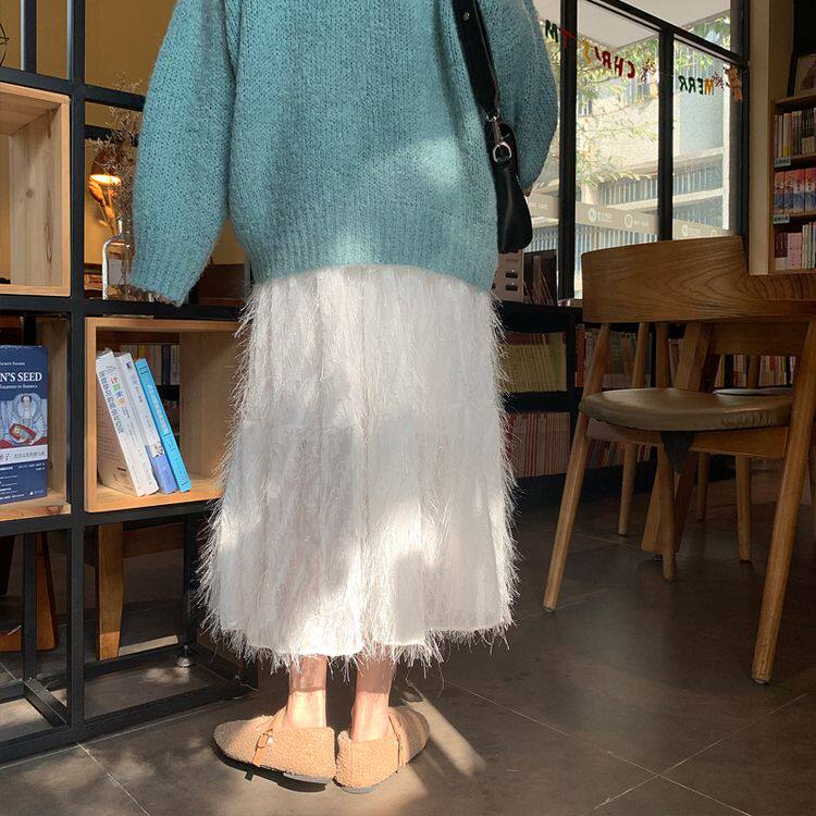 Белый длинный осенний свитер, длинная юбка, А-силуэт, длина макси