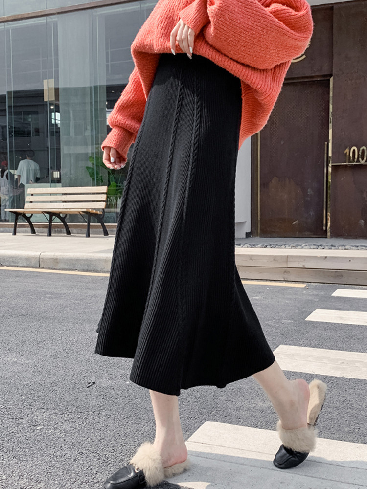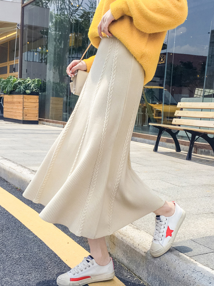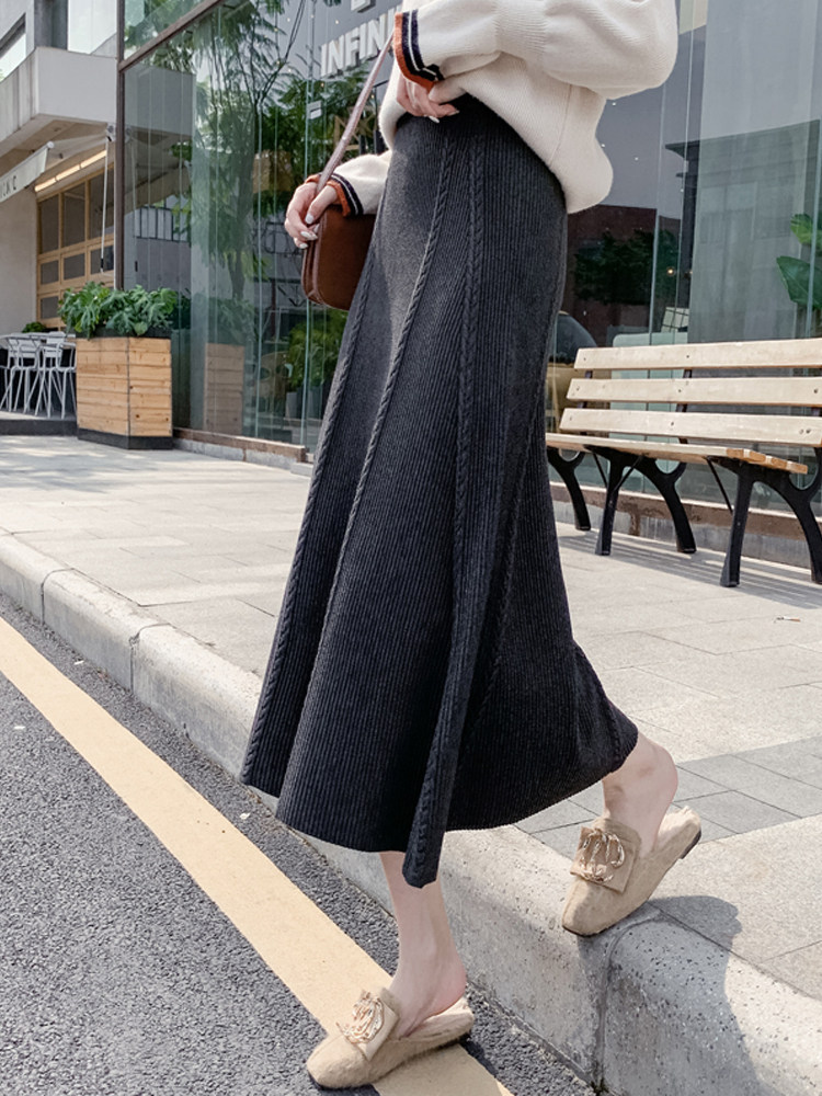 Трикотажная демисезонная длинная шерстяная юбка, высокая талия, А-силуэт, коллекция 2023, в корейском стиле