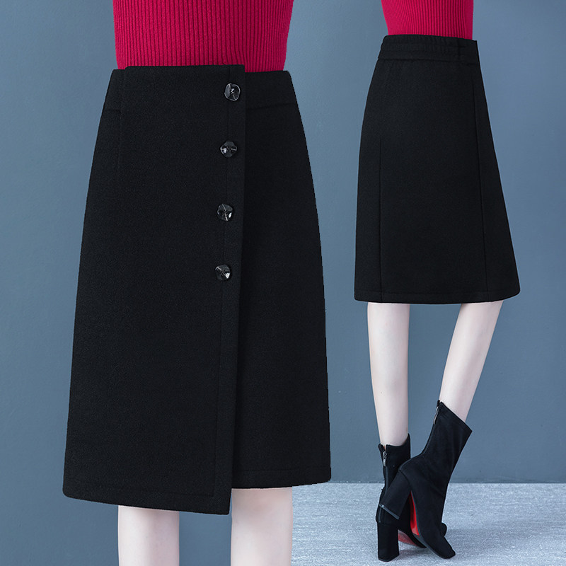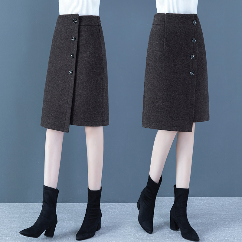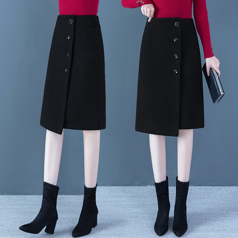 Шерстяная демисезонная длинная зимняя юбка, 2020, А-силуэт, высокая талия, увеличенная толщина, с акцентом на бедрах