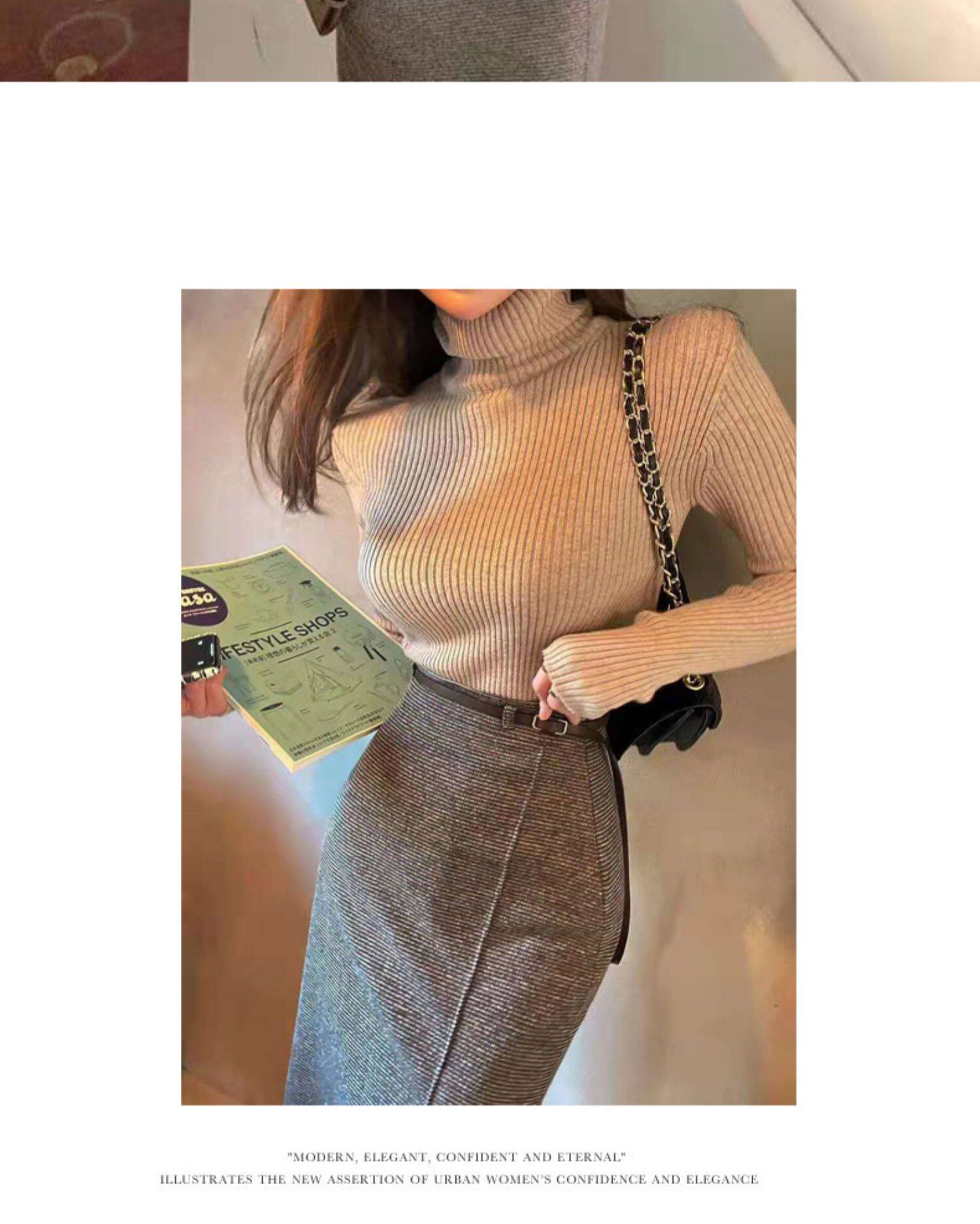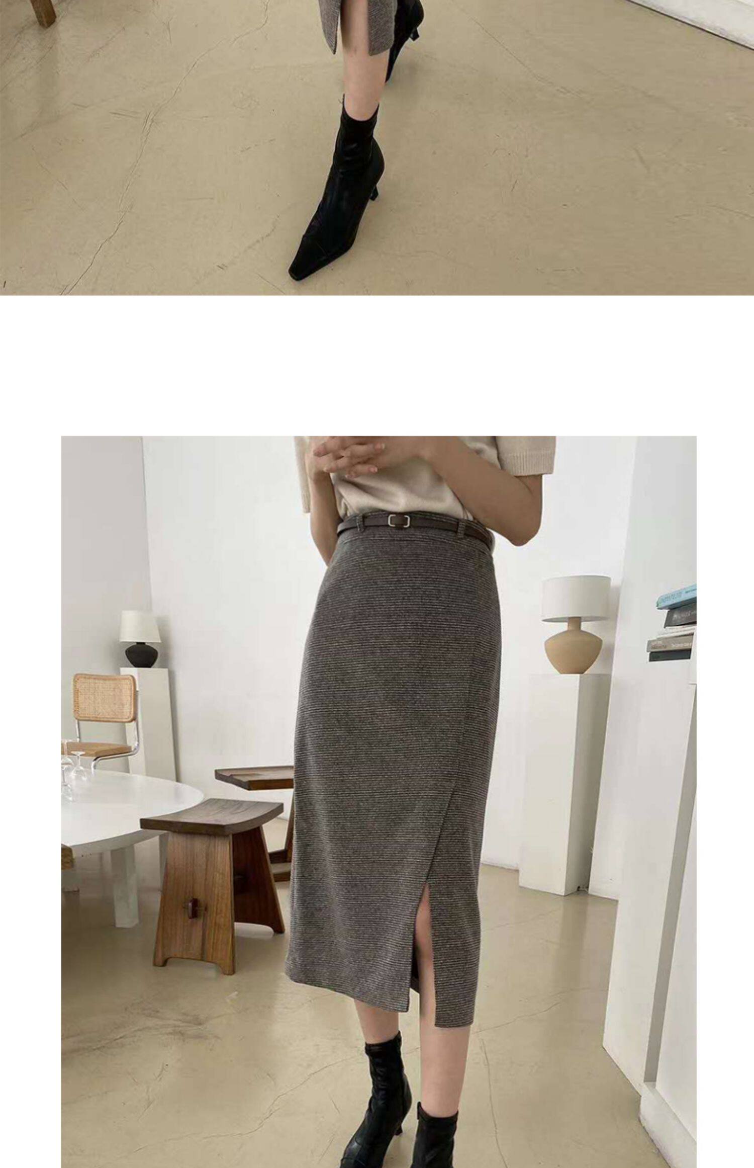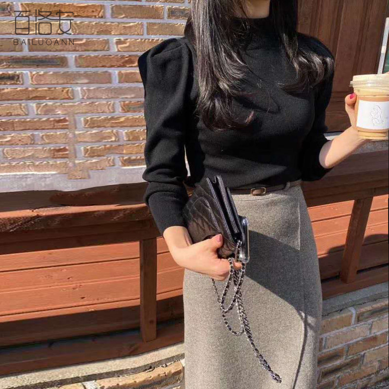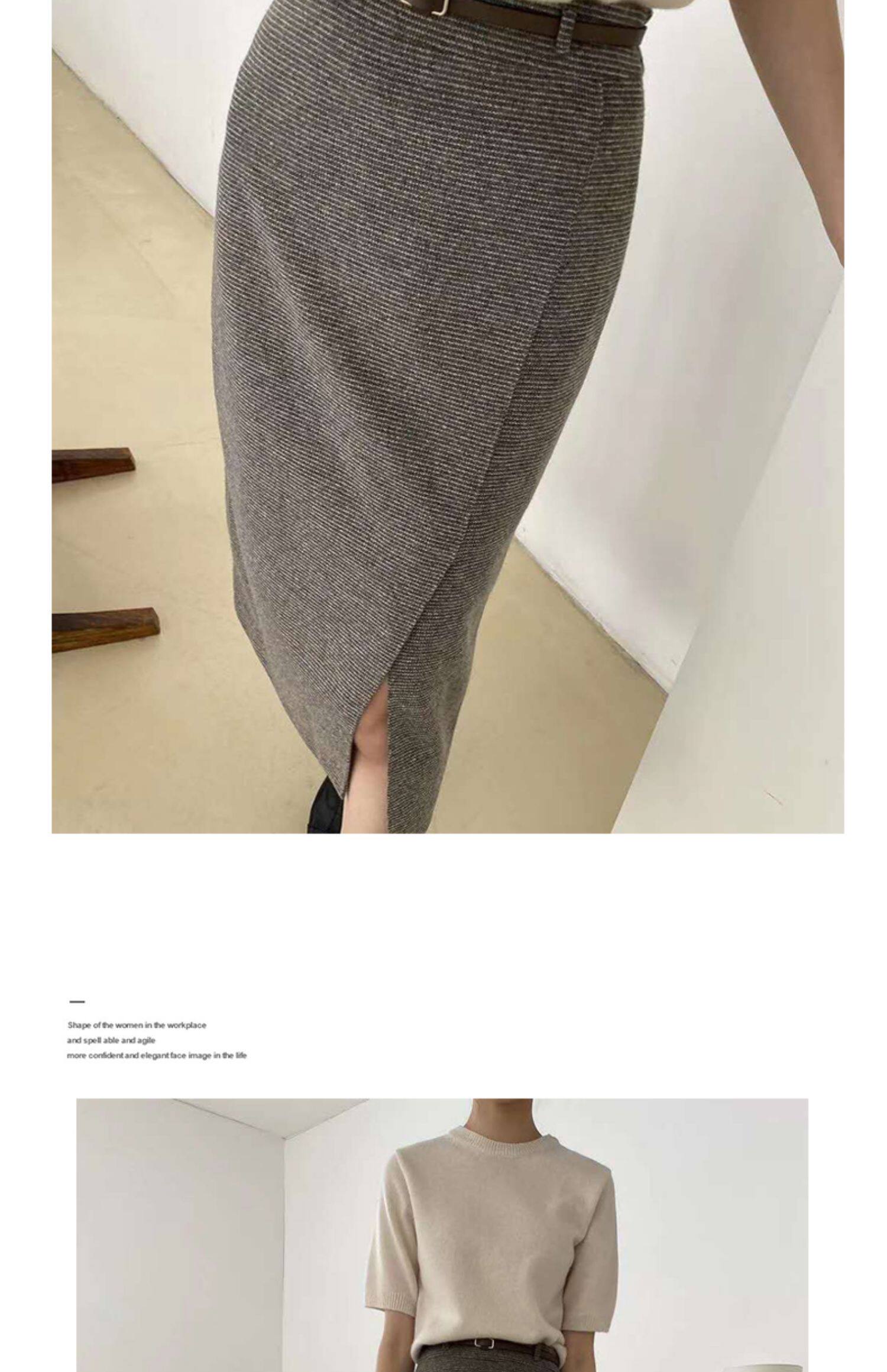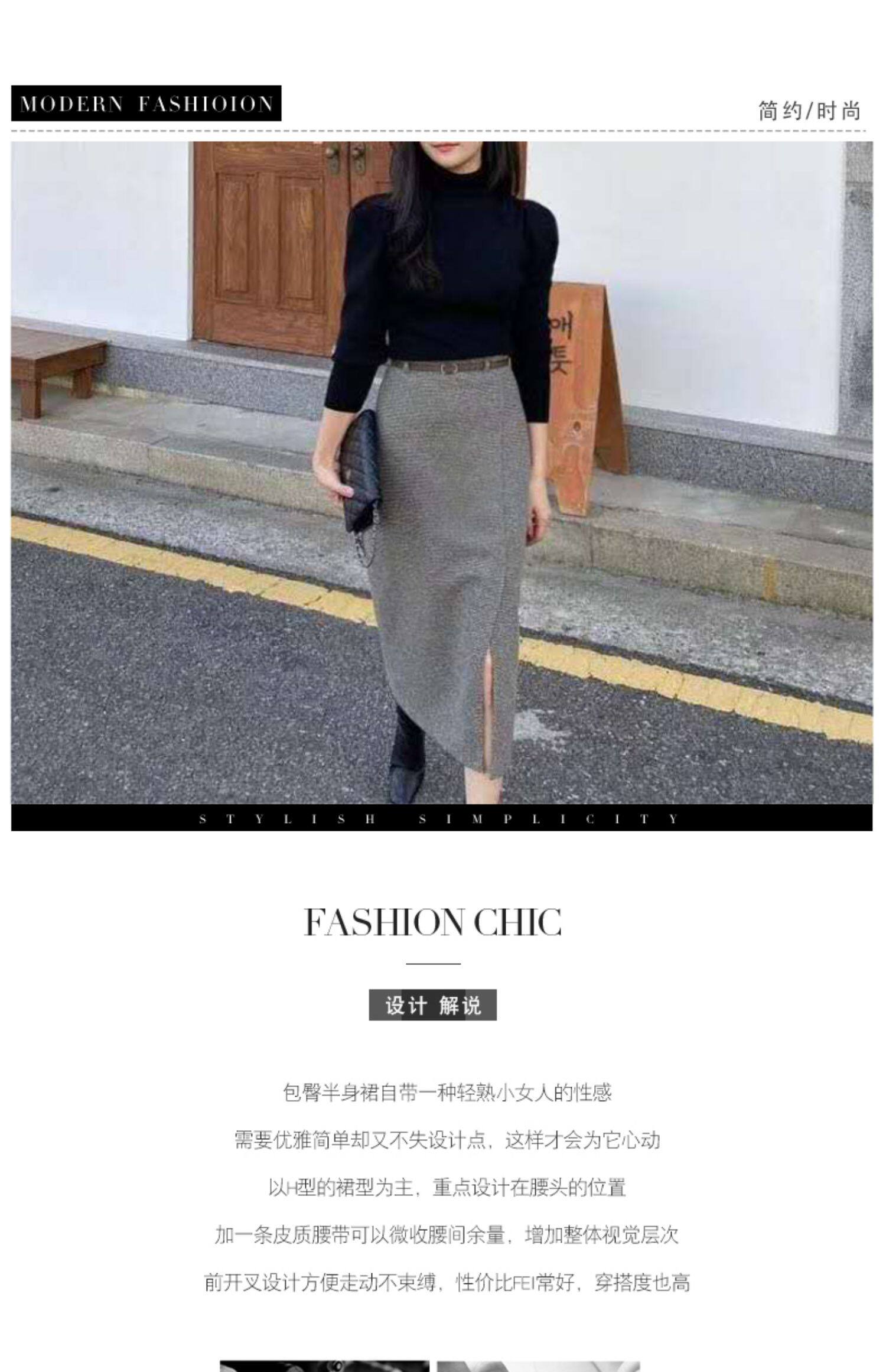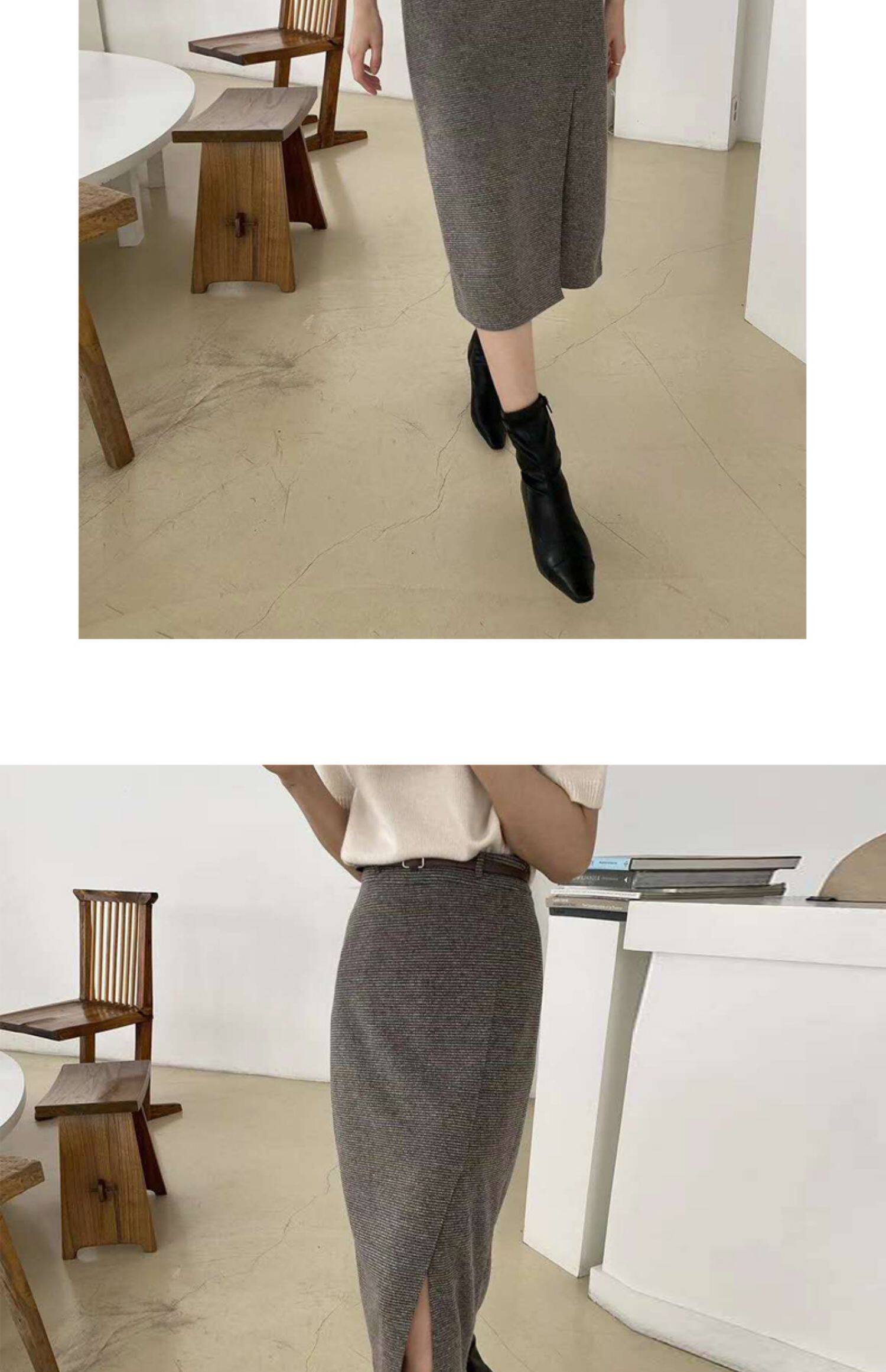 百洛安 Клетчатая поясная сумка, шерстяная длинная юбка, высокая талия, городской стиль, средней длины