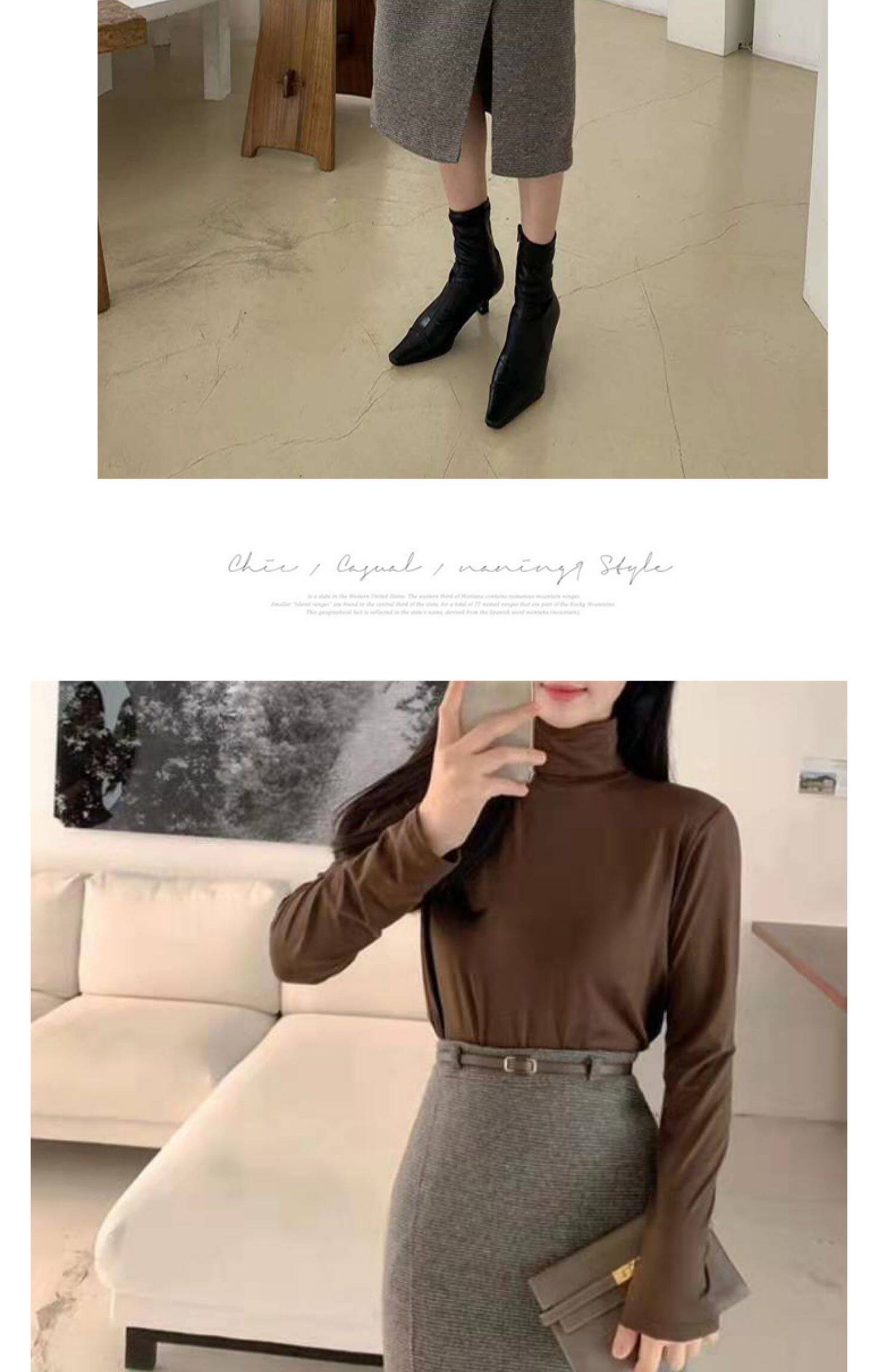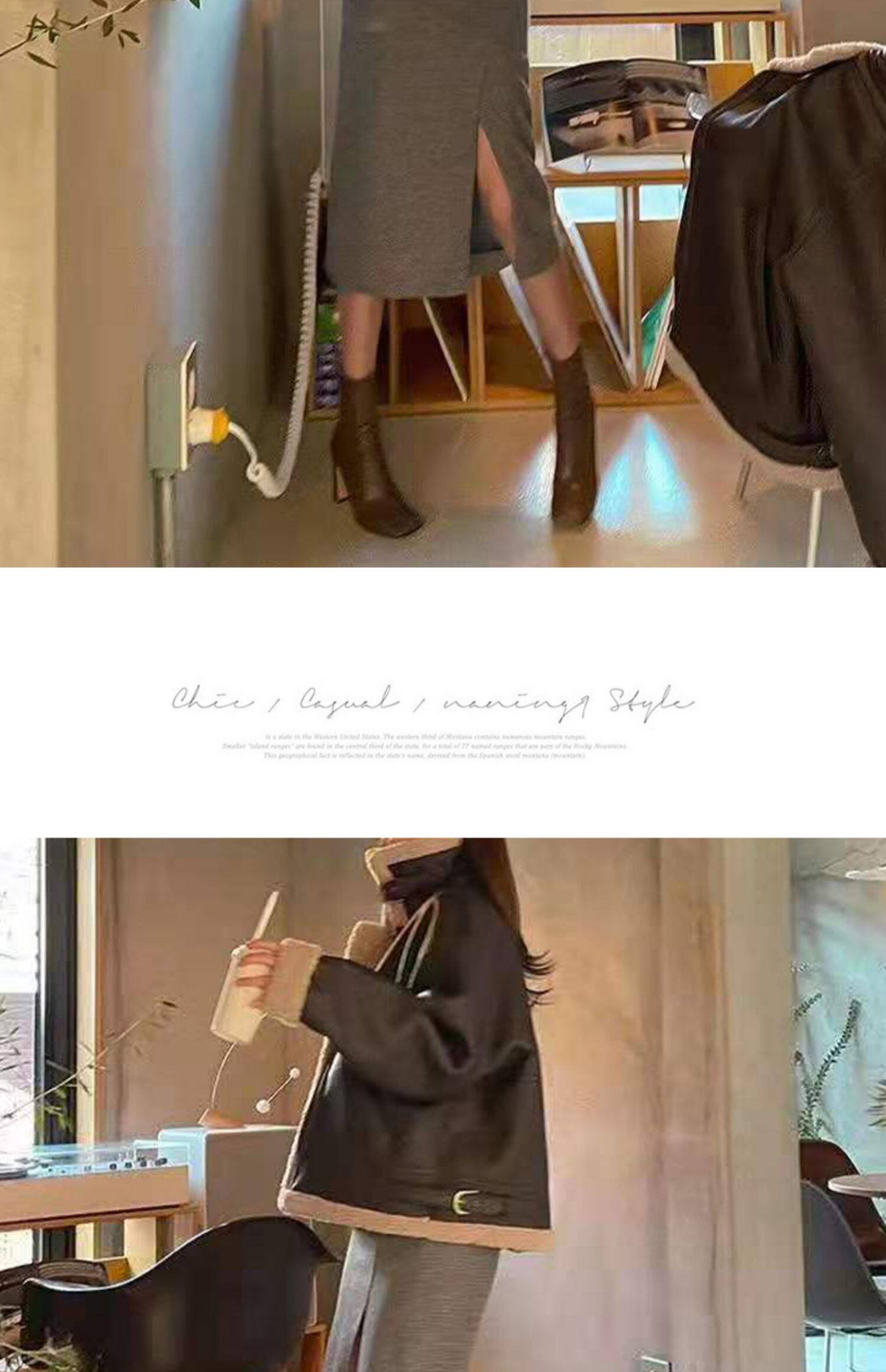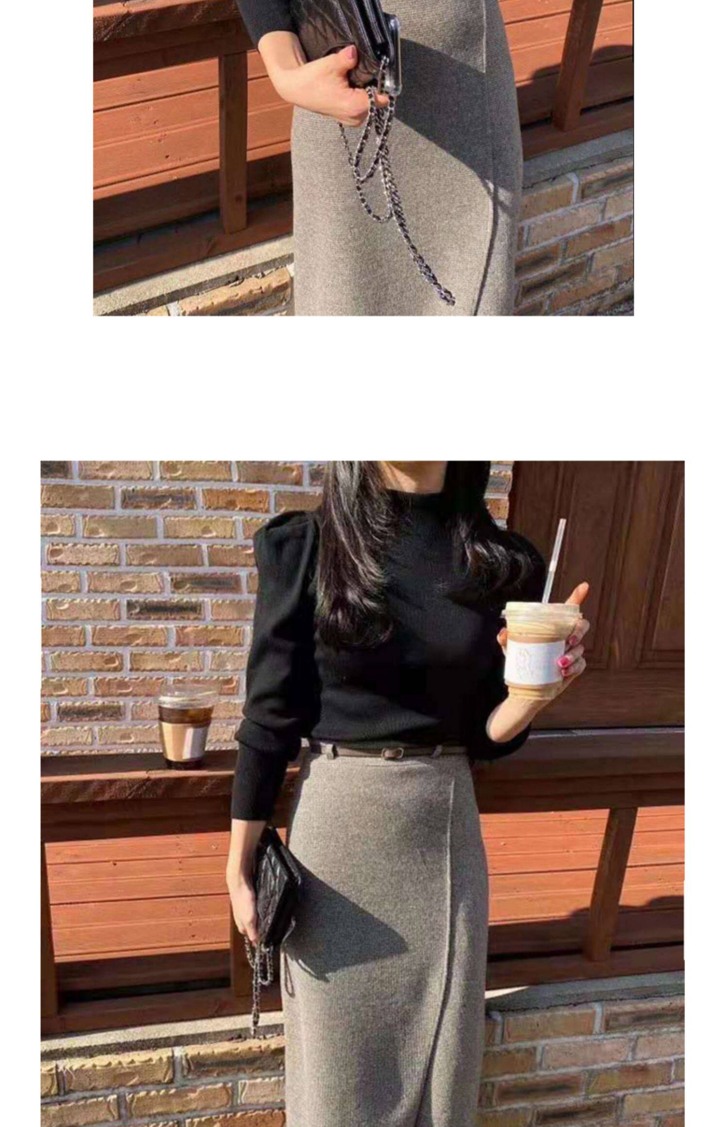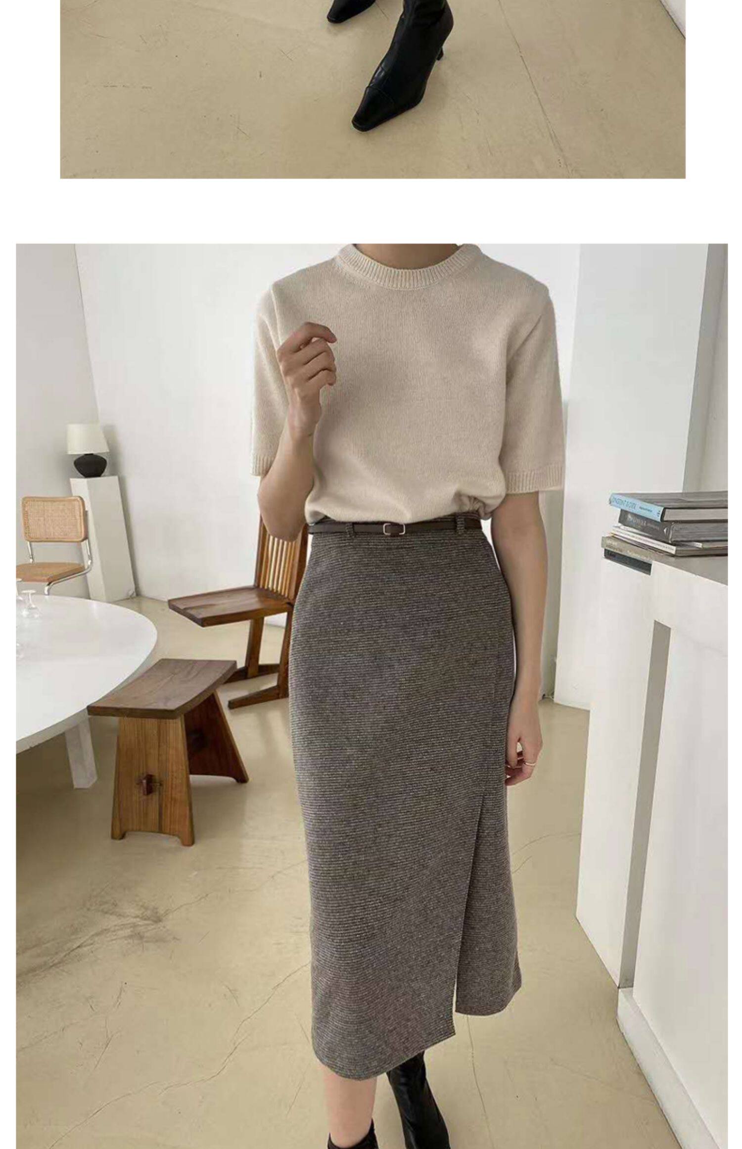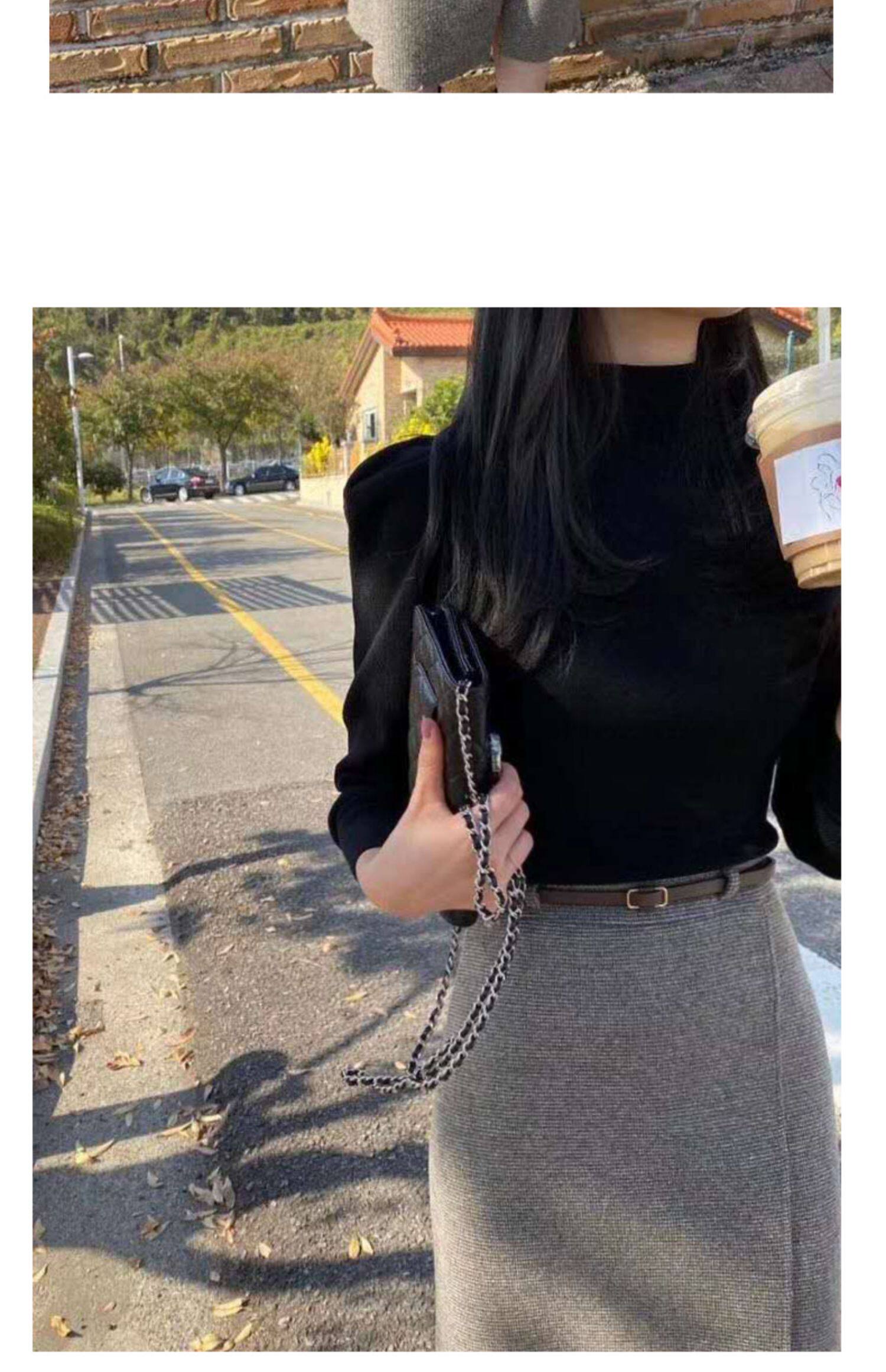 百洛安 Клетчатая поясная сумка, шерстяная длинная юбка, высокая талия, городской стиль, средней длины