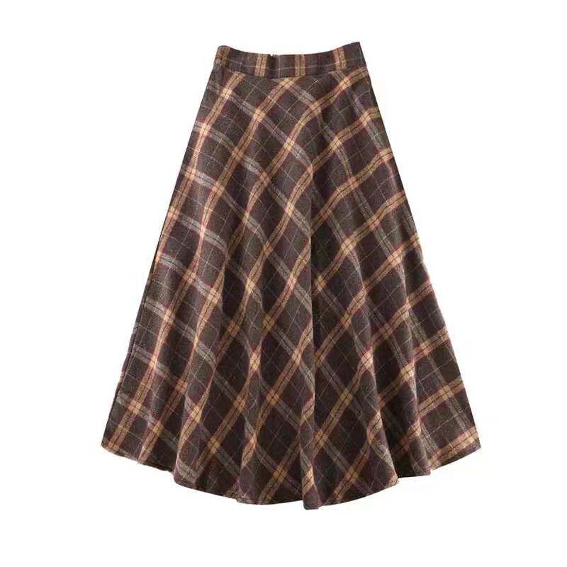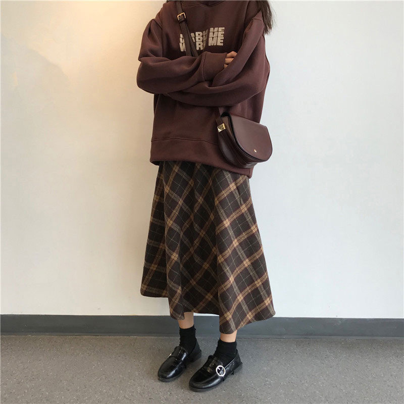 Клетчатая длинная демисезонная шерстяная юбка, средней длины, японские и корейские, оверсайз, высокая талия, длина макси