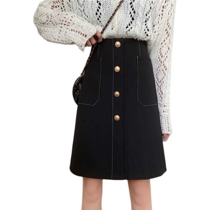 Демисезонная юбка, высокая талия, 2020, большой размер, длина миди, с акцентом на бедрах, А-силуэт