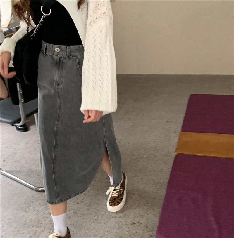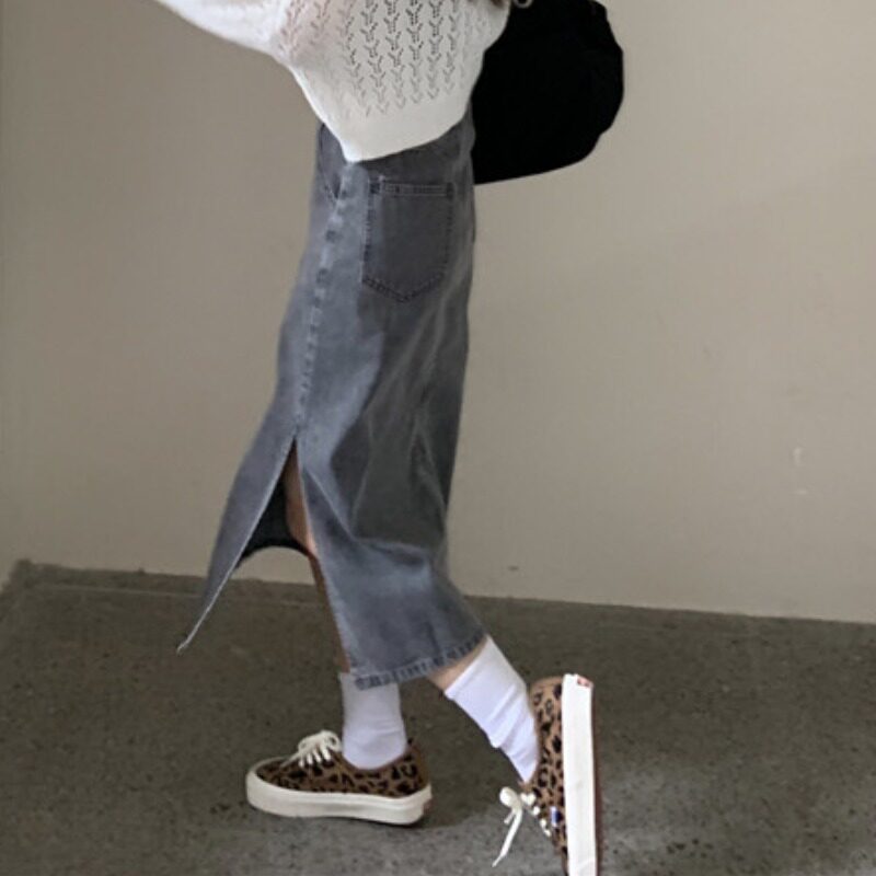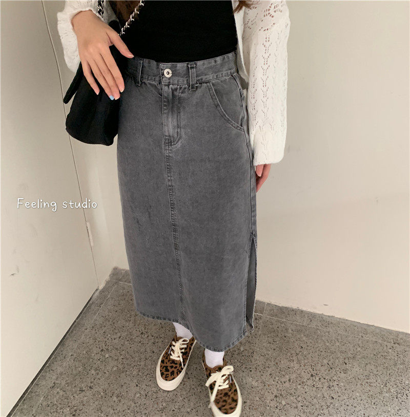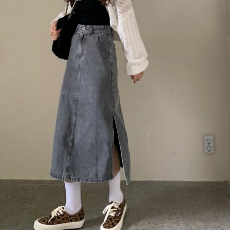 Осенняя джинсовая юбка, длинная длинная юбка для школьников и студентов, высокая талия, в корейском стиле, большой размер, А-силуэт