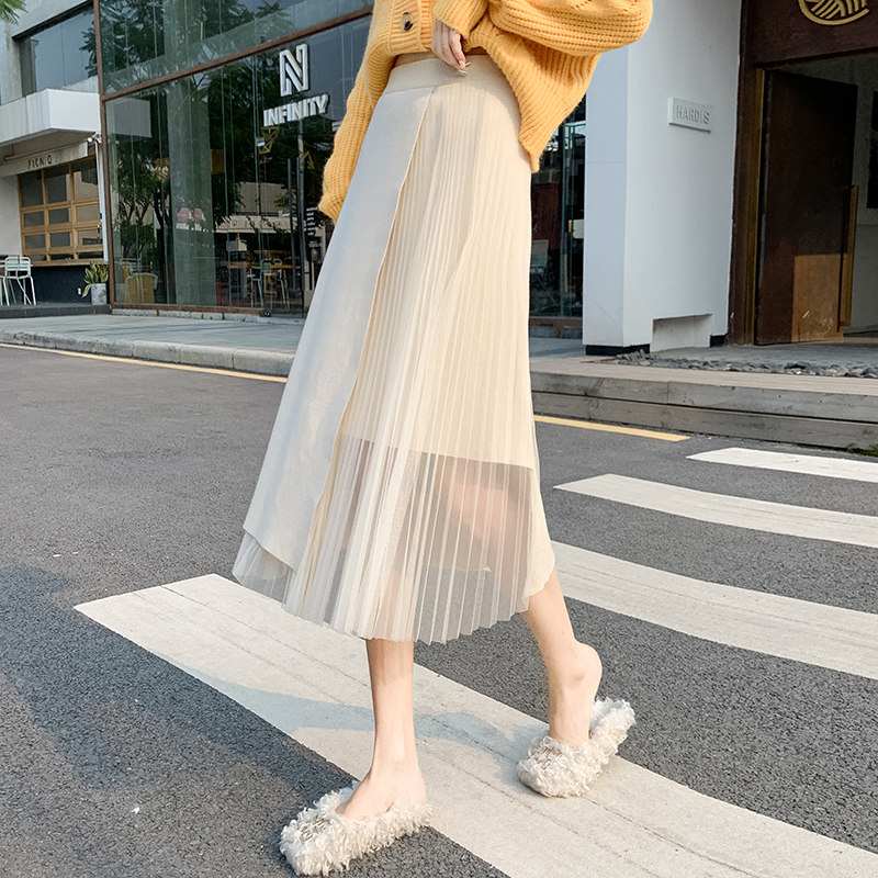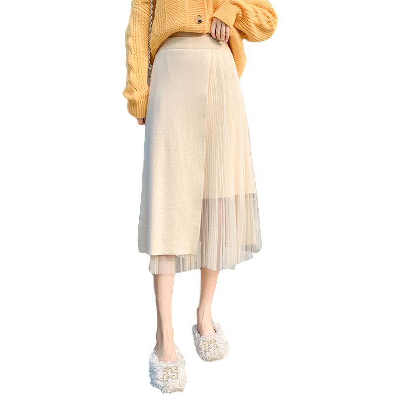 Трикотажный демисезонный шерстяной свитер, длинная юбка, коллекция 2023, А-силуэт, средней длины