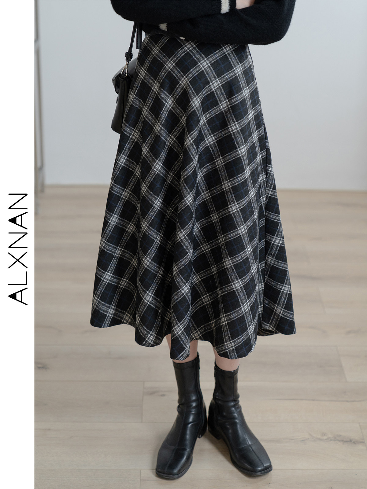 Черная цветная клетчатая демисезонная ретро длинная юбка, высокая талия, А-силуэт, средней длины