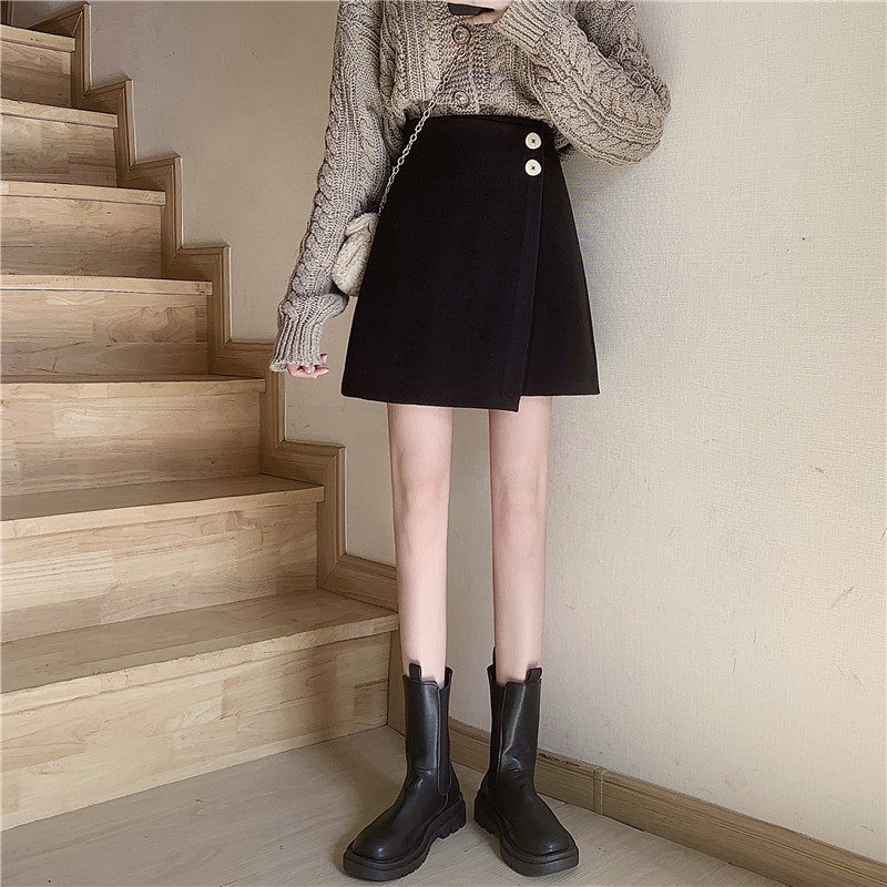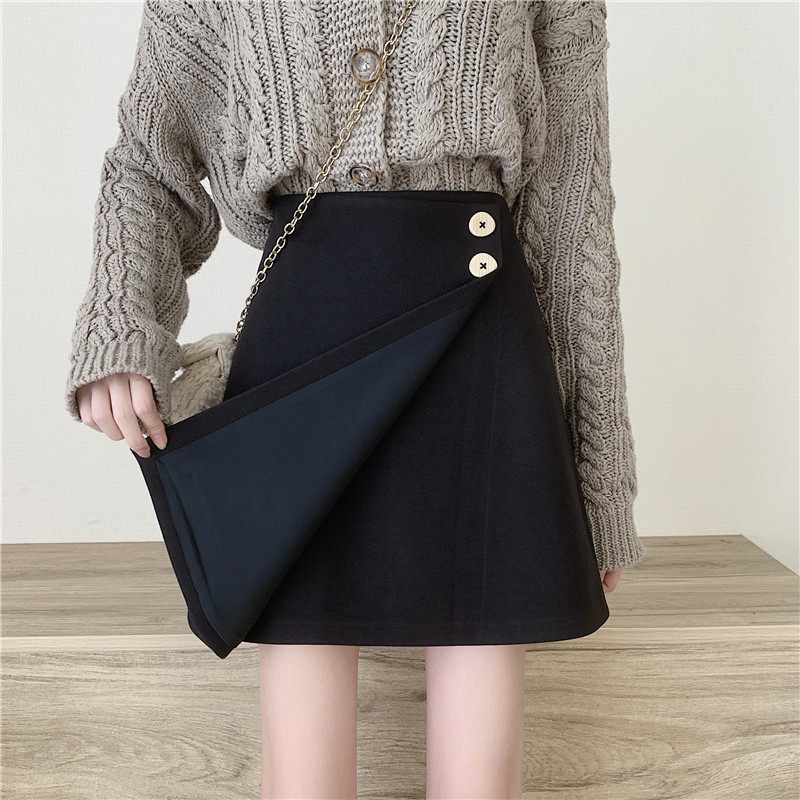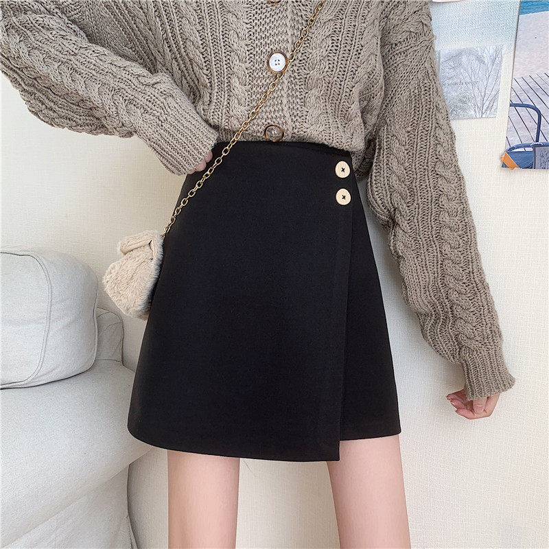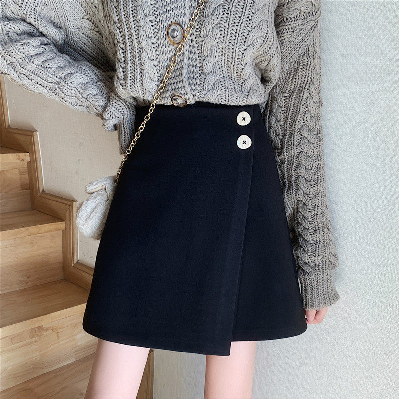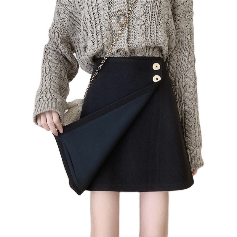 Шерстяная демисезонная юбка, приталенная мини-юбка, большой размер, 2020, высокая талия, с акцентом на бедрах, А-силуэт