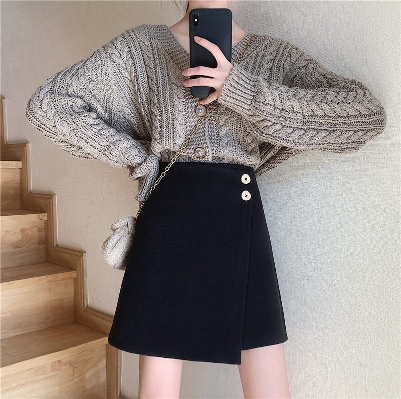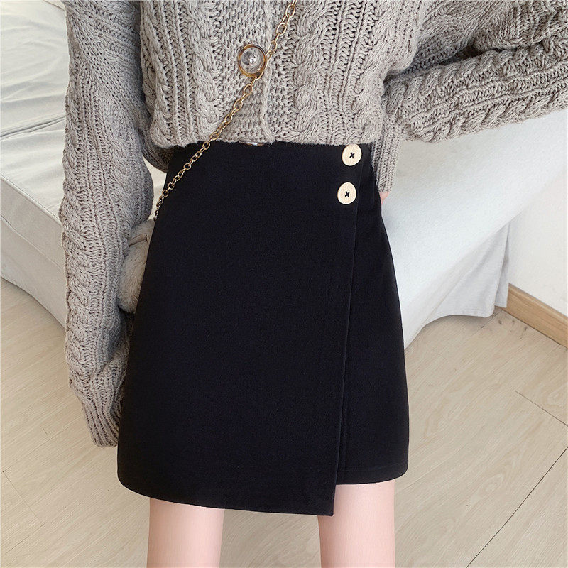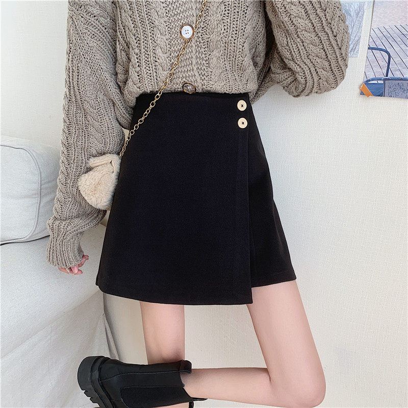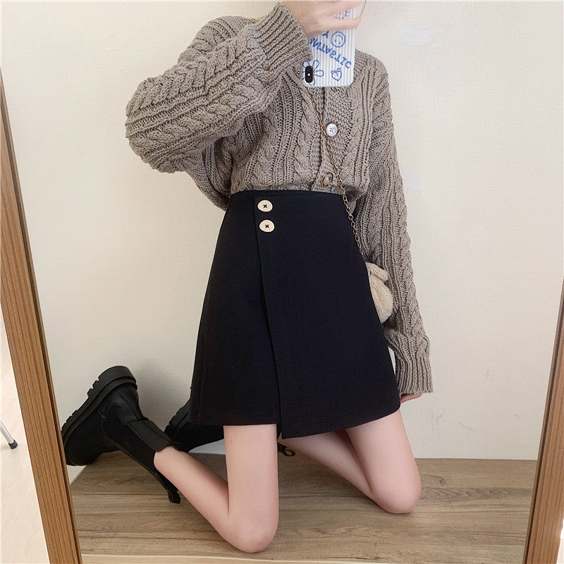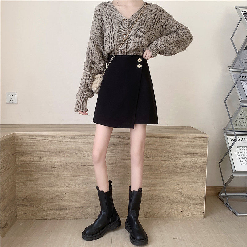 Шерстяная демисезонная юбка, приталенная мини-юбка, большой размер, 2020, высокая талия, с акцентом на бедрах, А-силуэт