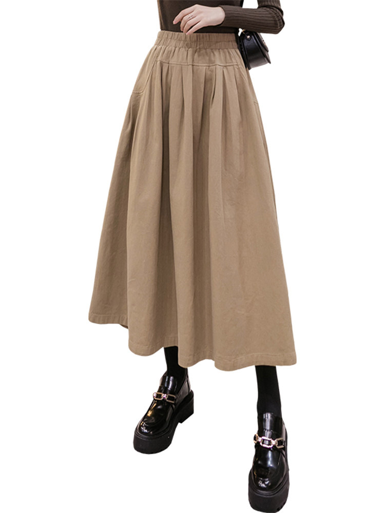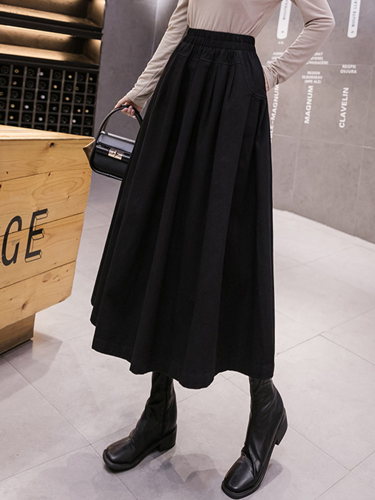Демисезонная японская длинная юбка в складку, высокая талия