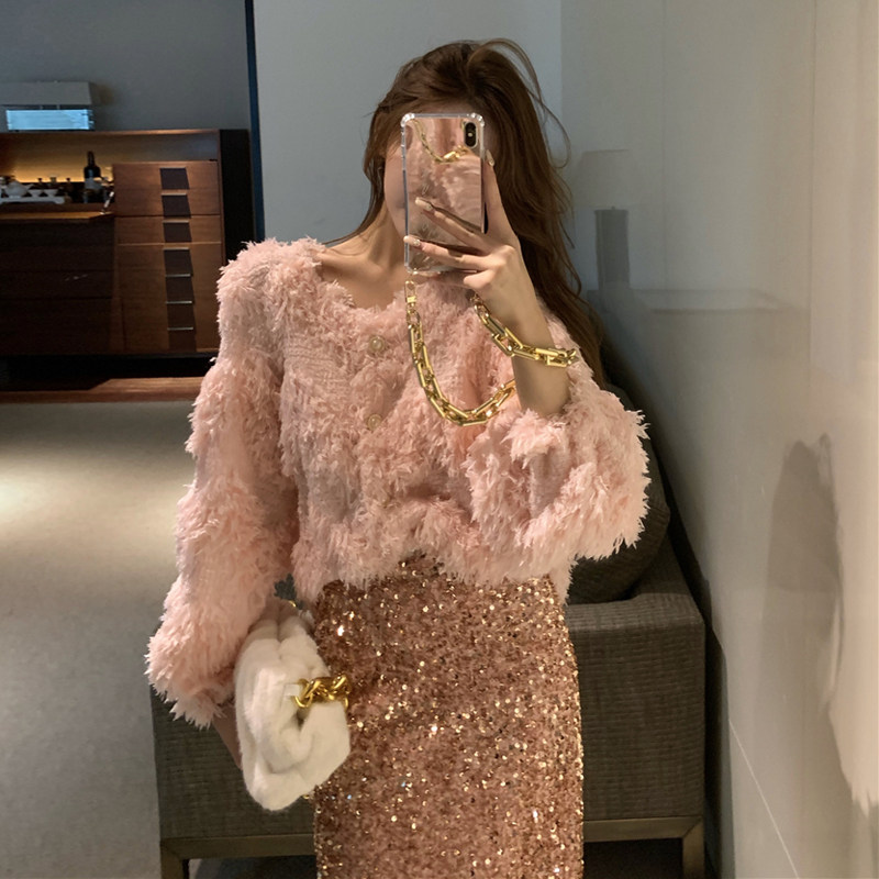 Осенние блестки для ногтей, розовая цветная приталенная длинная юбка, 2021 года, новая коллекция, средней длины, яркий броский стиль, с акцентом на бедрах