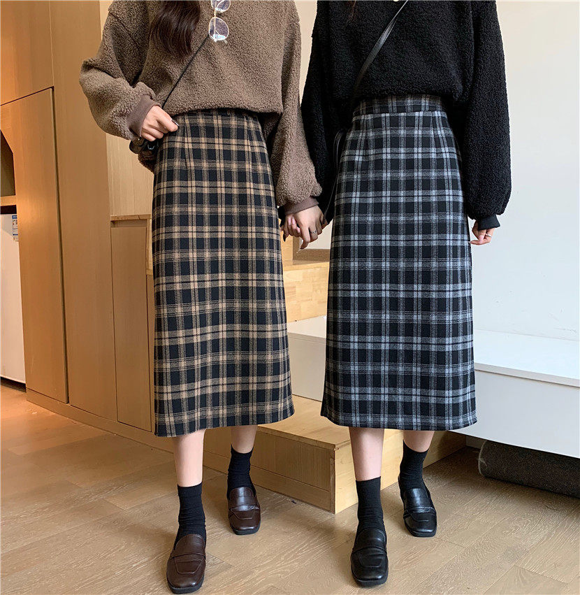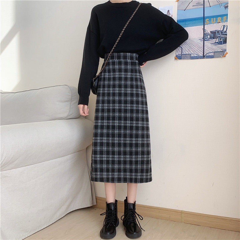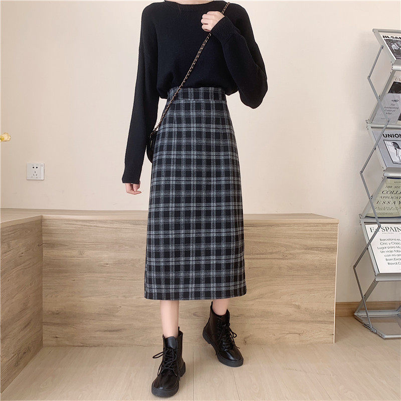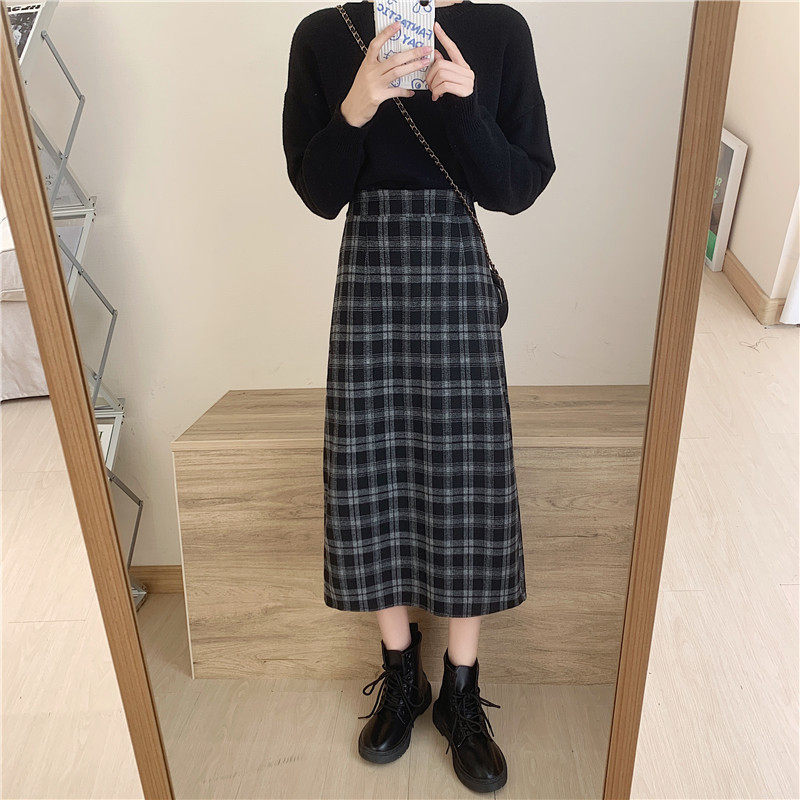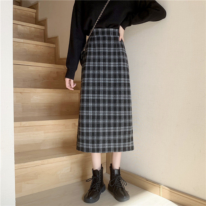 Шерстяная клетчатая демисезонная длинная юбка для школьников и студентов, большой размер, средней длины, с акцентом на бедрах, высокая талия, свободный прямой крой
