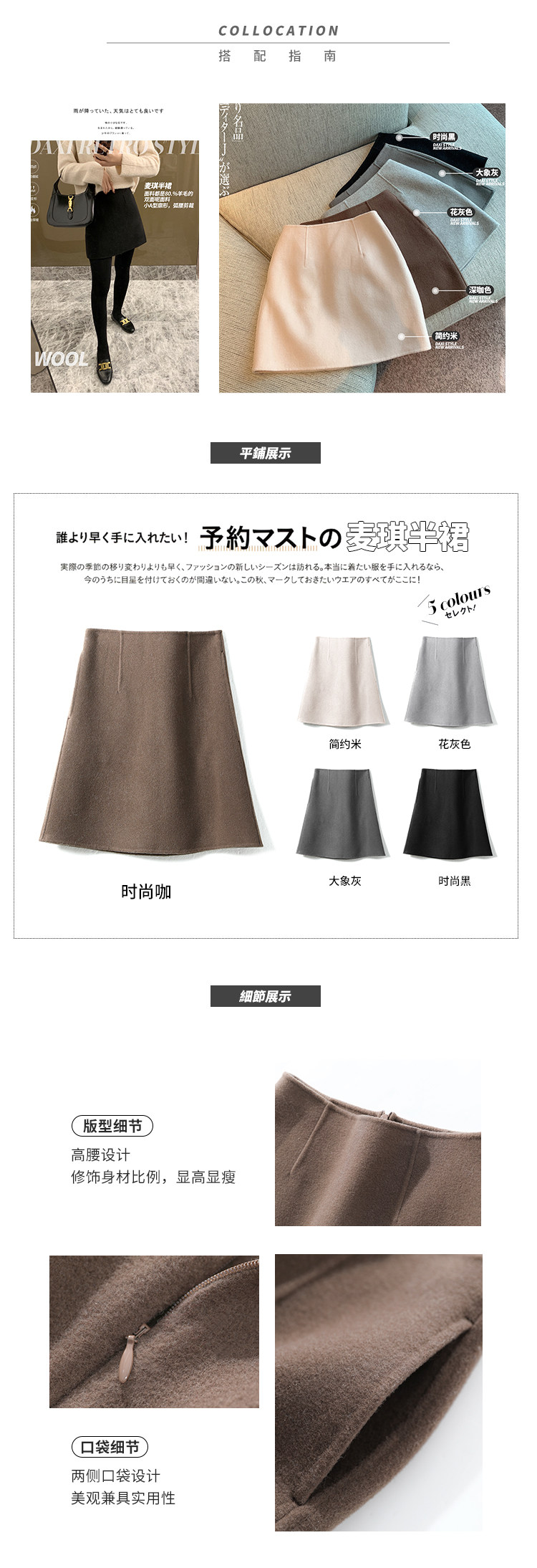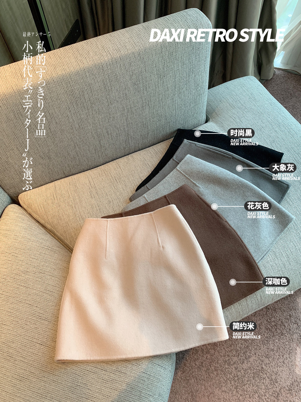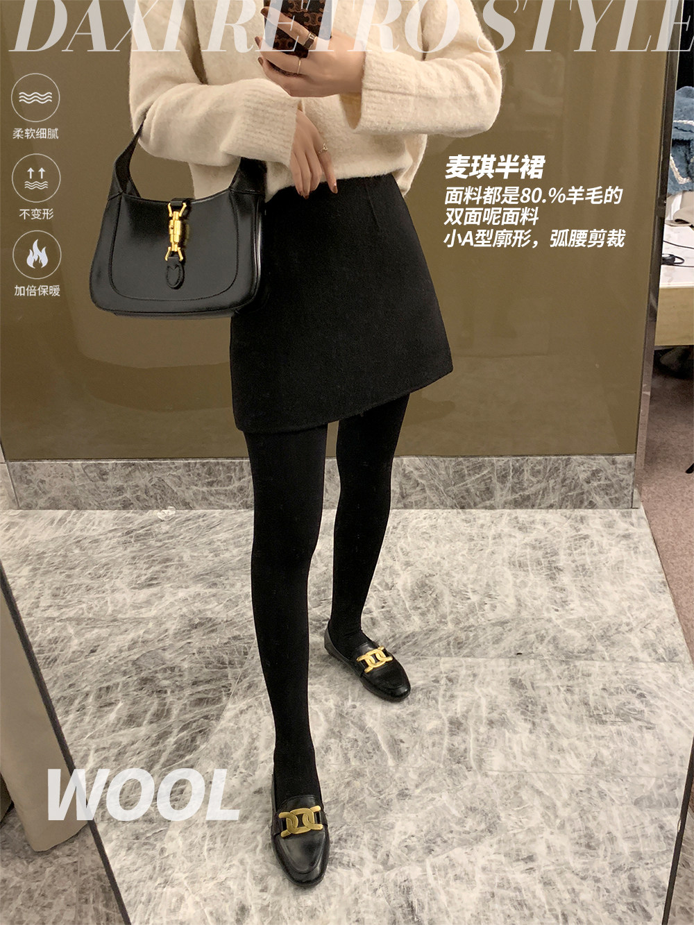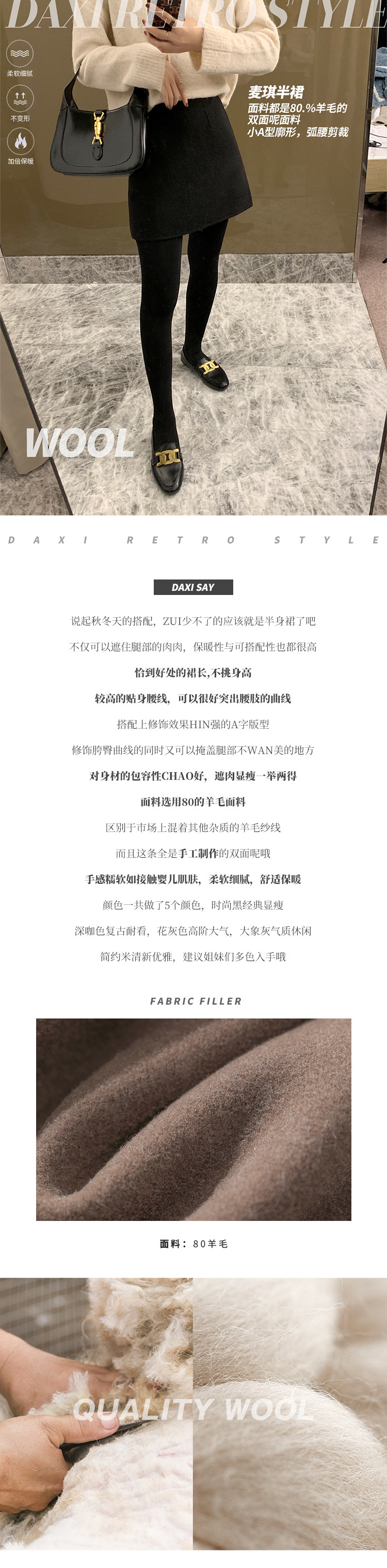 Шерстяная юбка, двусторонная мини-юбка, с акцентом на бедрах, высокая талия