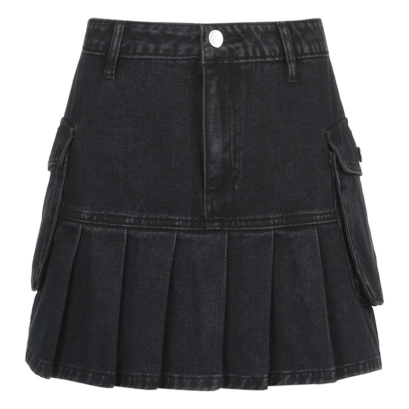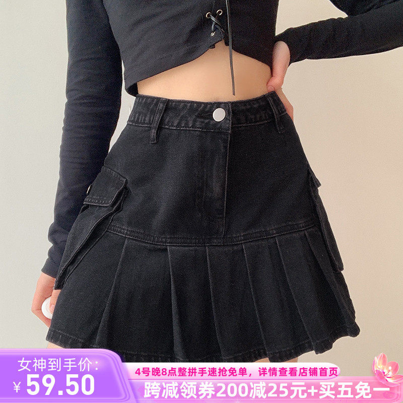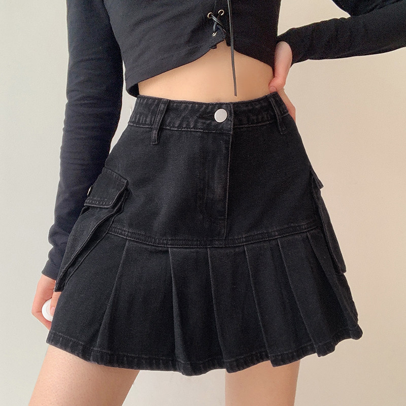 Ретро джинсовая юбка, приталенная юбка в складку, европейский стиль, высокая талия, А-силуэт