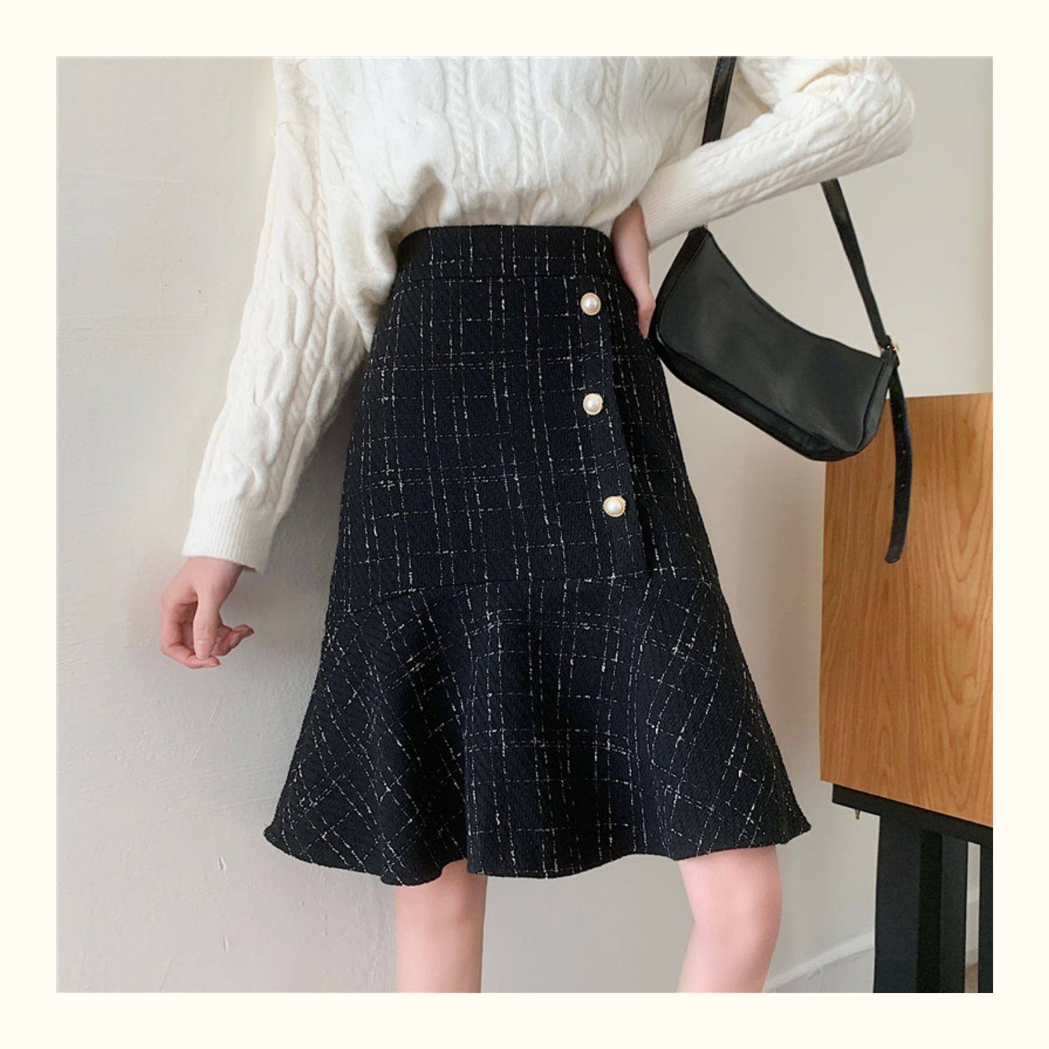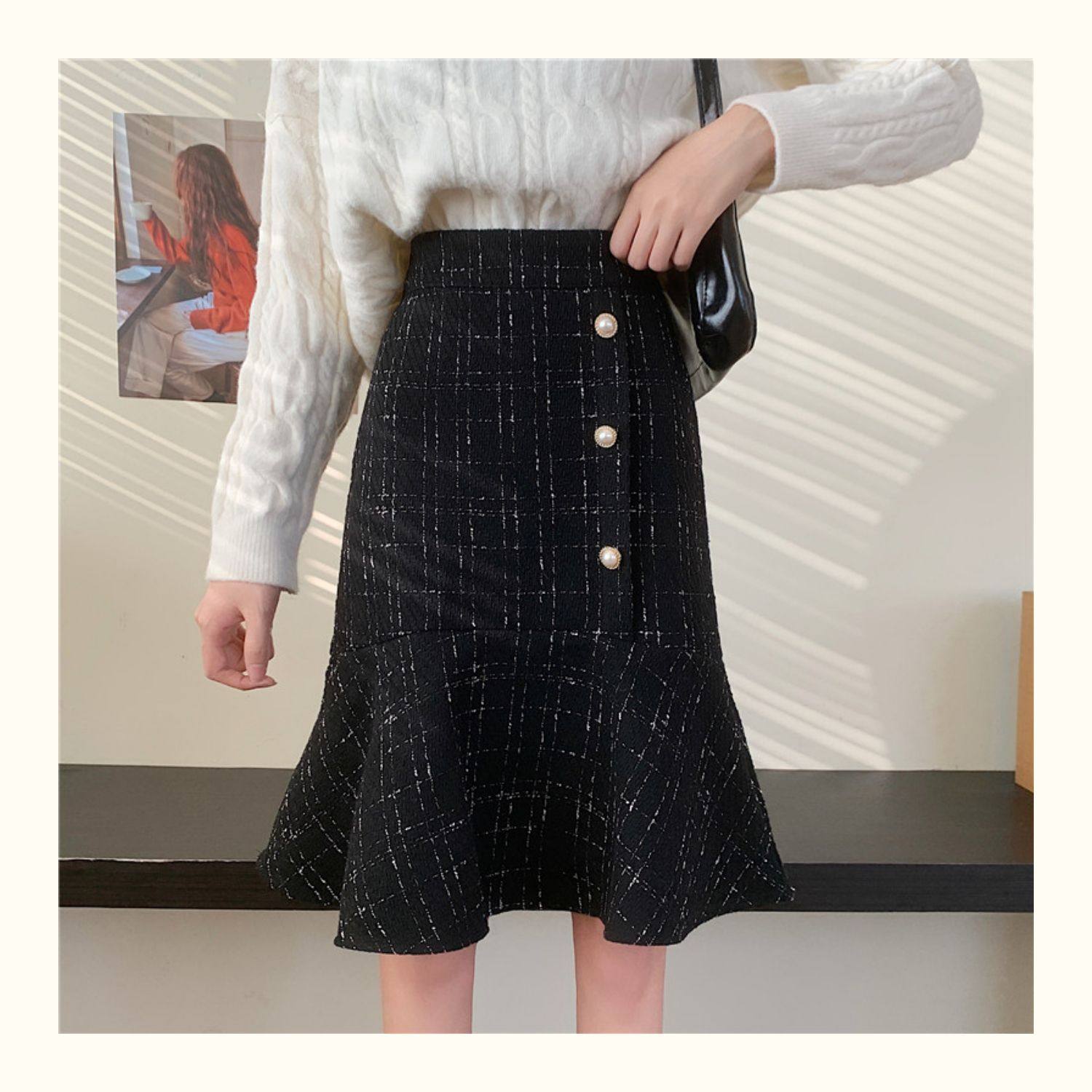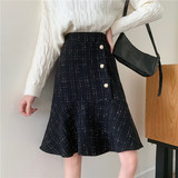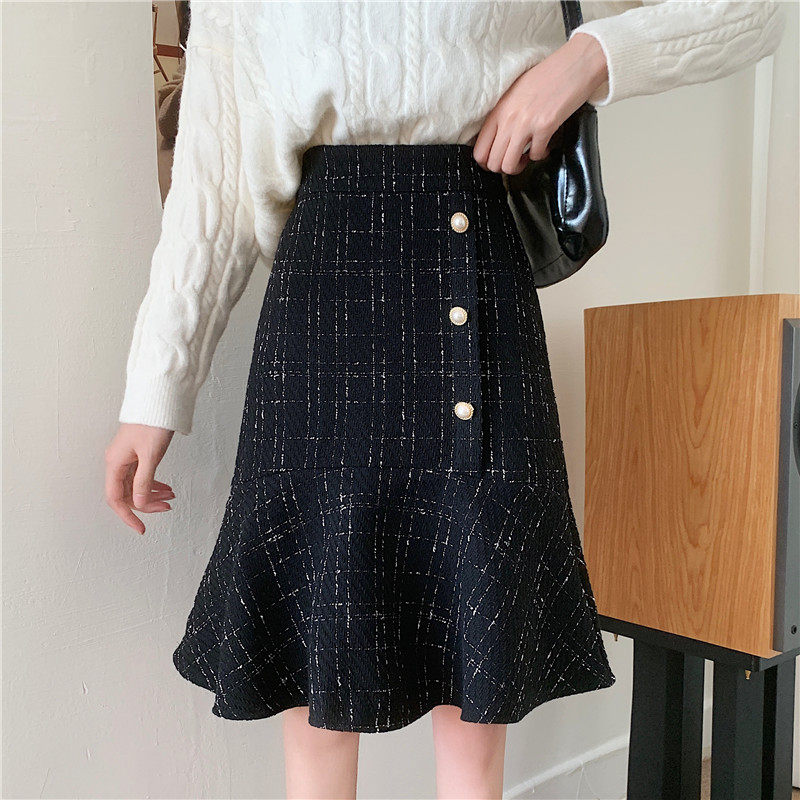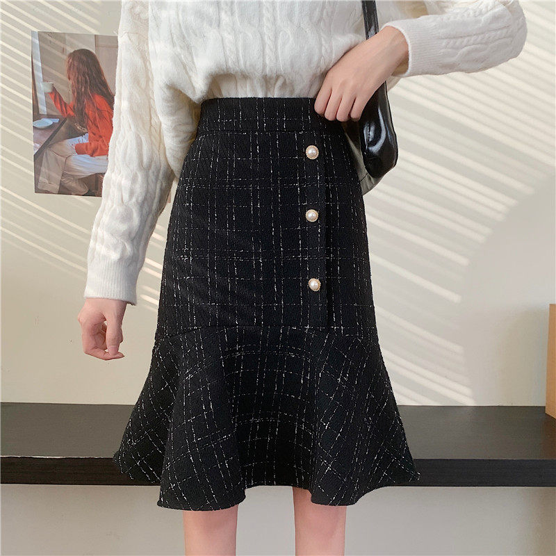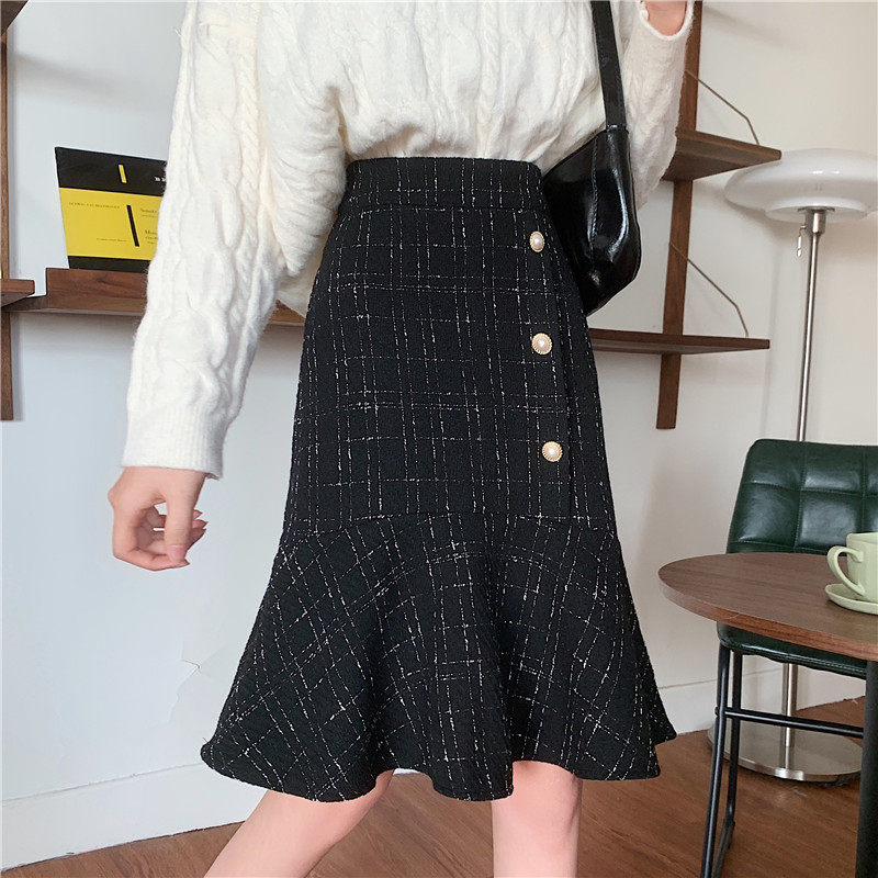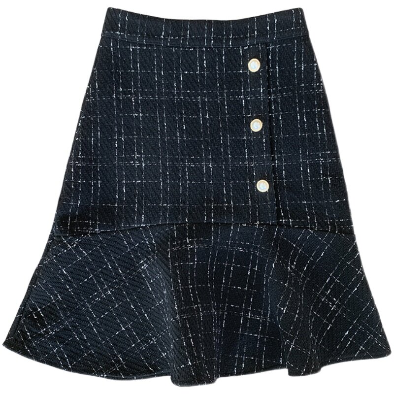Клетчатая демисезонная длинная юбка, большой размер, высокая талия, А-силуэт, крой «рыбий хвост», средней длины
