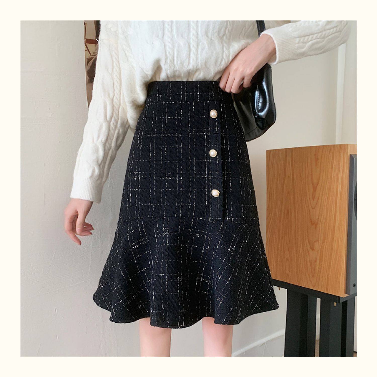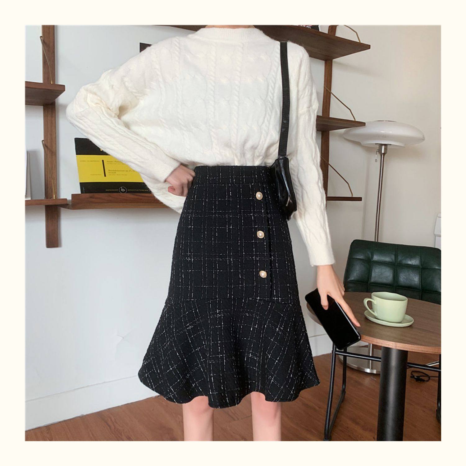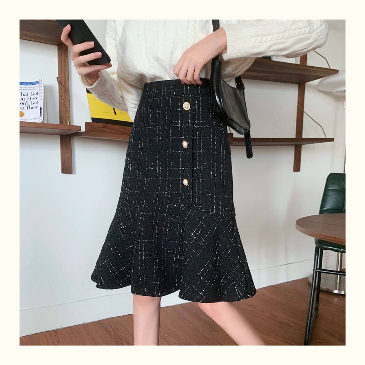 Клетчатая демисезонная длинная юбка, большой размер, высокая талия, А-силуэт, крой «рыбий хвост», средней длины