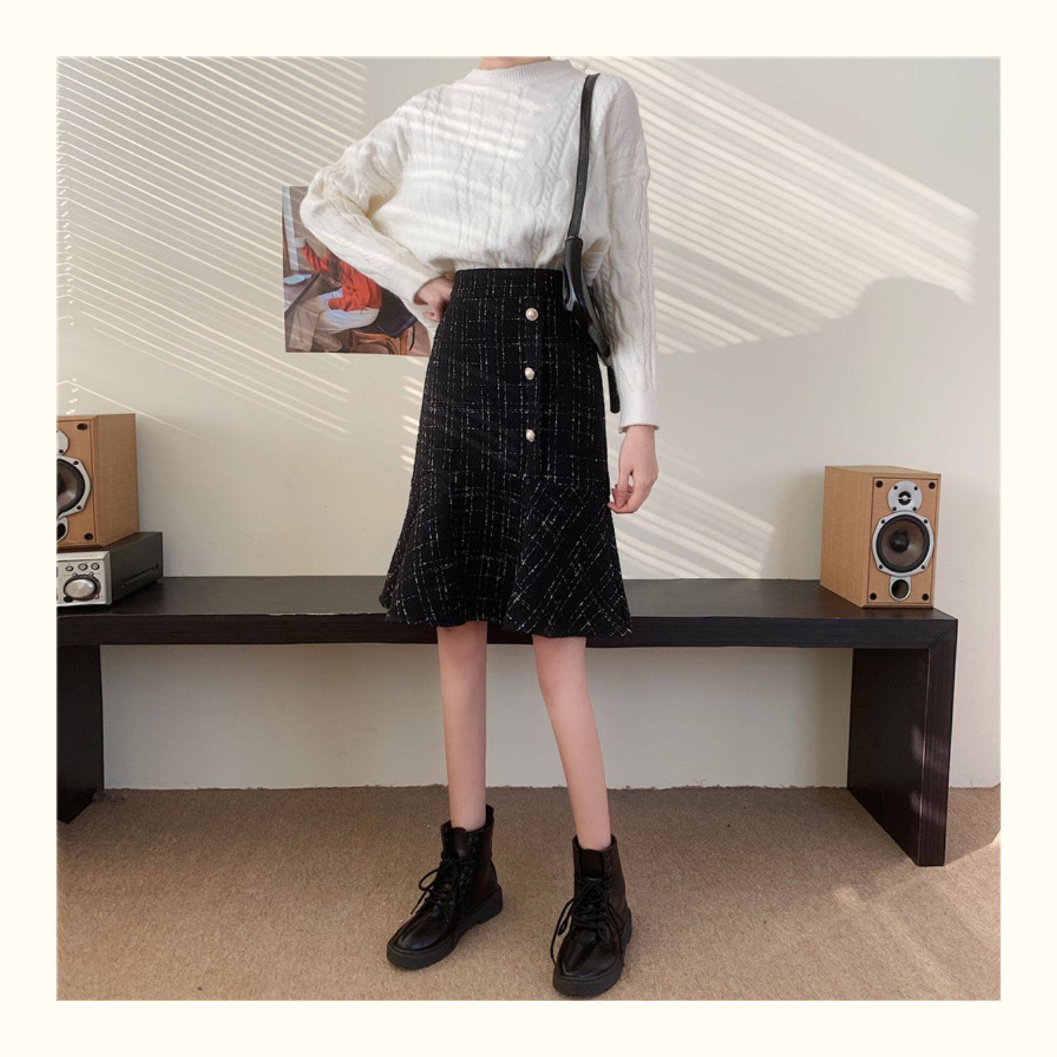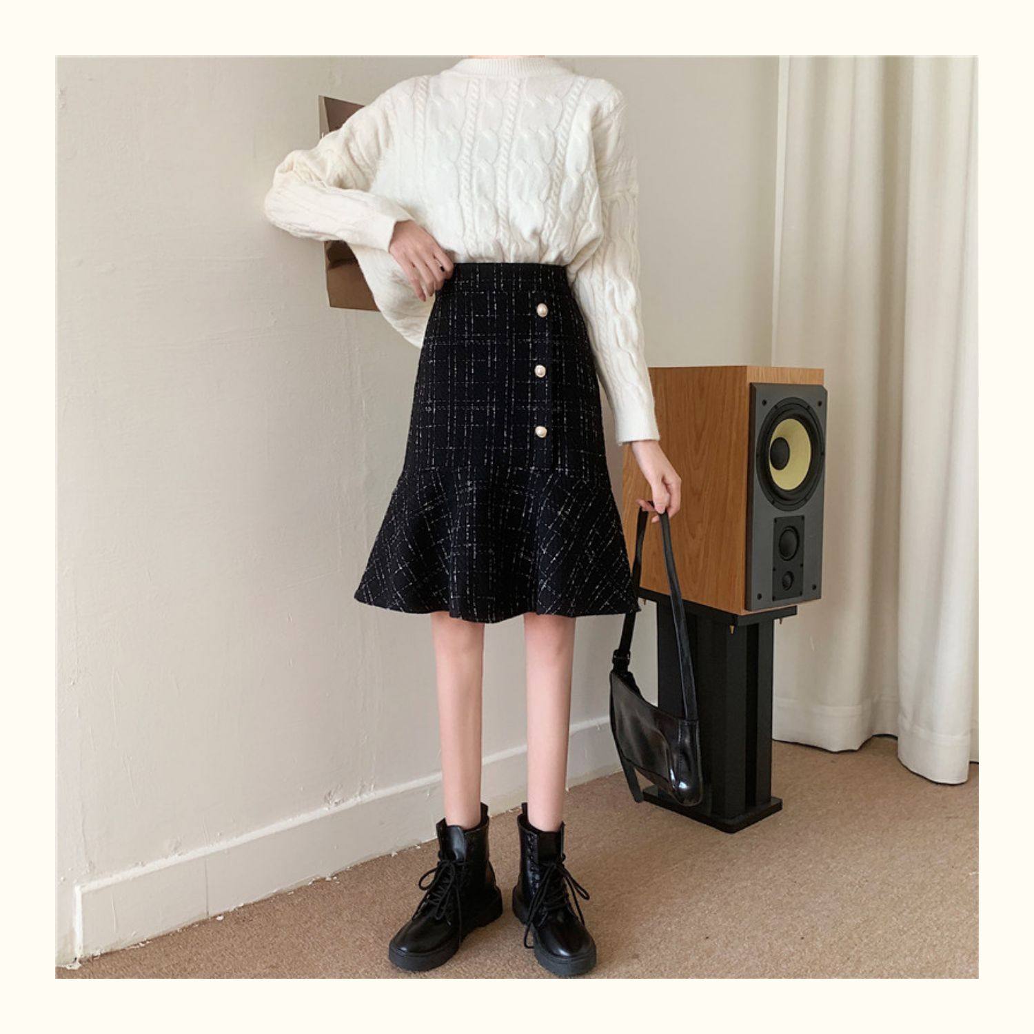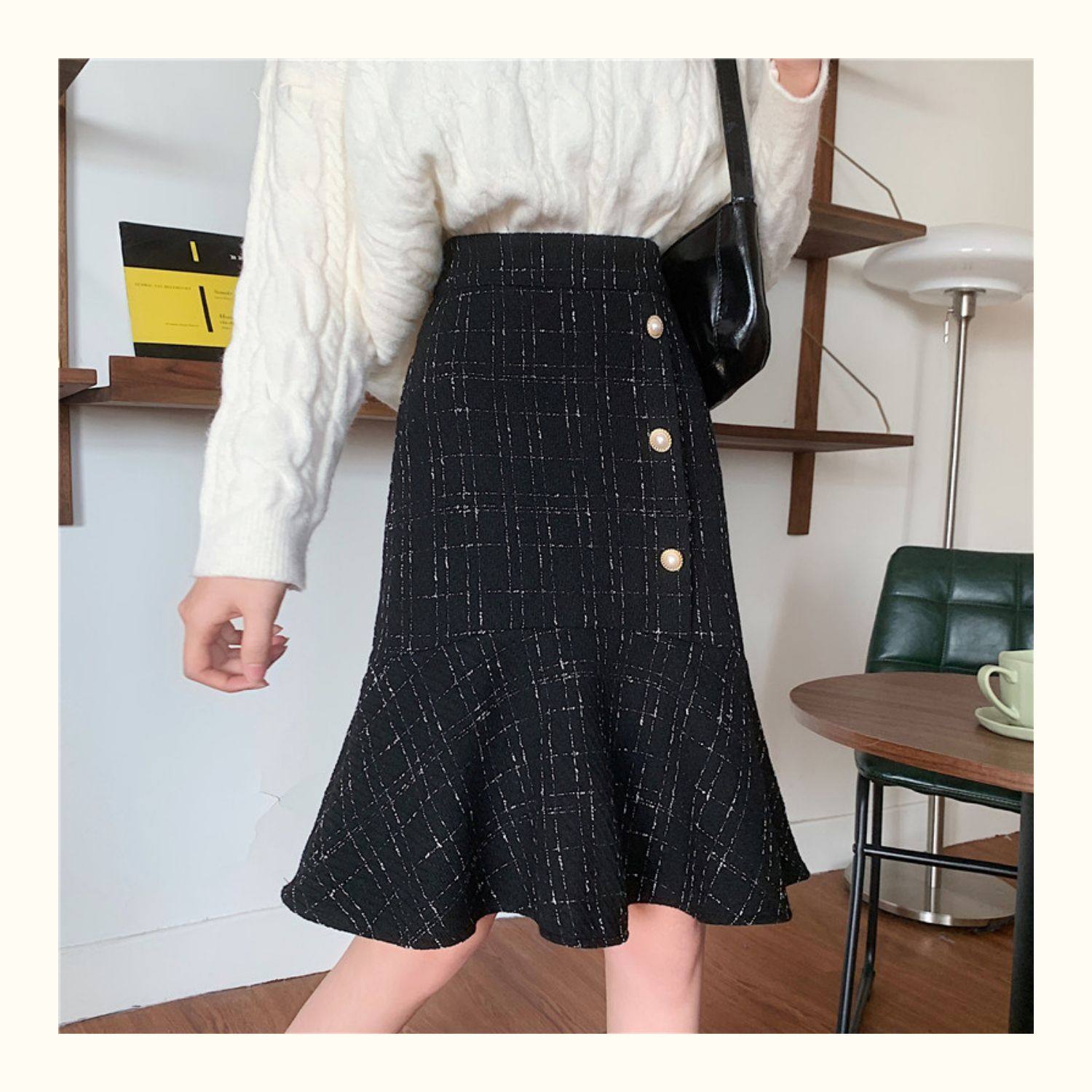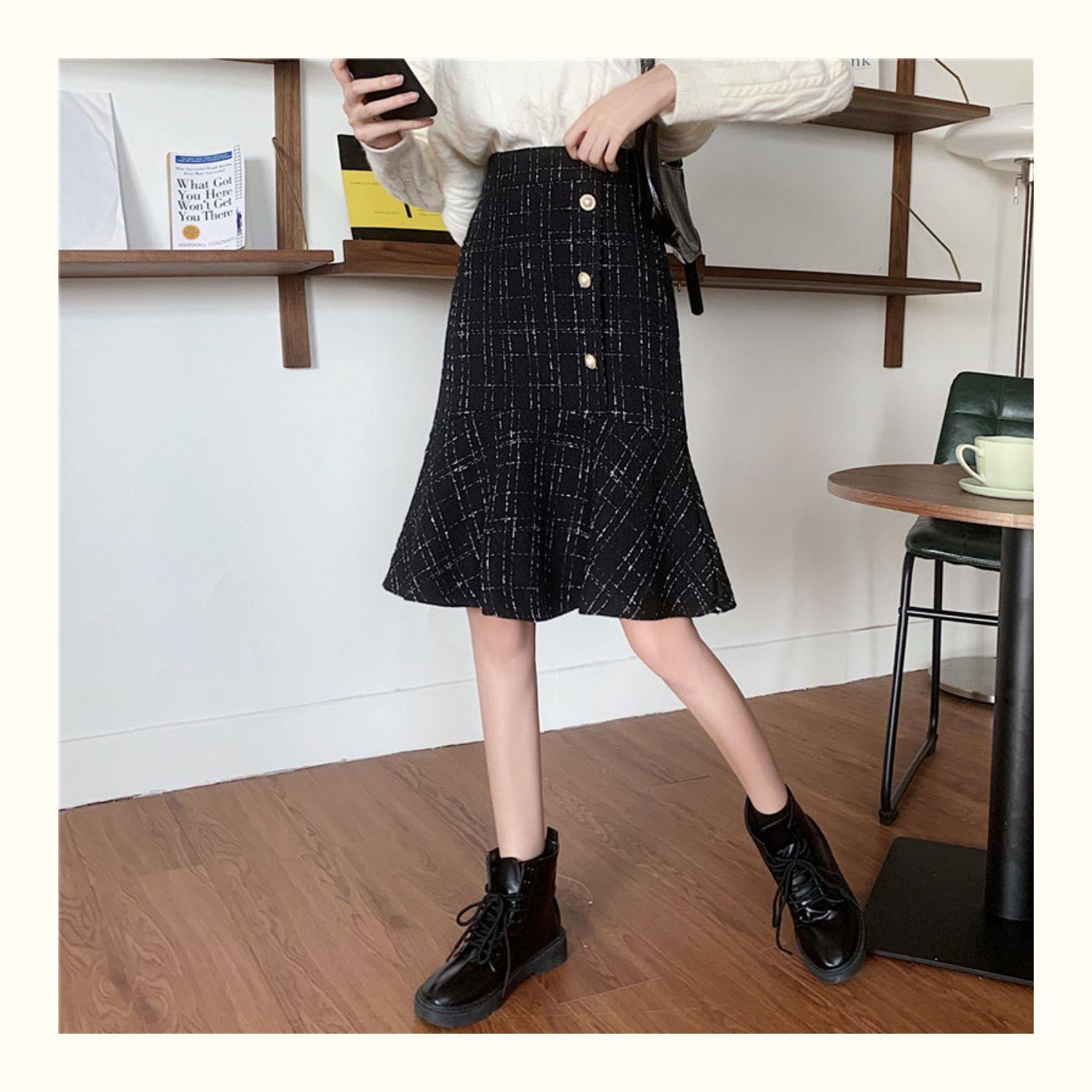 Клетчатая демисезонная длинная юбка, большой размер, высокая талия, А-силуэт, крой «рыбий хвост», средней длины