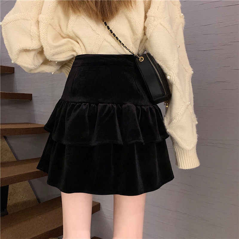 Бархатная юбка, демисезонная мини-юбка, большой размер, А-силуэт, высокая талия