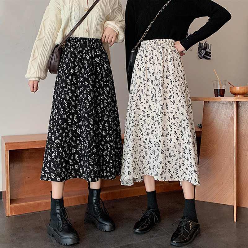 Весенняя приталенная шифоновая длинная юбка, коллекция 2021, большой размер, высокая талия, французский стиль, цветочный принт