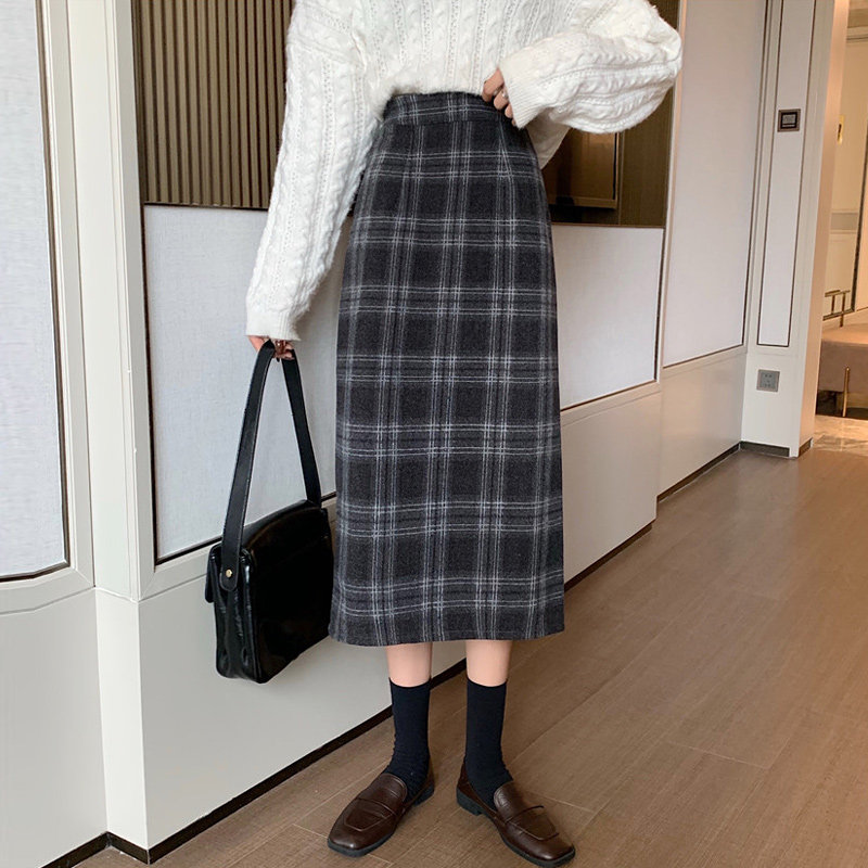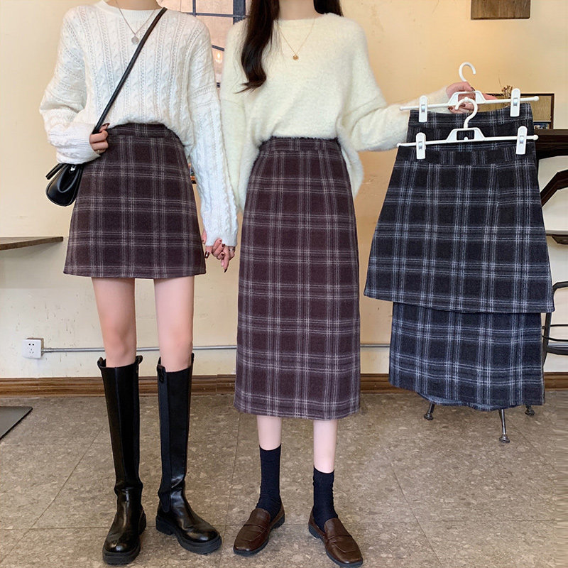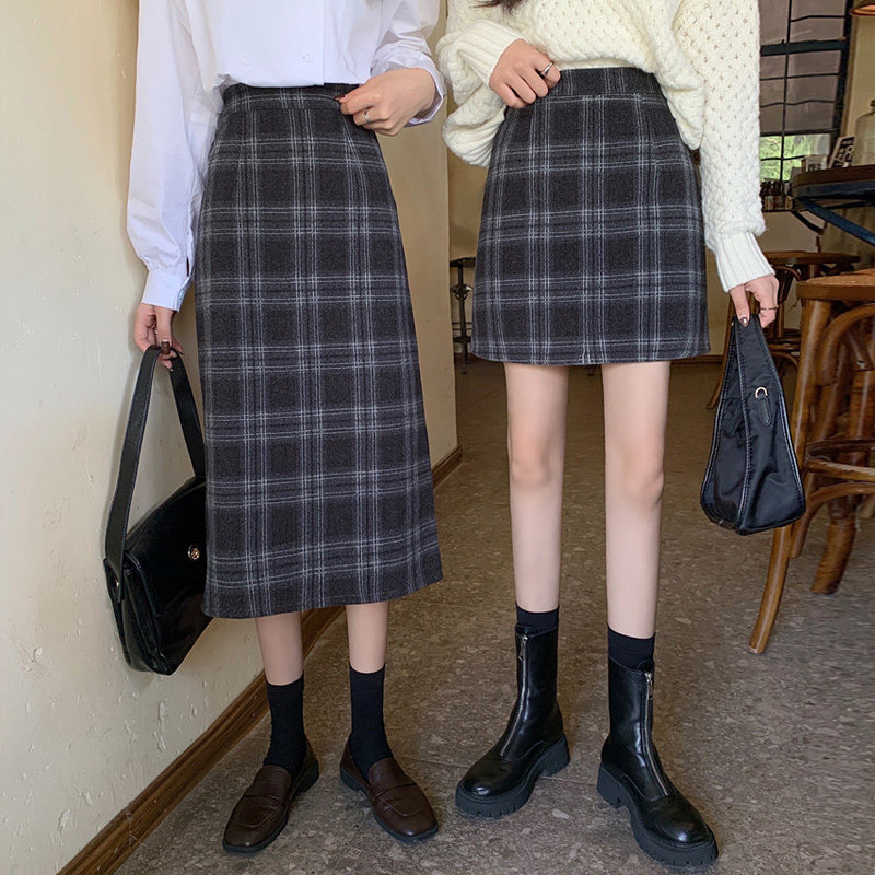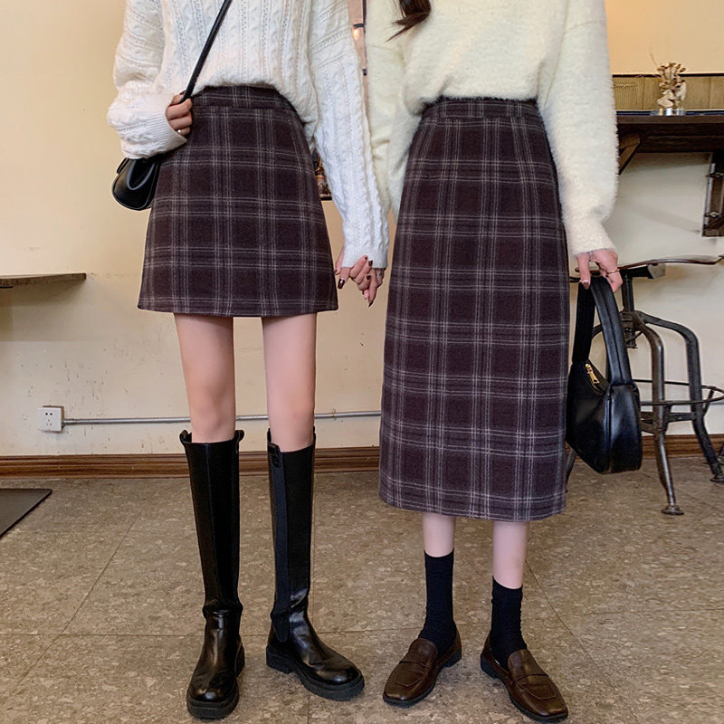 Шерстяная клетчатая демисезонная юбка, приталенная мини-юбка, 2020 года, высокая талия, А-силуэт, с акцентом на бедрах